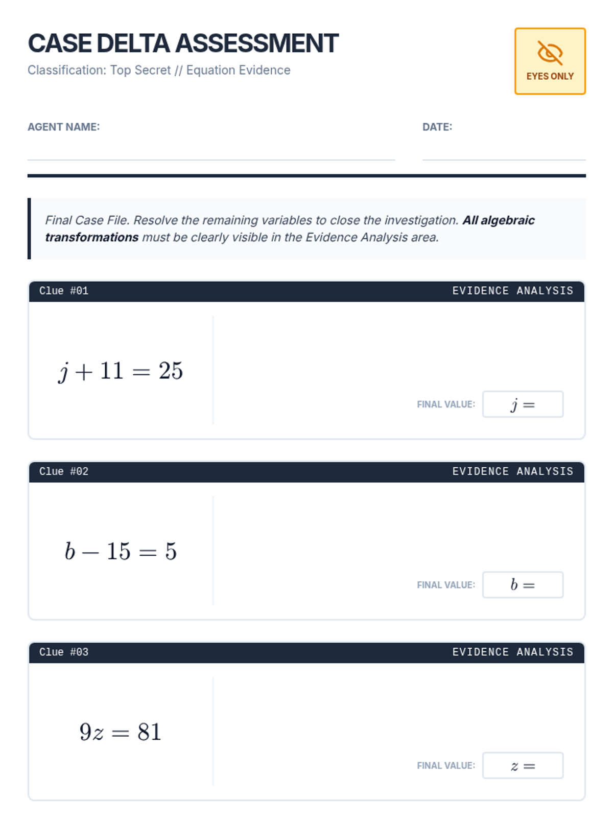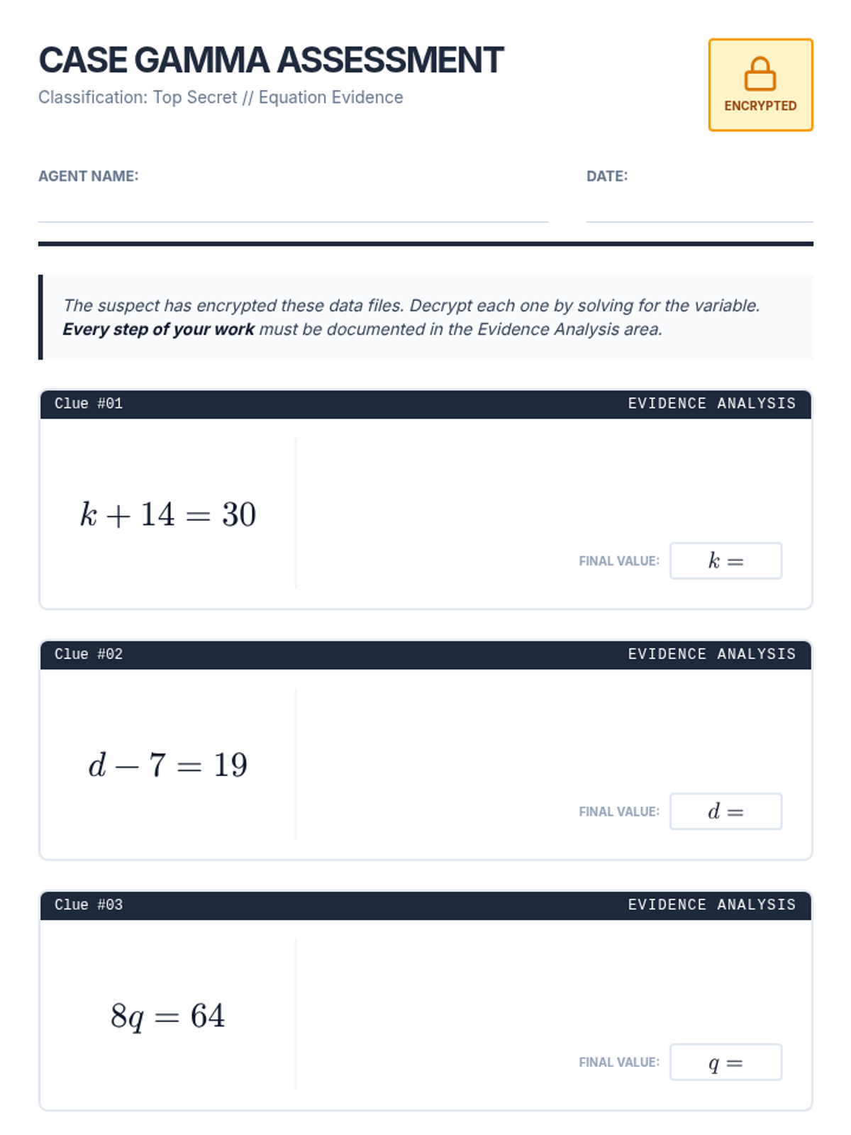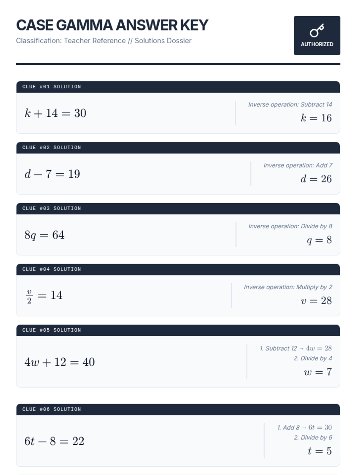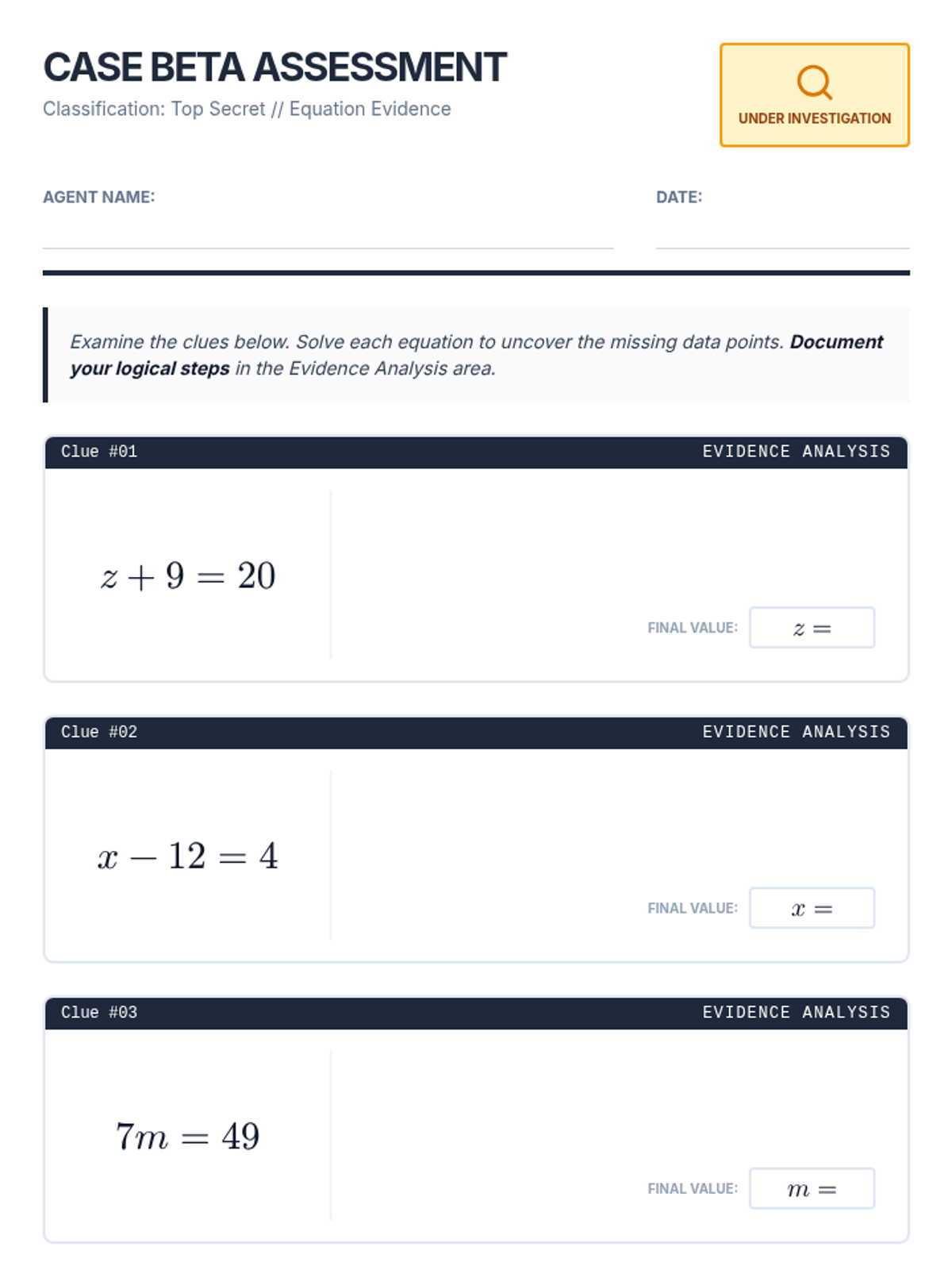 A foundational lesson on solving one-step equations using inverse operations, featuring a blueprint-inspired design to help students 'build' their algebraic skills.