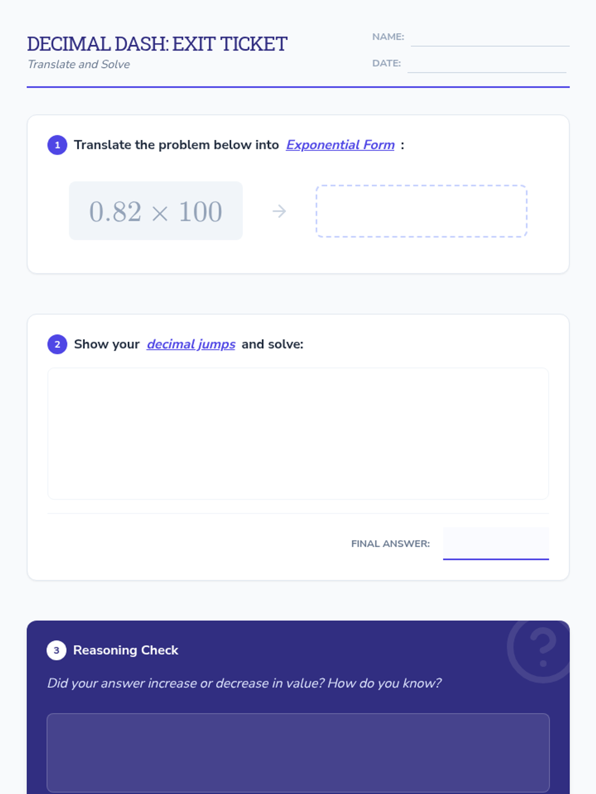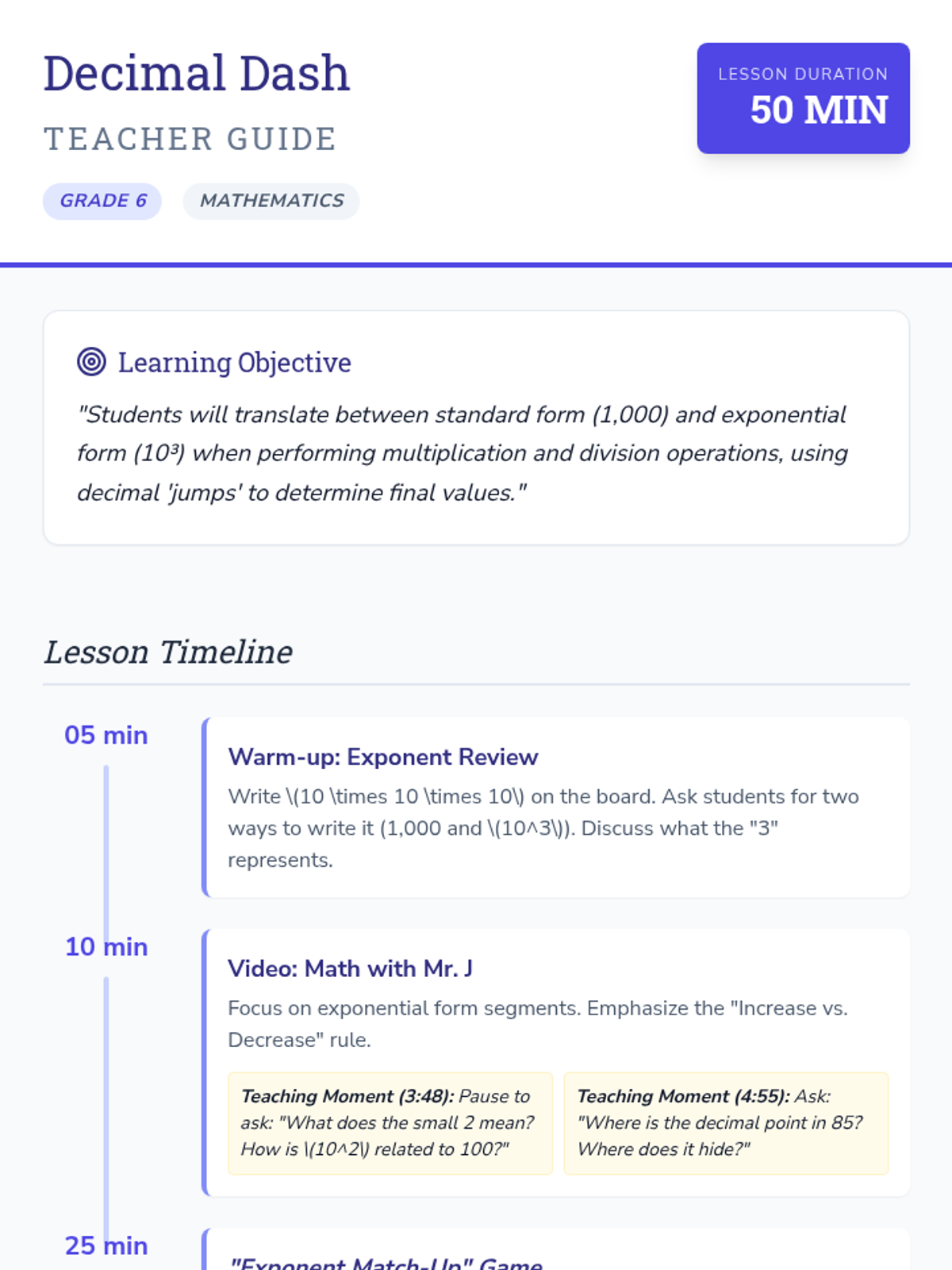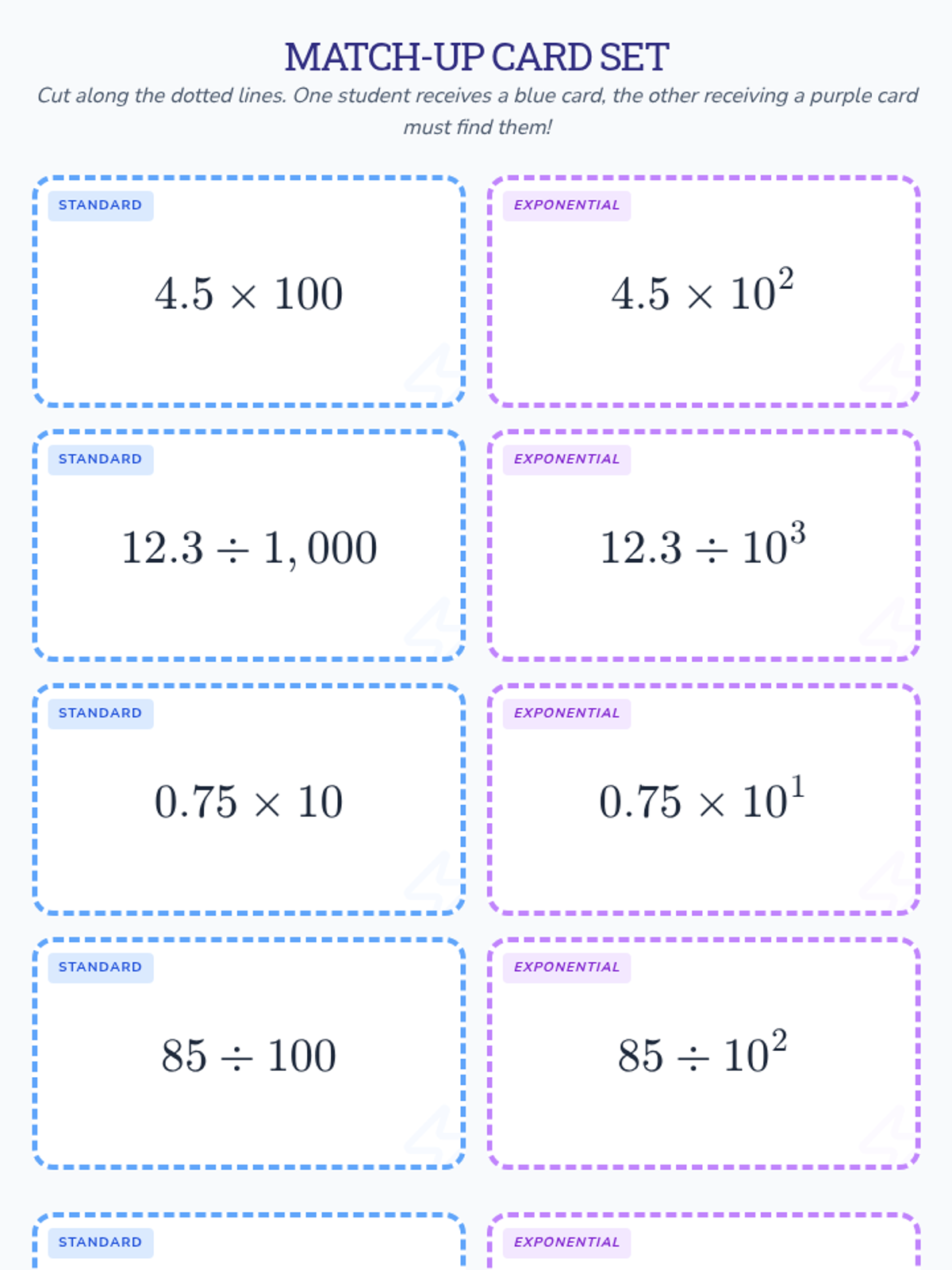 Students will learn to navigate the base-10 system by translating between standard and exponential forms while multiplying and dividing decimals. The lesson features a collaborative matching game and interactive video analysis.