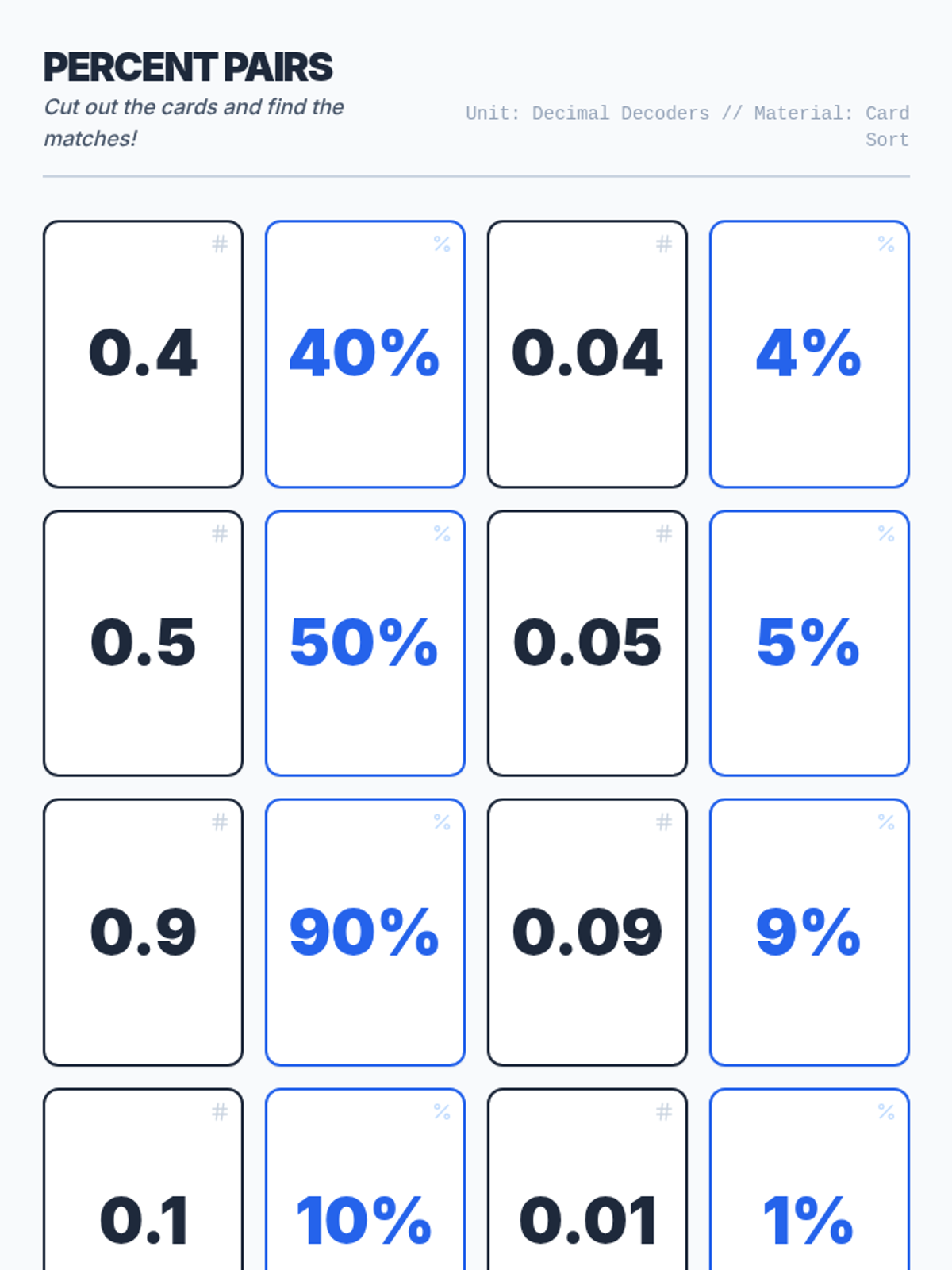 A 6th-grade math lesson focused on differentiating between tenths and hundredths when converting decimals to percentages. This lesson uses a visual 'Math with Mr. J' video and a hands-on card-sorting activity to address the common 'Tenths Trap' misconception.