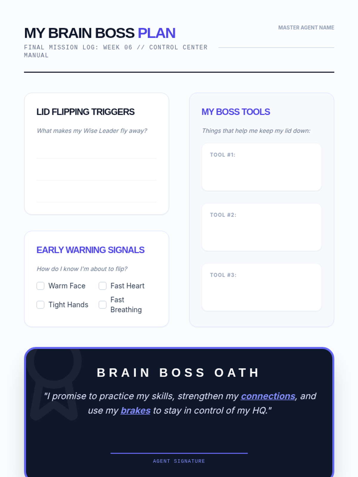 Celebrate becoming a "Brain Boss" by reviewing key concepts, practicing favorite strategies, and creating a personal plan for future emotional management.