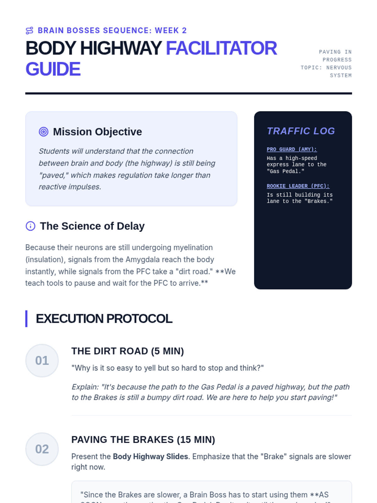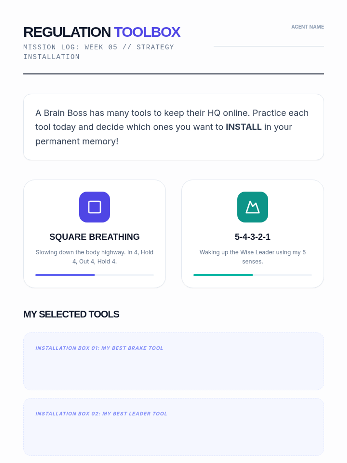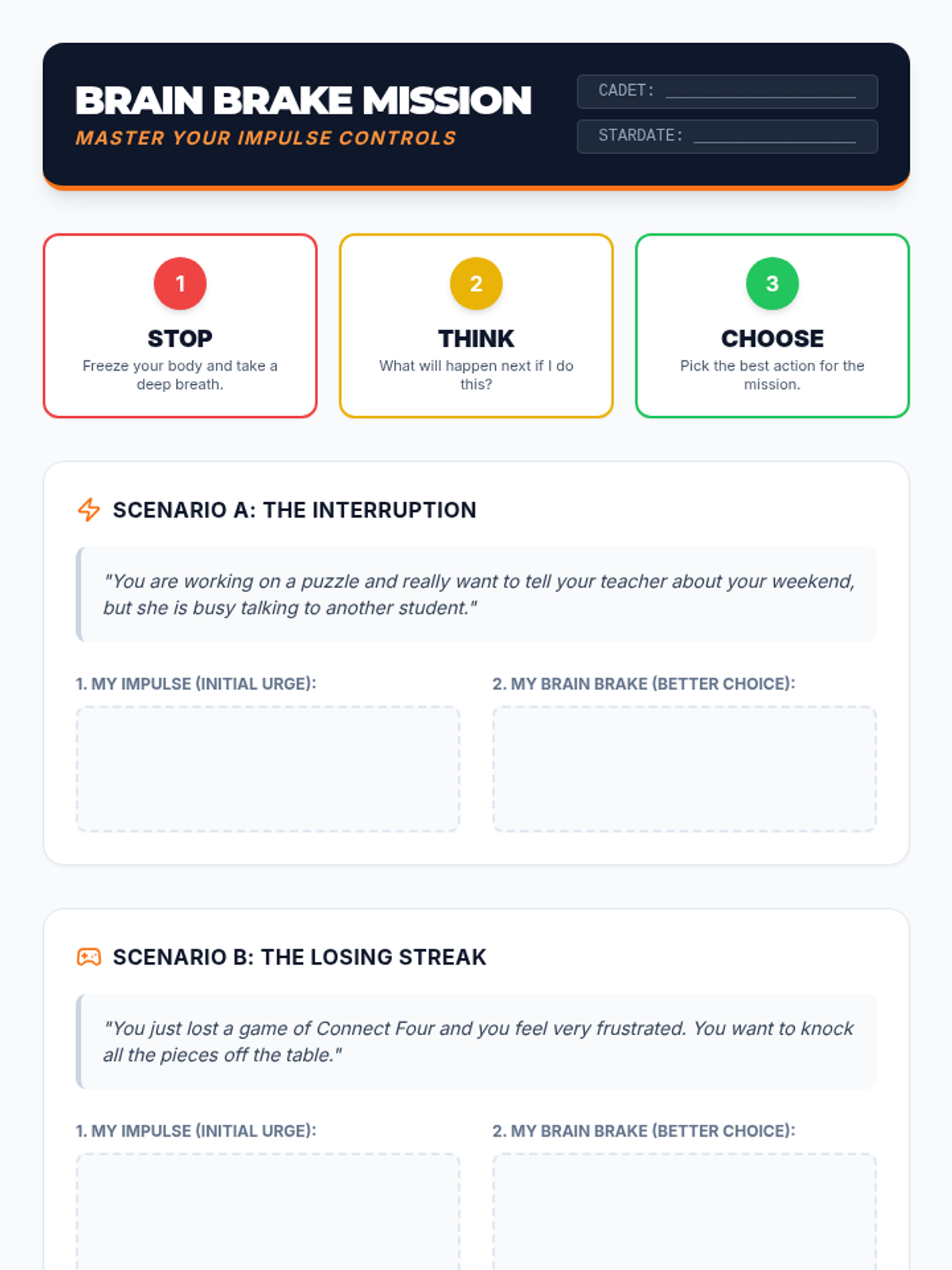Focuses on developing impulse control by teaching students to 'pause' and evaluate their reactions before acting, using the 'Brain Brake' strategy.