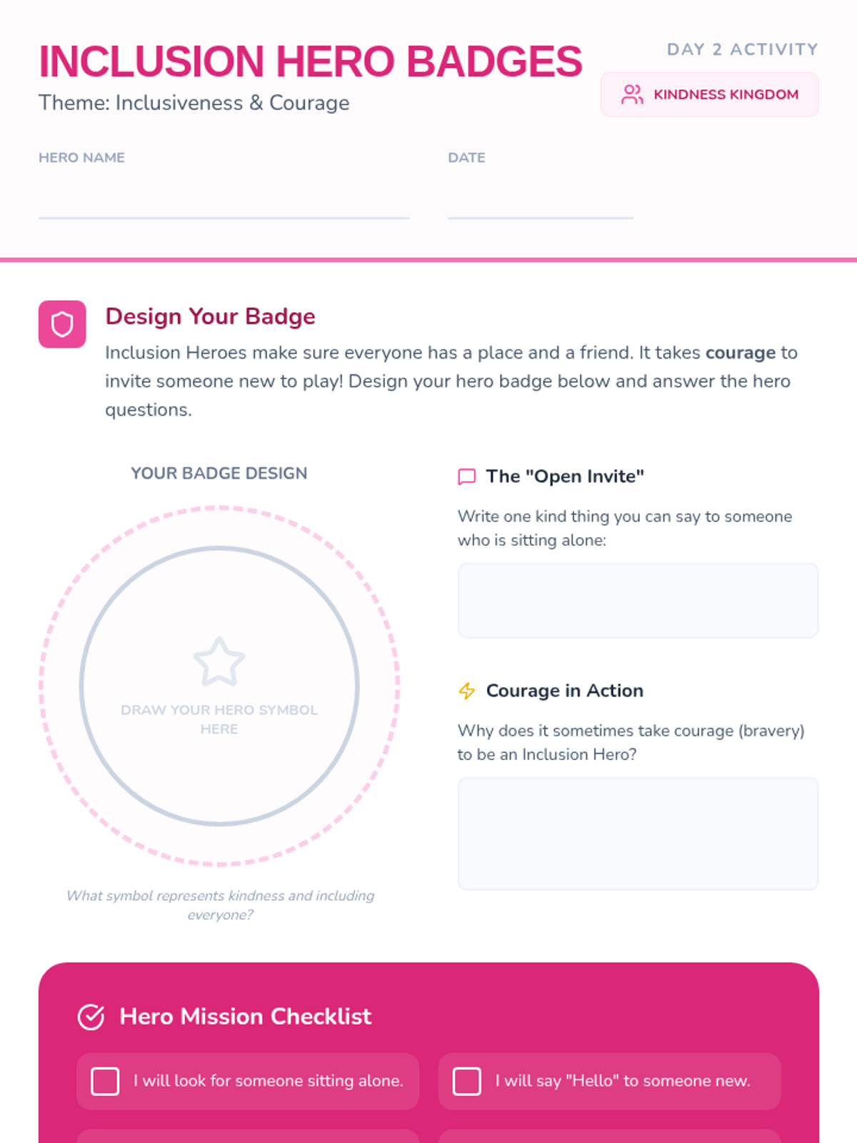 Focuses on inclusiveness and the courage to invite others in, featuring activities that promote social awareness and bravery in kindness.