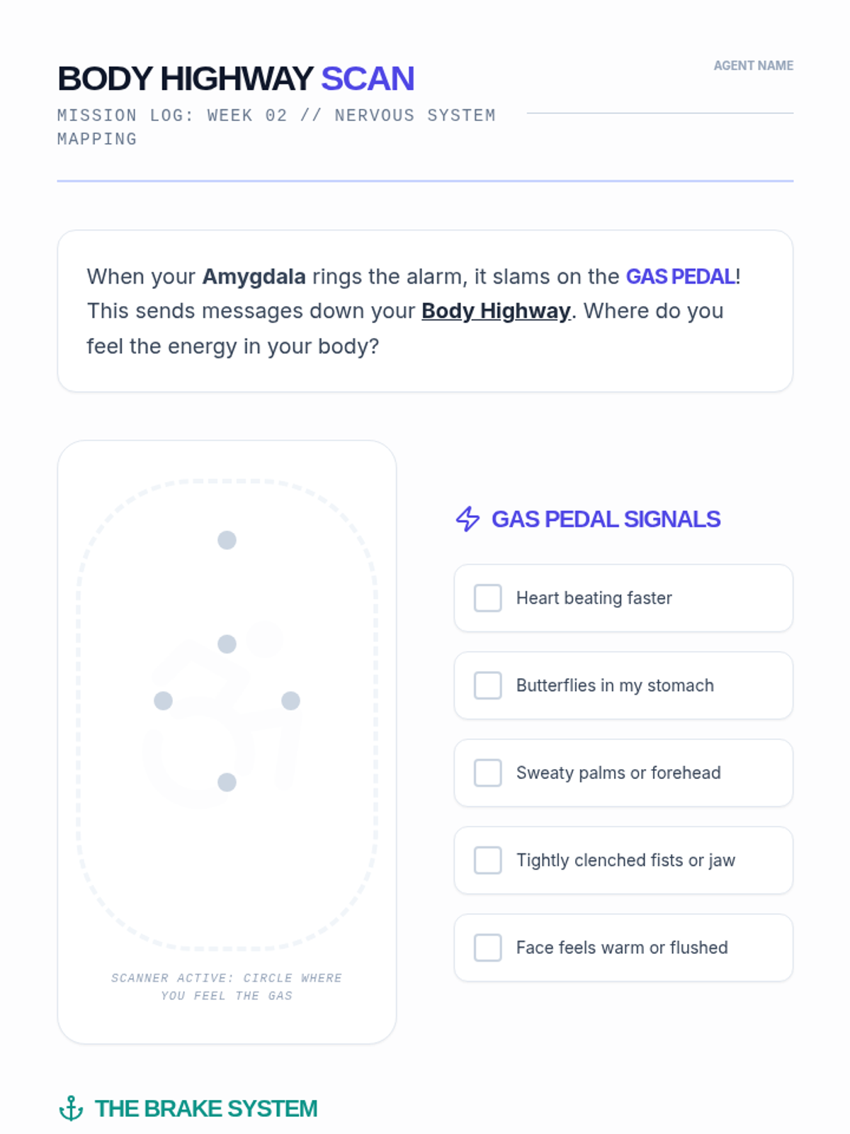Explore the nervous system "highways" that connect the brain and body, focusing on the Sympathetic (Gas) and Parasympathetic (Brakes) systems and how they respond to stress.