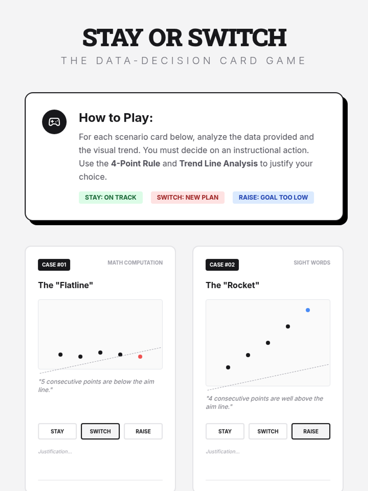 An introduction to standard decision rules, such as the 4-point rule, to determine when to raise goals or change interventions.