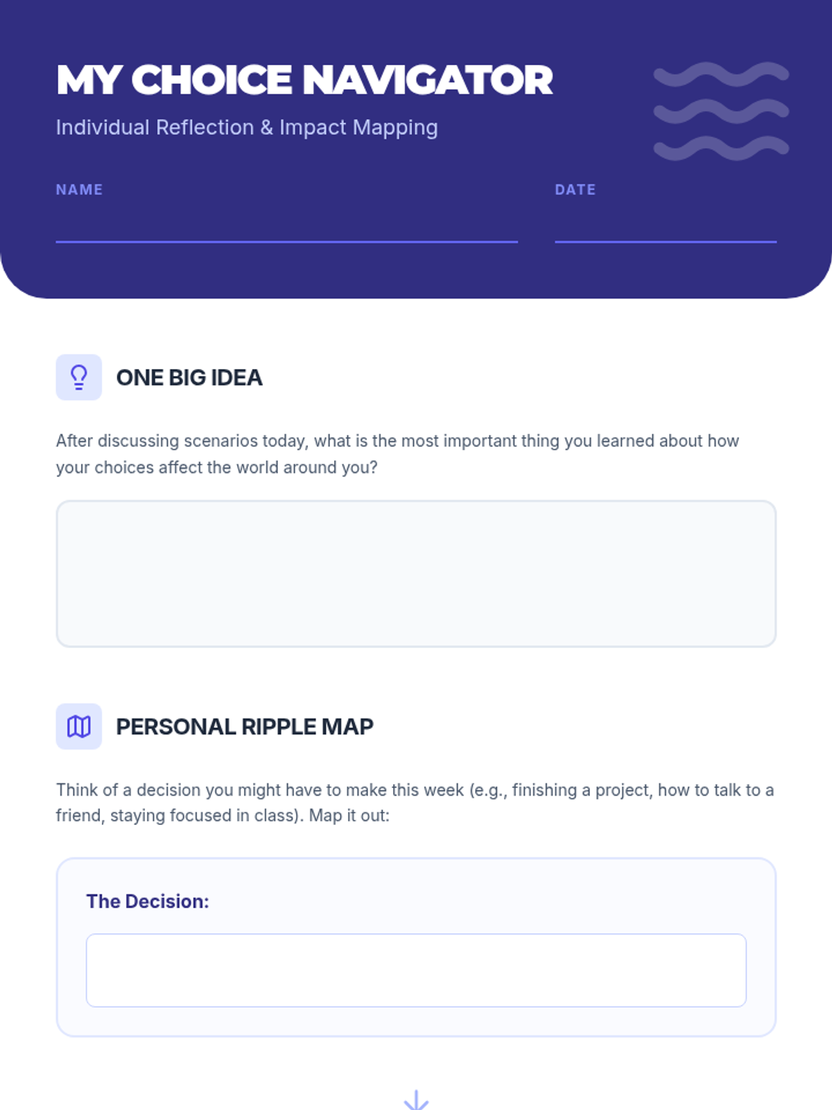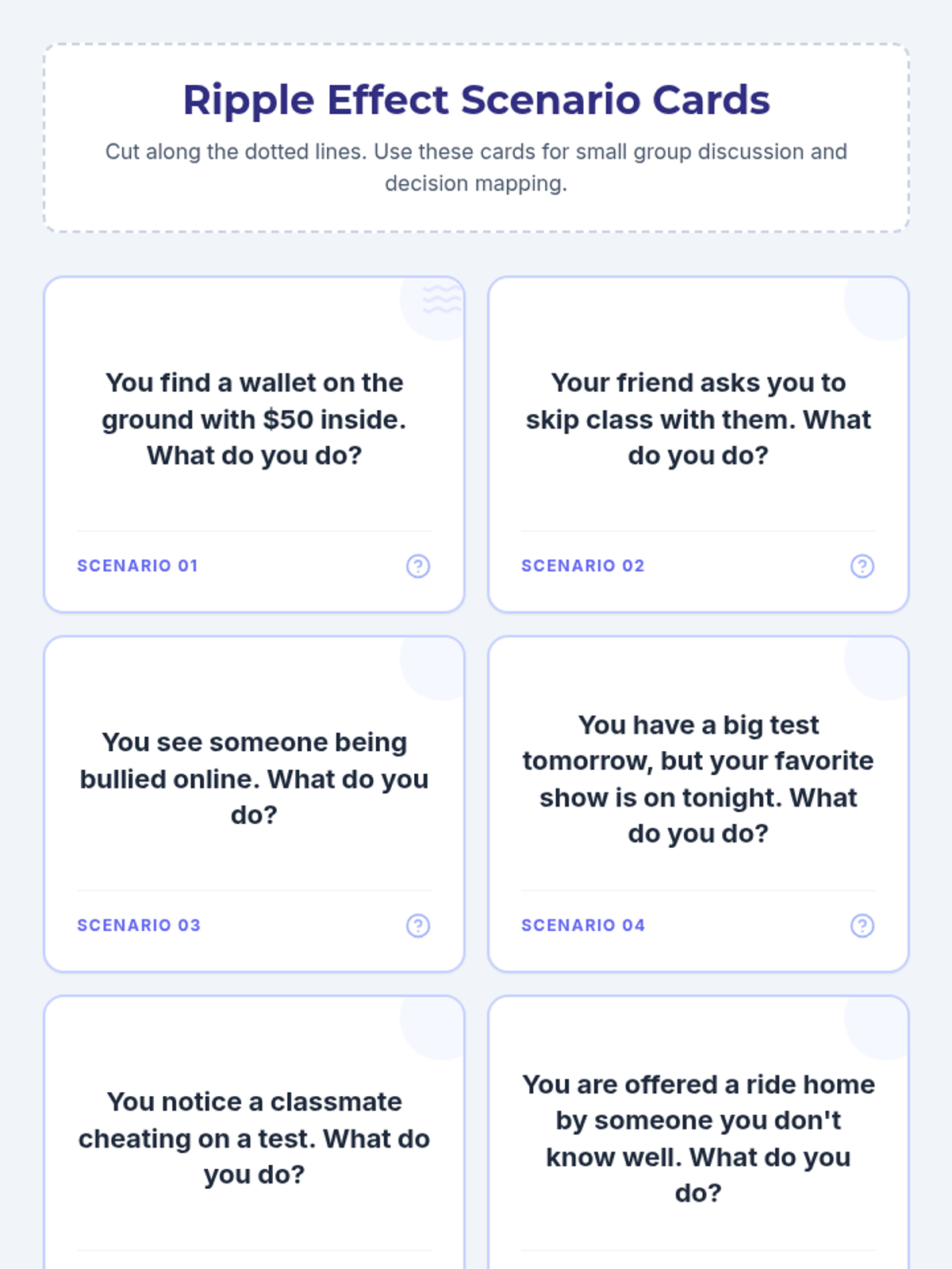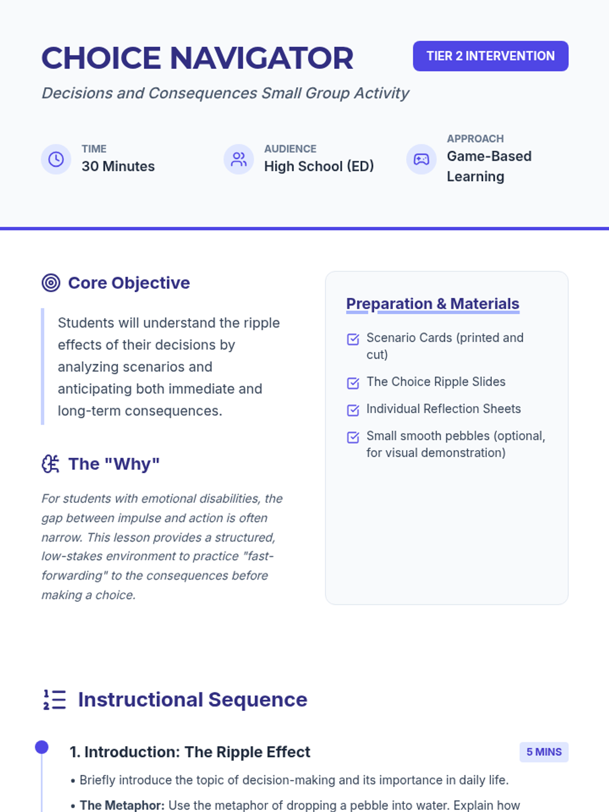 A Tier 2 small group lesson designed for high school students with emotional disabilities to explore the ripple effects of their choices through game-based scenario analysis.