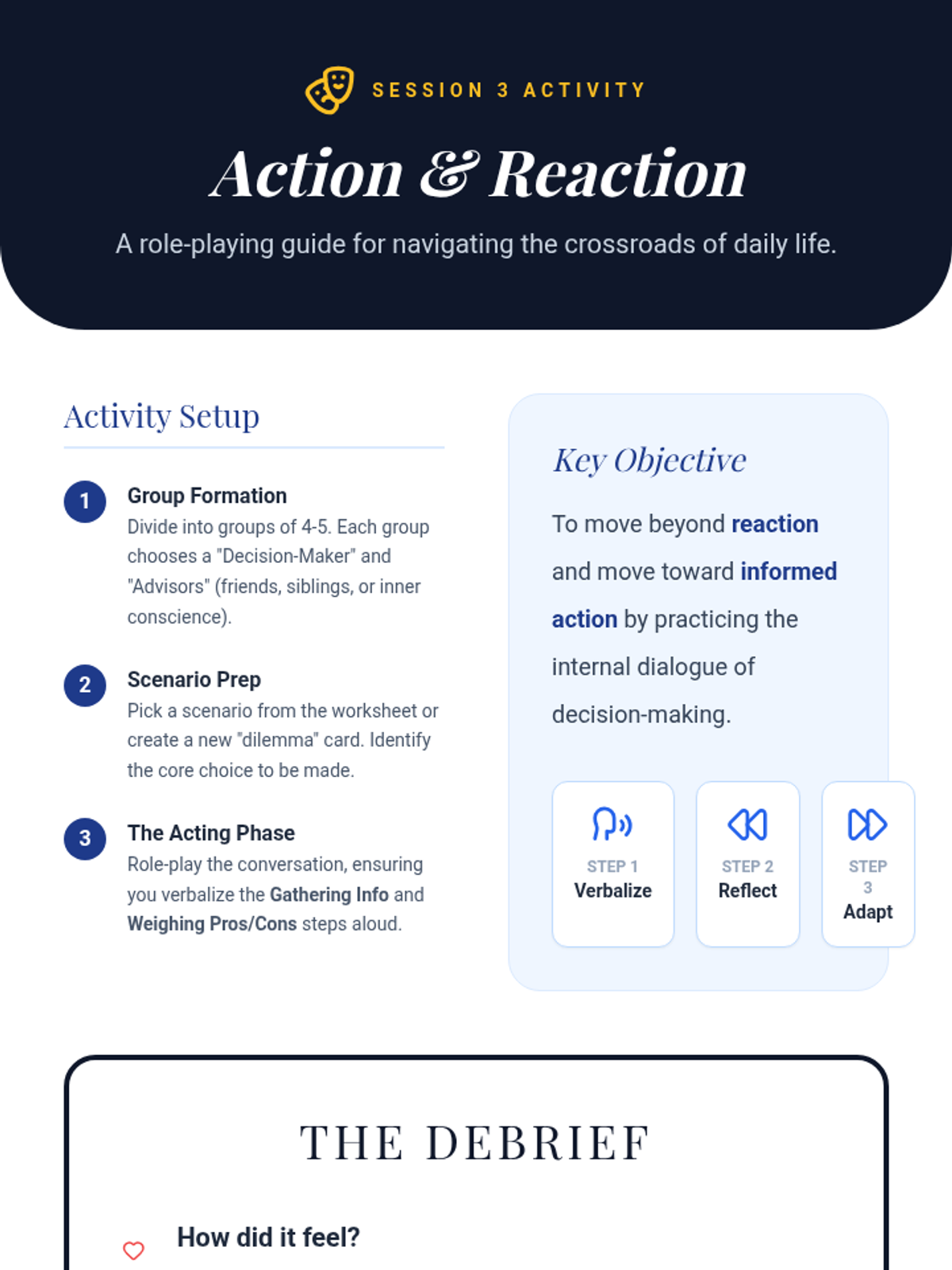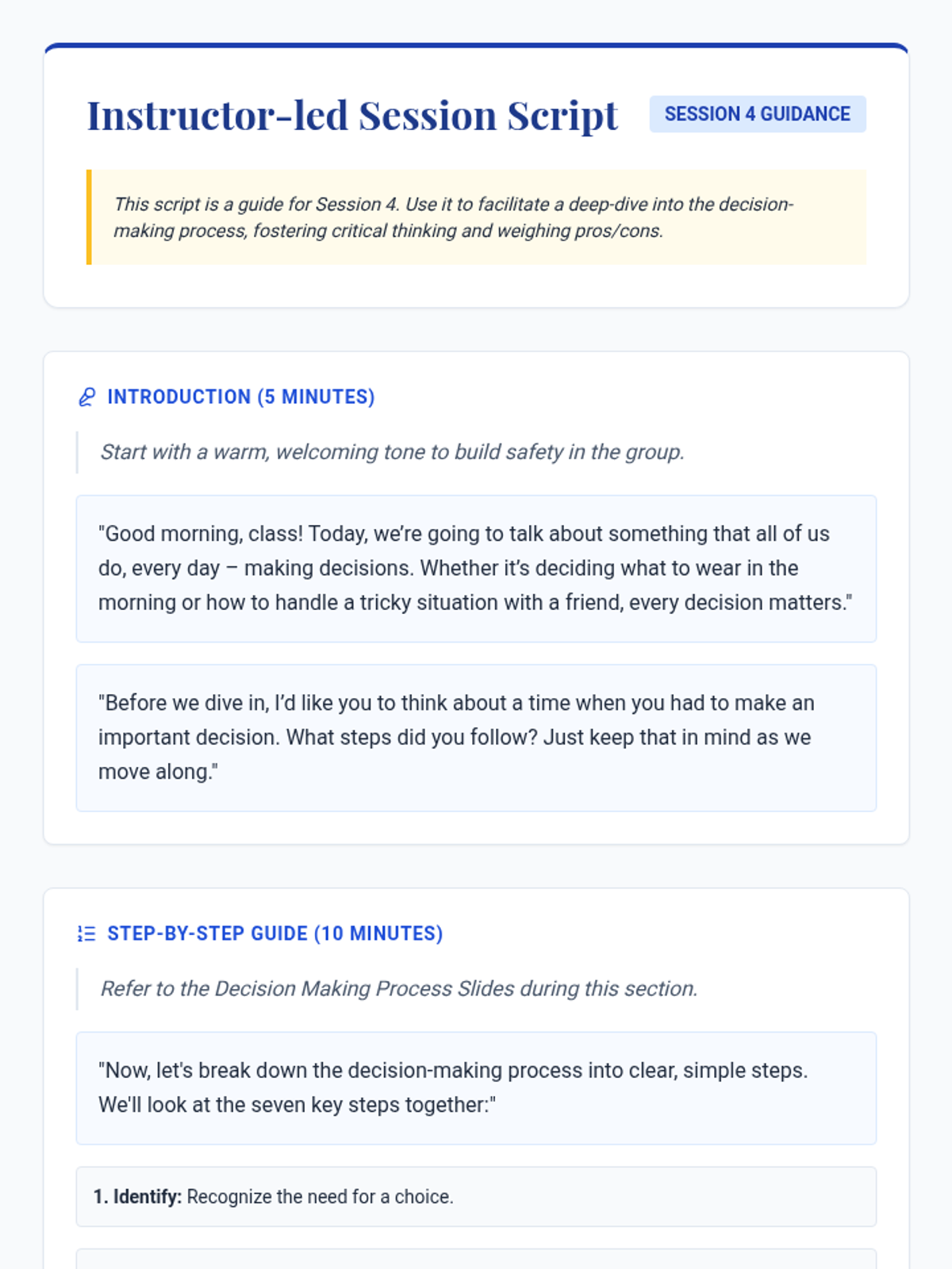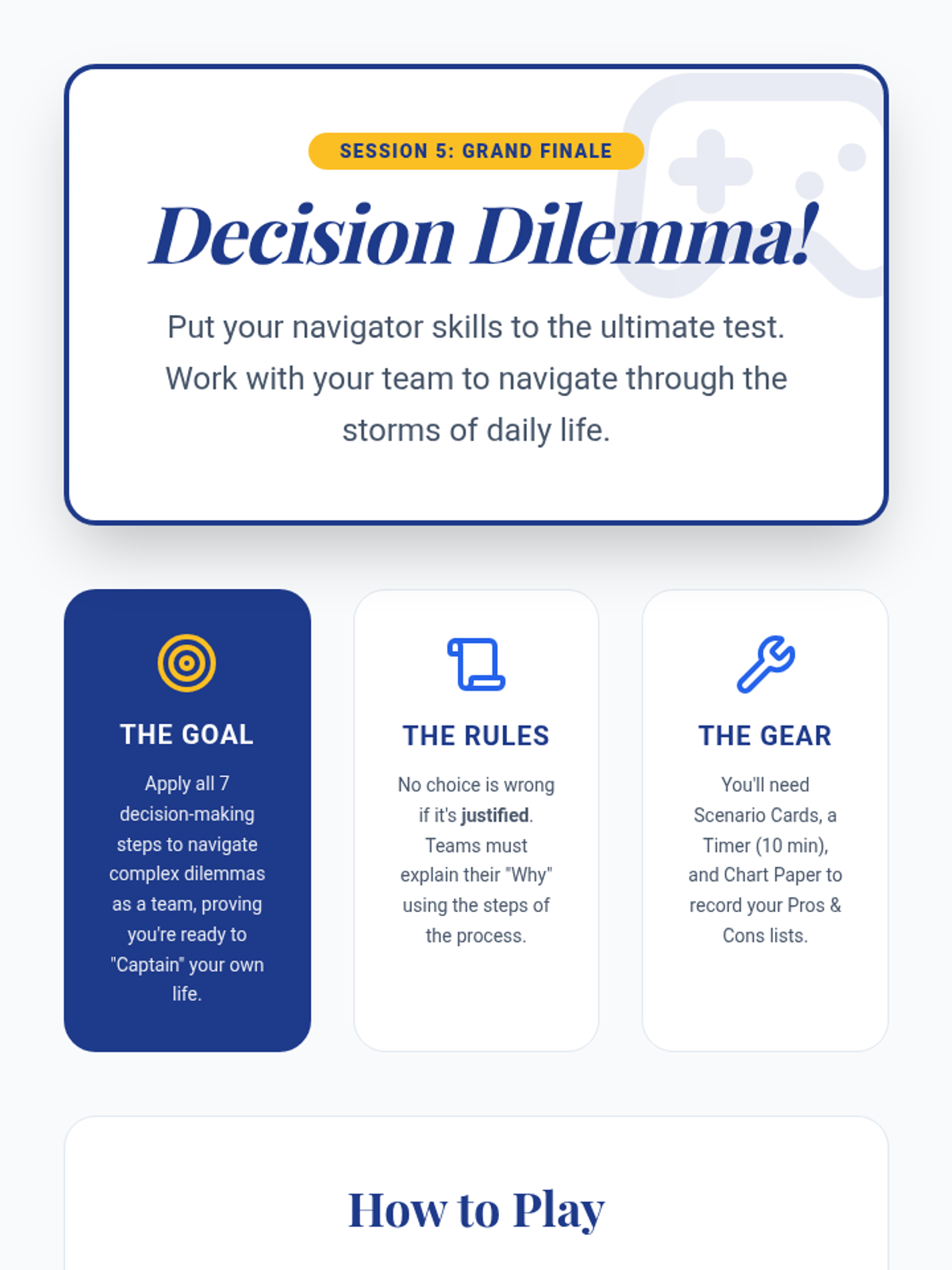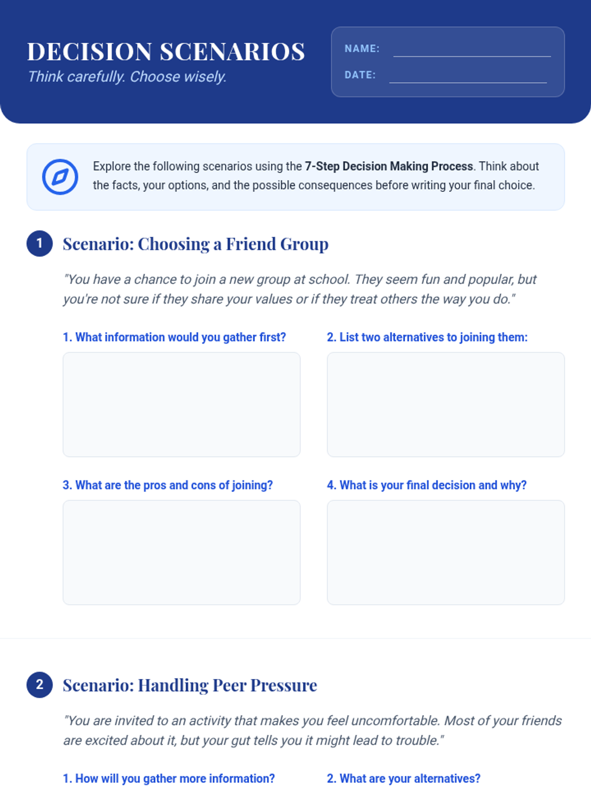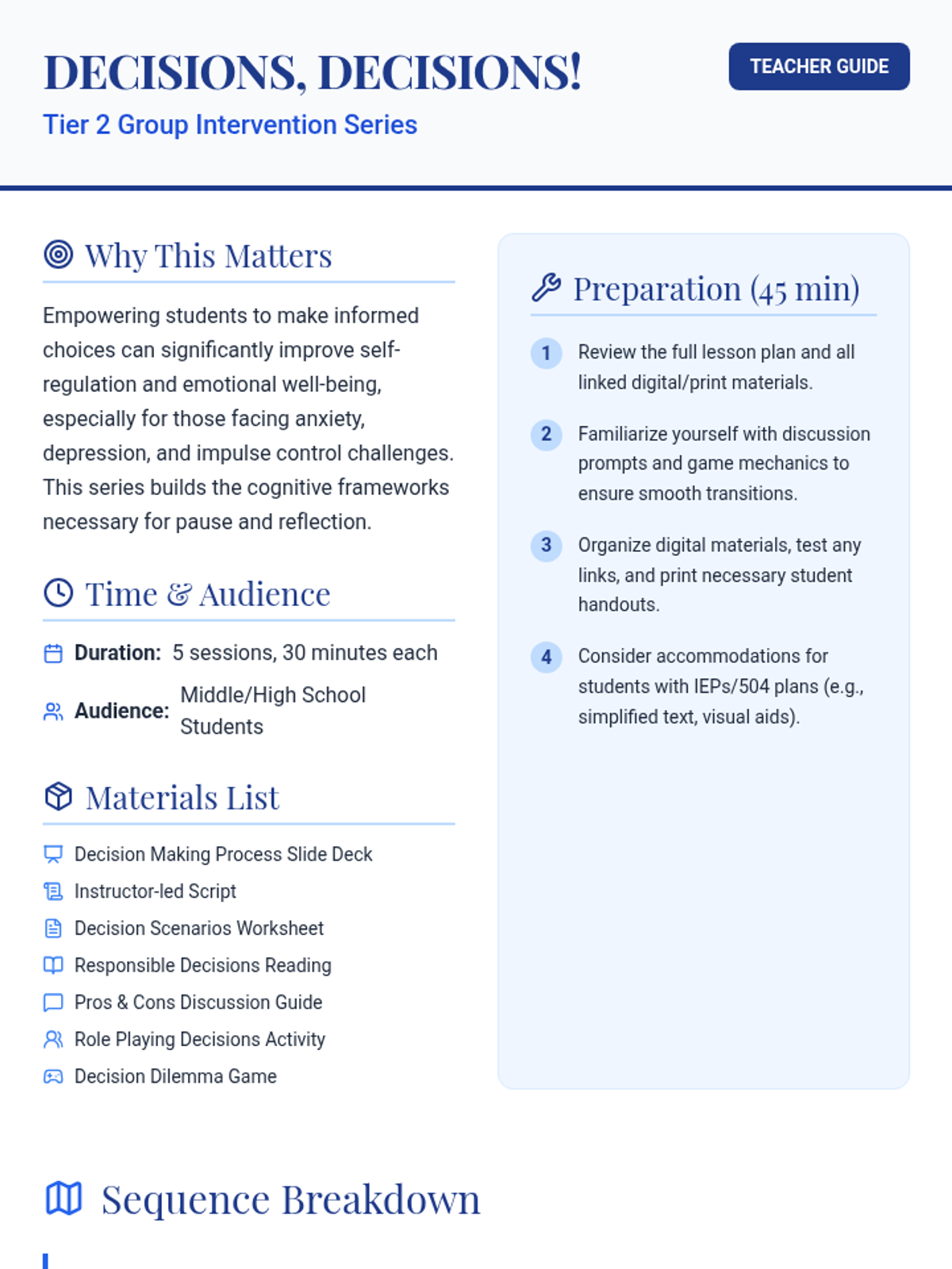 A 5-session Tier 2 group intervention designed to help students develop responsible decision-making skills through interactive activities, discussions, and real-life scenarios.