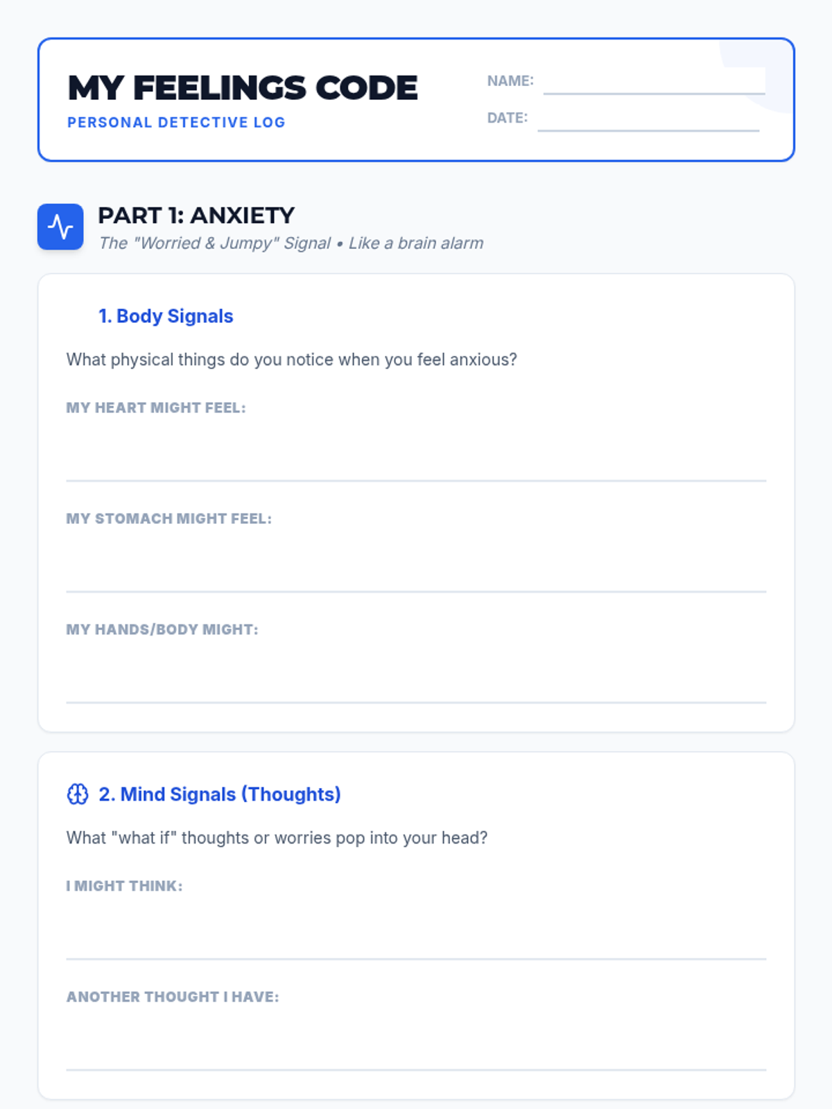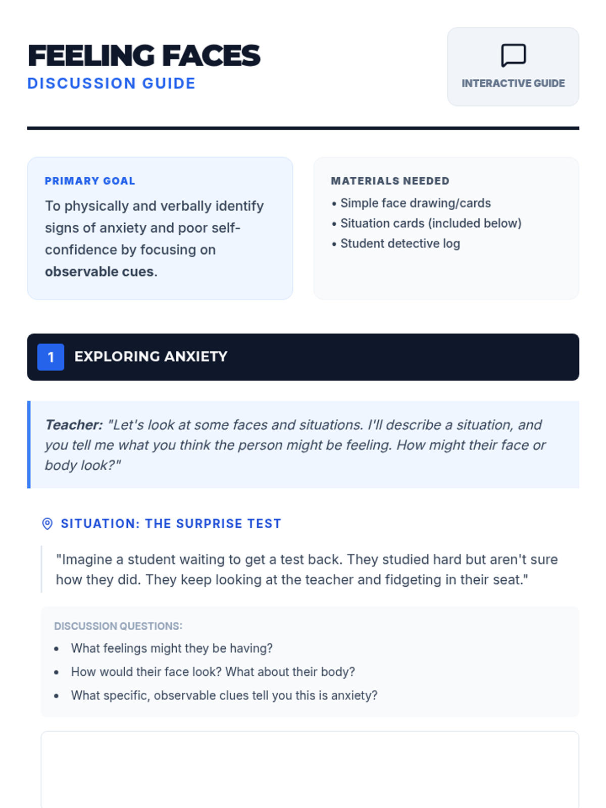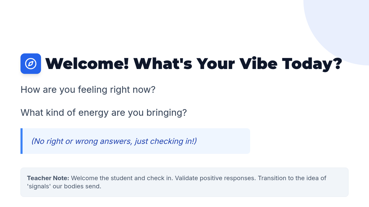 A Tier 3 individual lesson for a 10th-grade student with Non-Verbal Learning Disorder (NLD) to help them identify and decode physical and mental signals of anxiety and poor self-confidence.