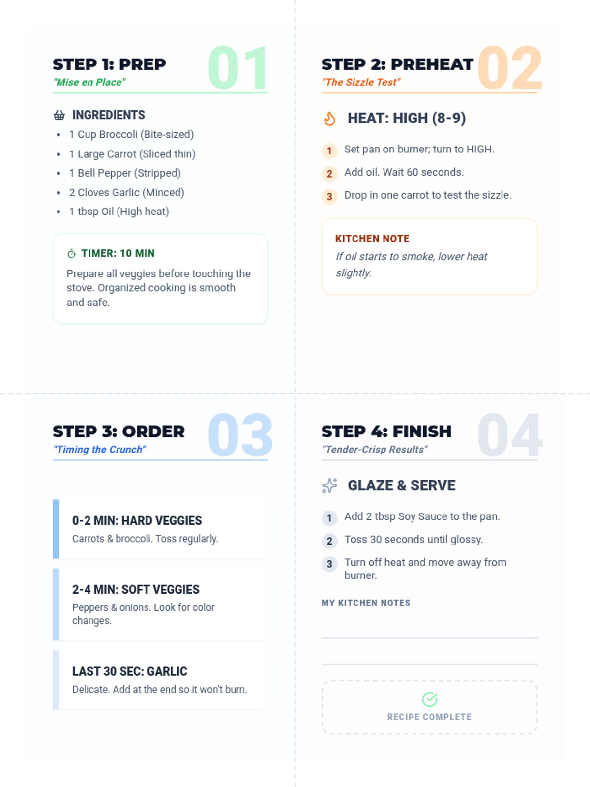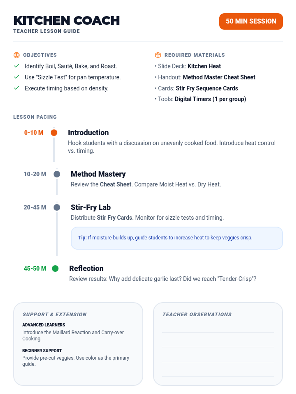 A 50-minute introduction to fundamental cooking techniques, focusing on heat management and timing through the lens of a vegetable stir-fry.