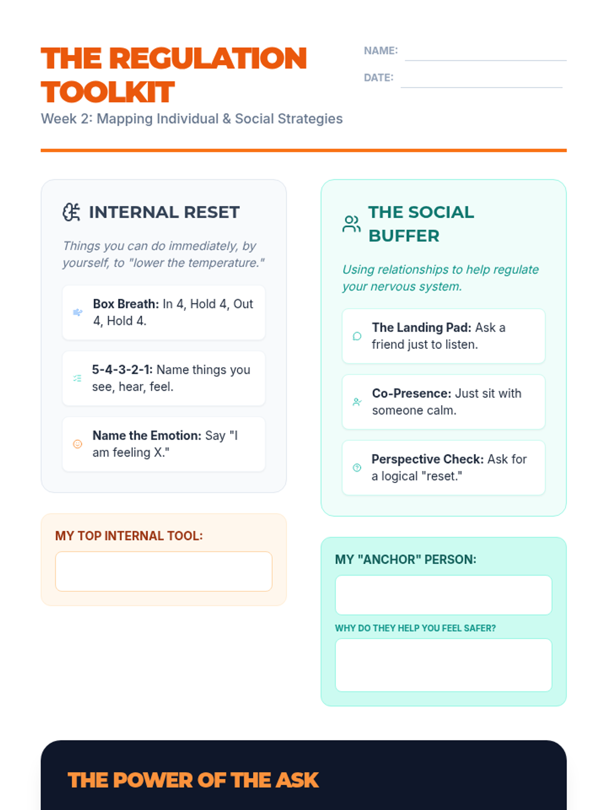 An in-depth 30-minute session featuring core teaching and two hands-on activities to explore relationship dynamics and regulation strategies.