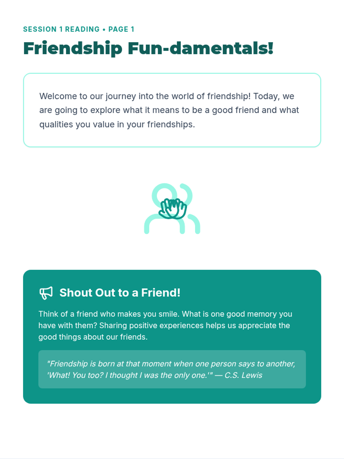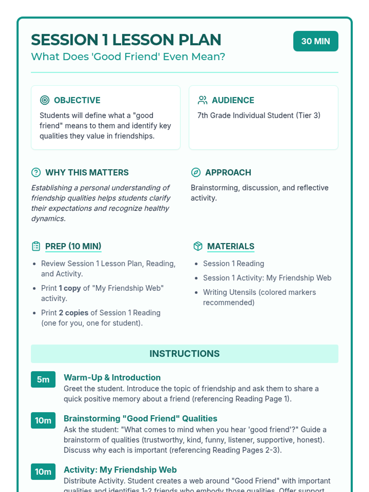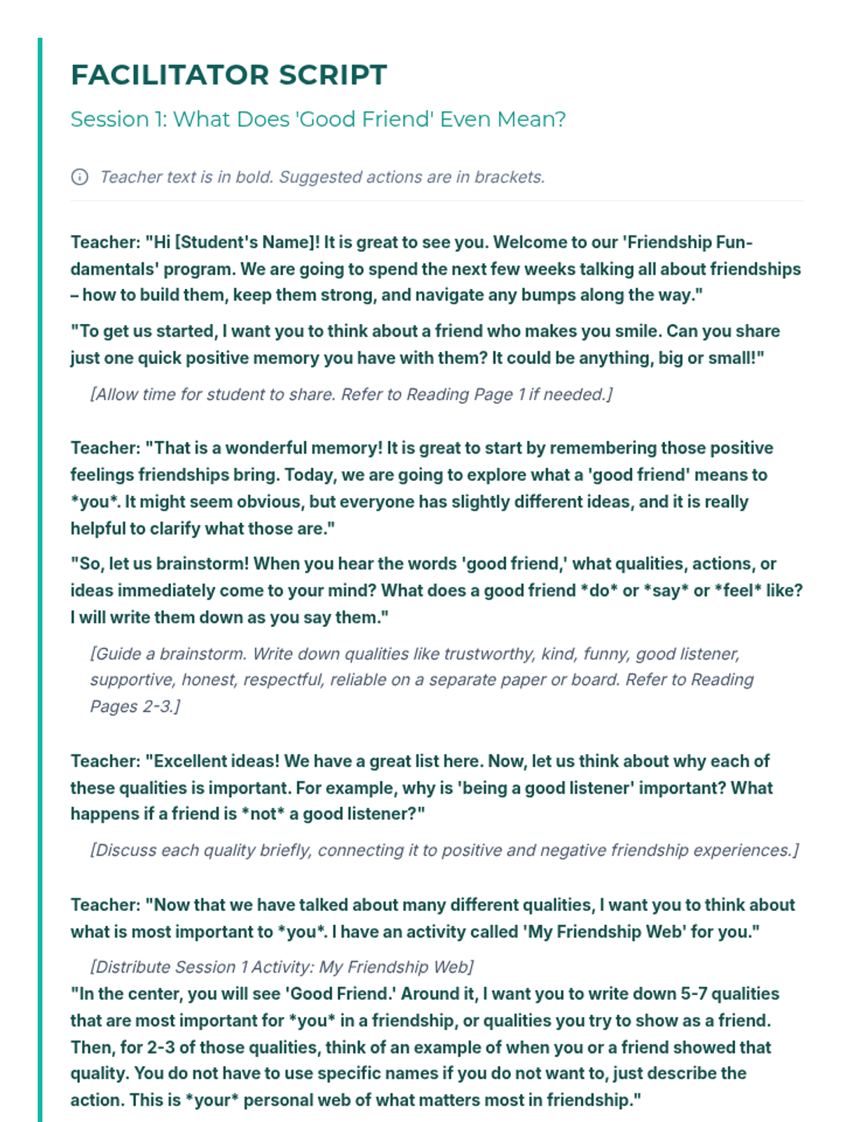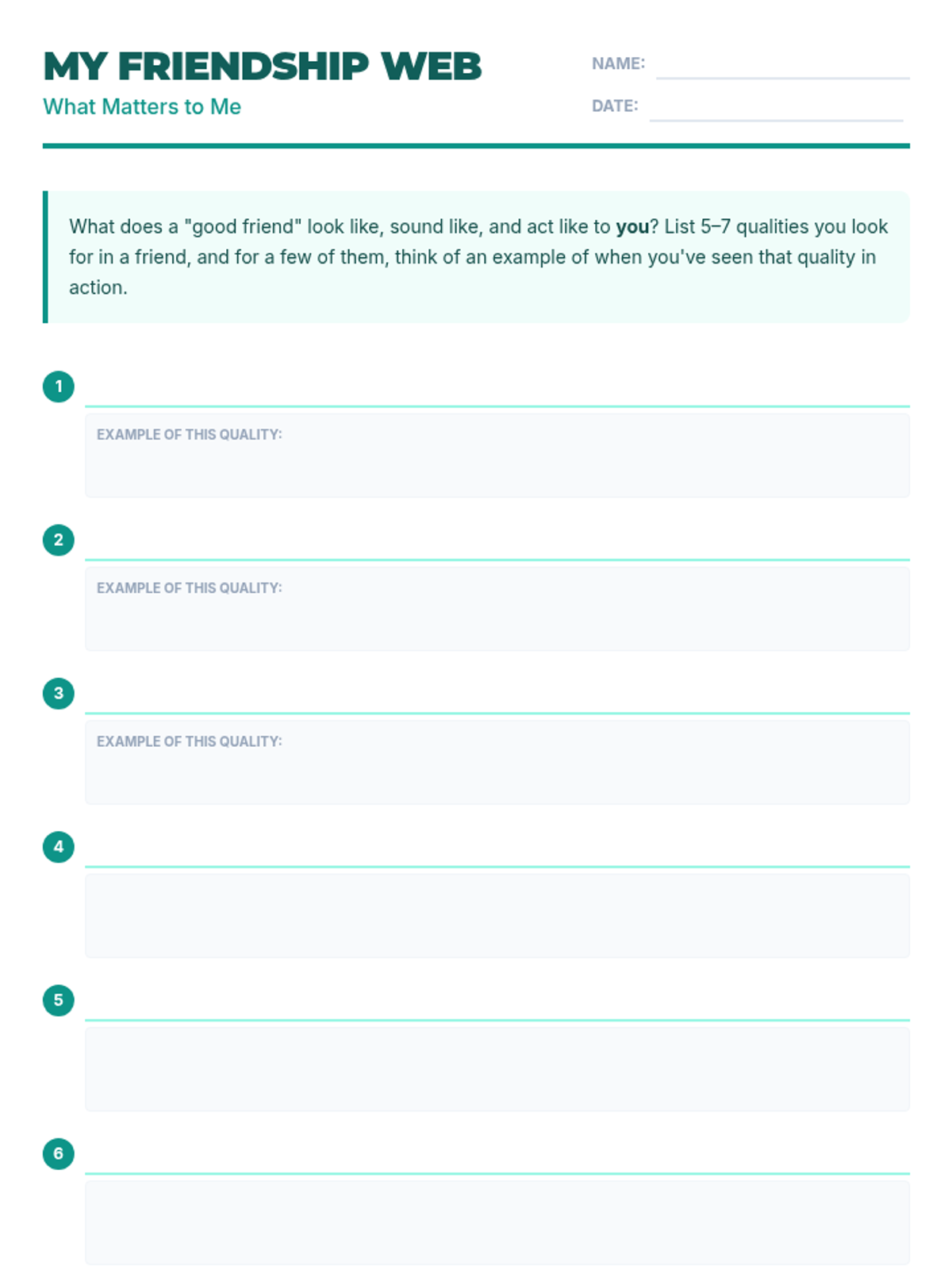Students define what a "good friend" means to them and identify key qualities they value in healthy friendships.