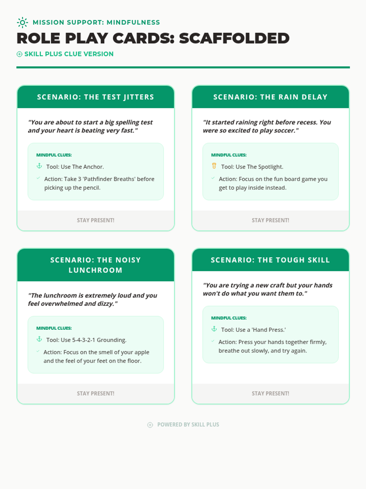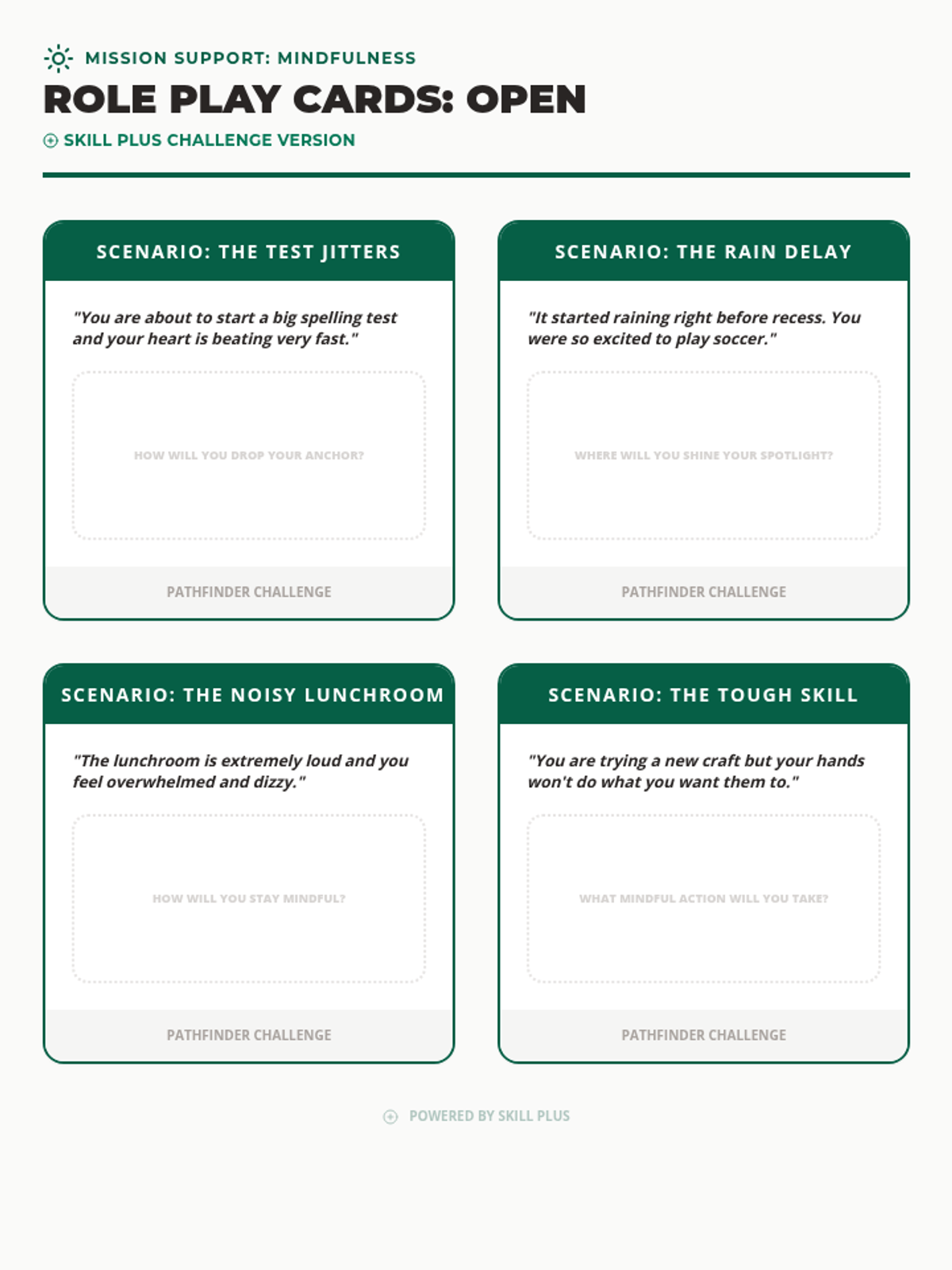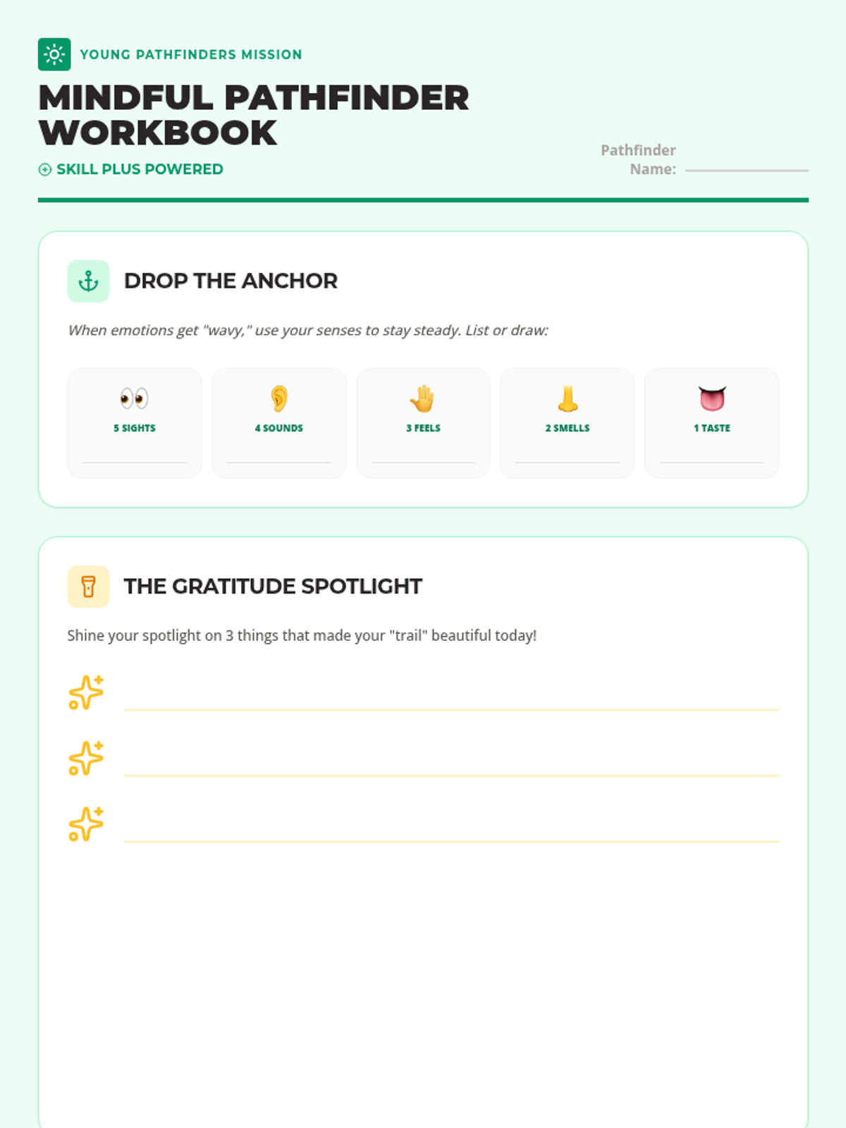A lesson focused on mindfulness and emotional regulation, teaching Pathfinders how to stay centered using grounding techniques and a positive mindset.