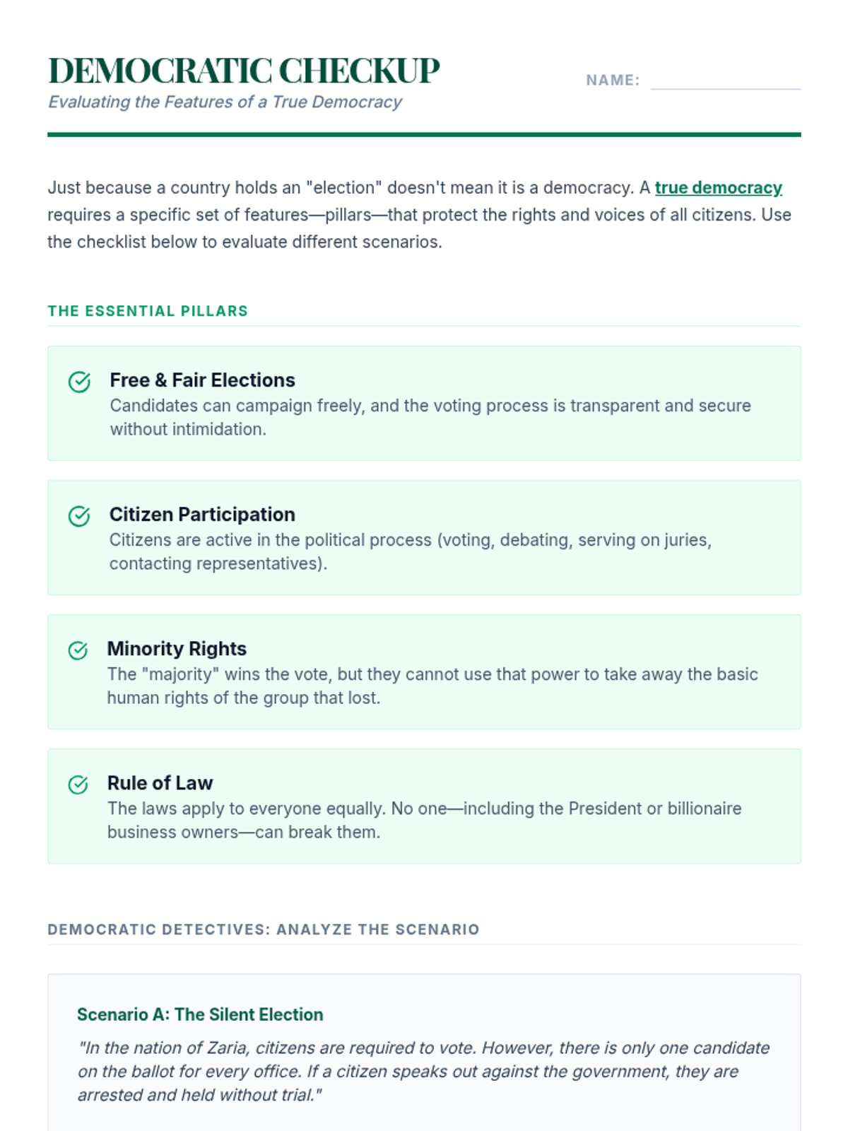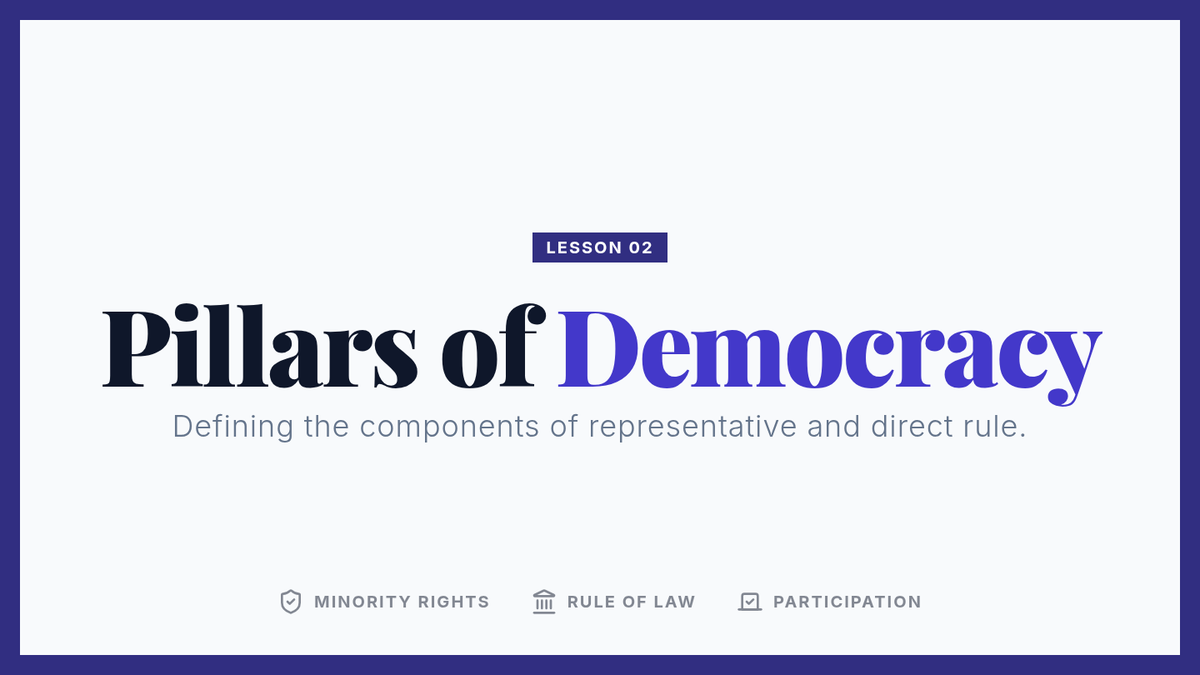 Focuses on the core components of democracy, distinguishing between direct and representative models and the essential rights that protect the minority.