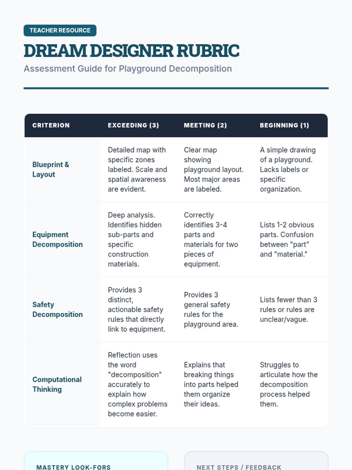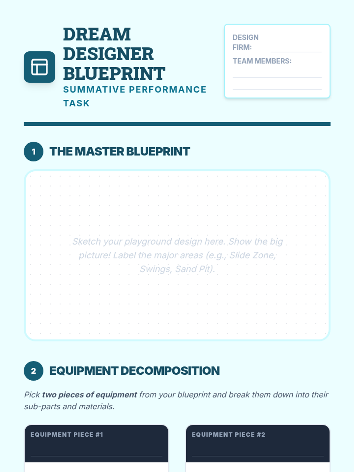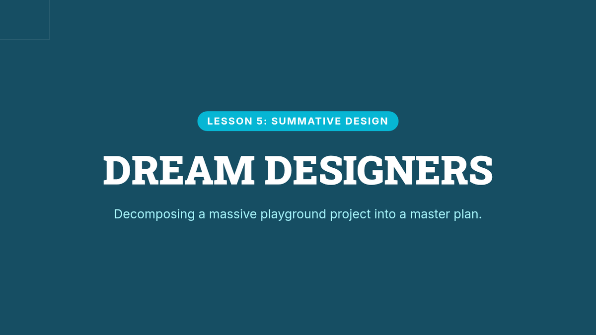 A summative project-based lesson where students decompose the complex goal of designing a playground into detailed blueprints, material lists, and safety requirements.