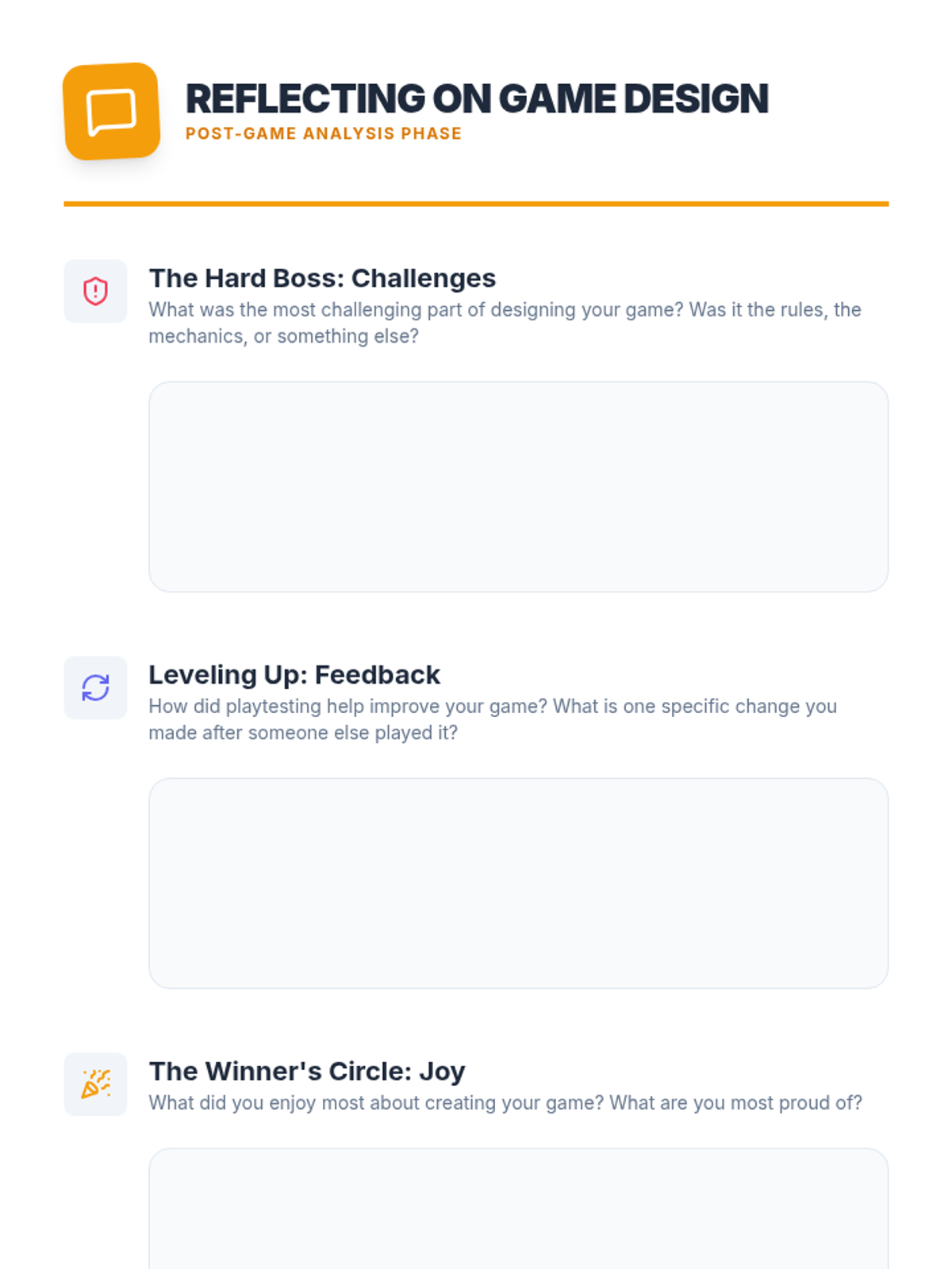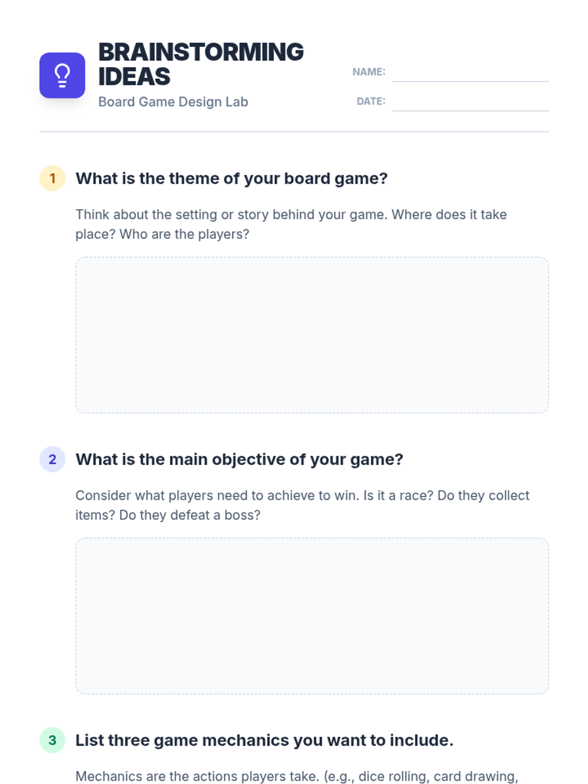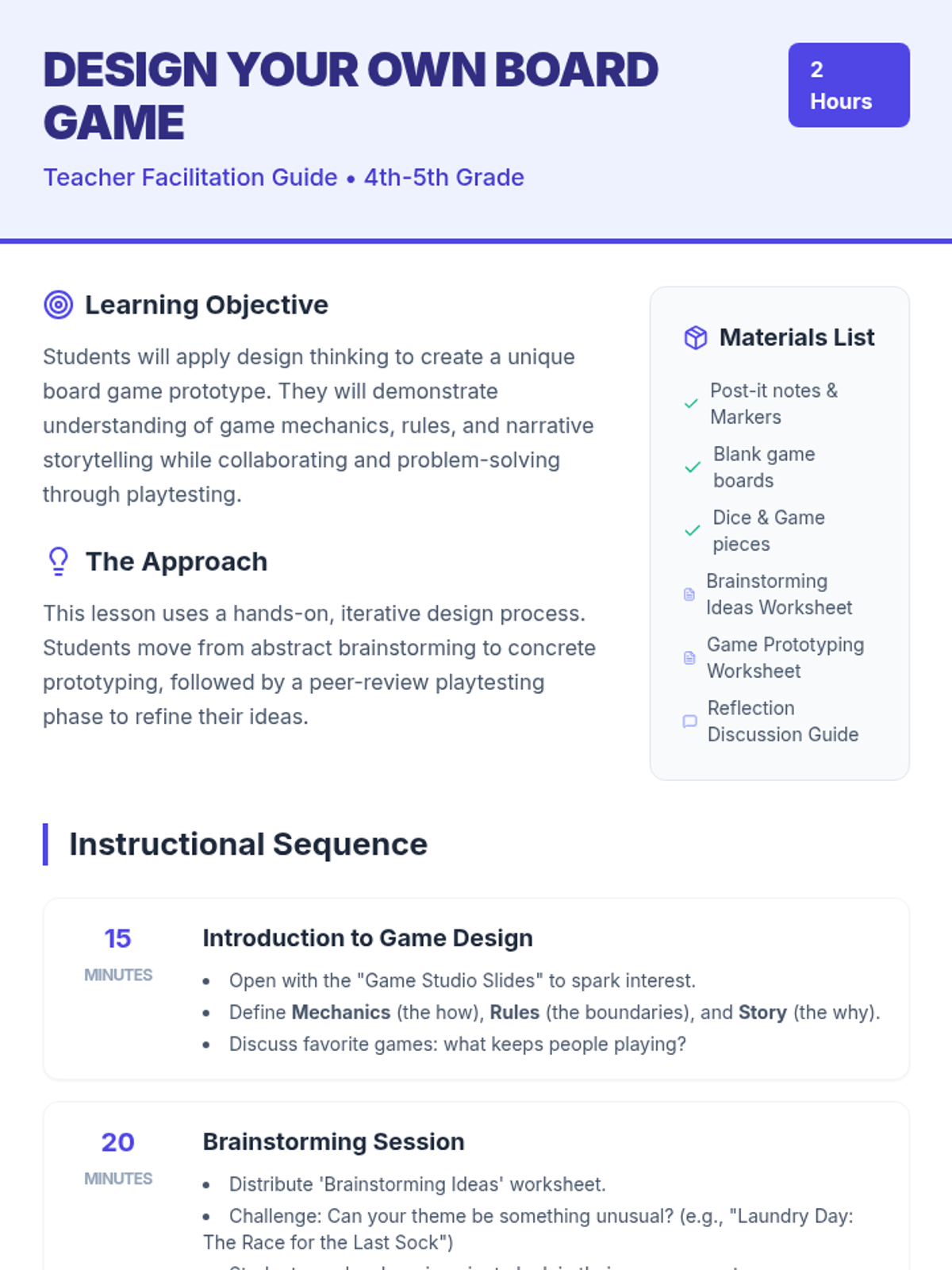 A creative, hands-on lesson where 4th and 5th-grade students learn the fundamentals of game design, mechanics, and storytelling by prototyping their own original board games.