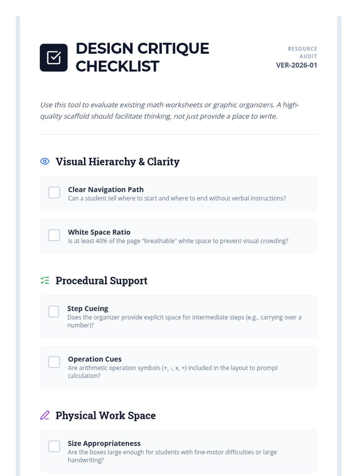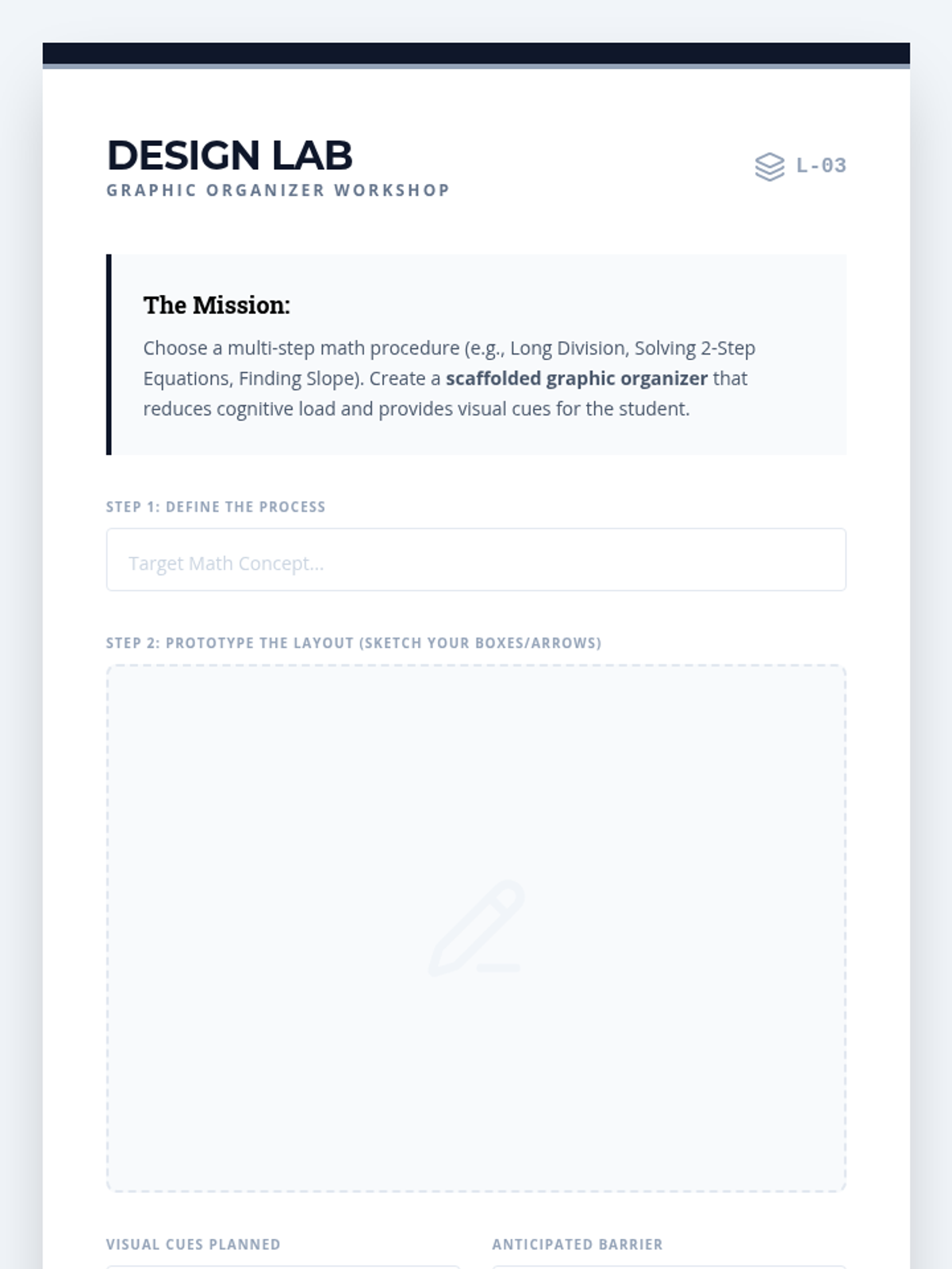 Participants design custom graphic organizers that guide students through multi-step procedures, focusing on visual clarity and reducing cognitive load.