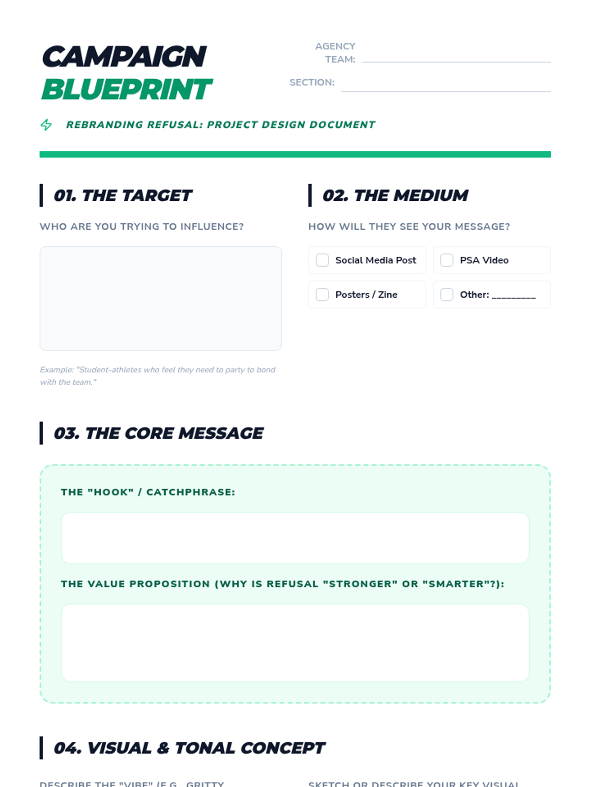 Students begin designing their own social advocacy campaigns to rebrand refusal as a source of social strength.