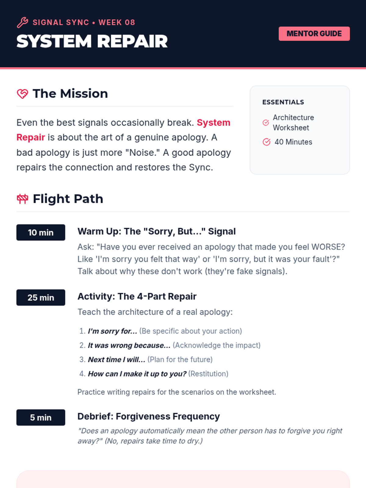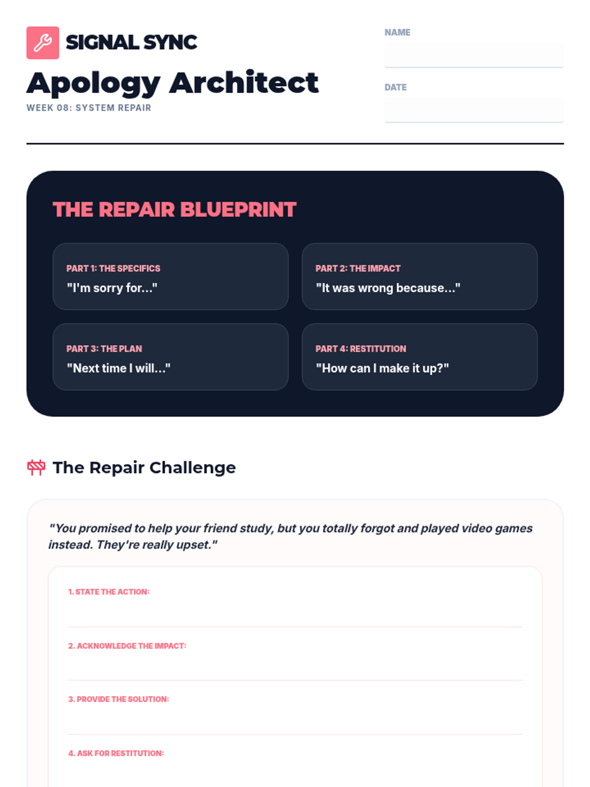 The framework for offering and accepting genuine apologies to repair damaged relationships.