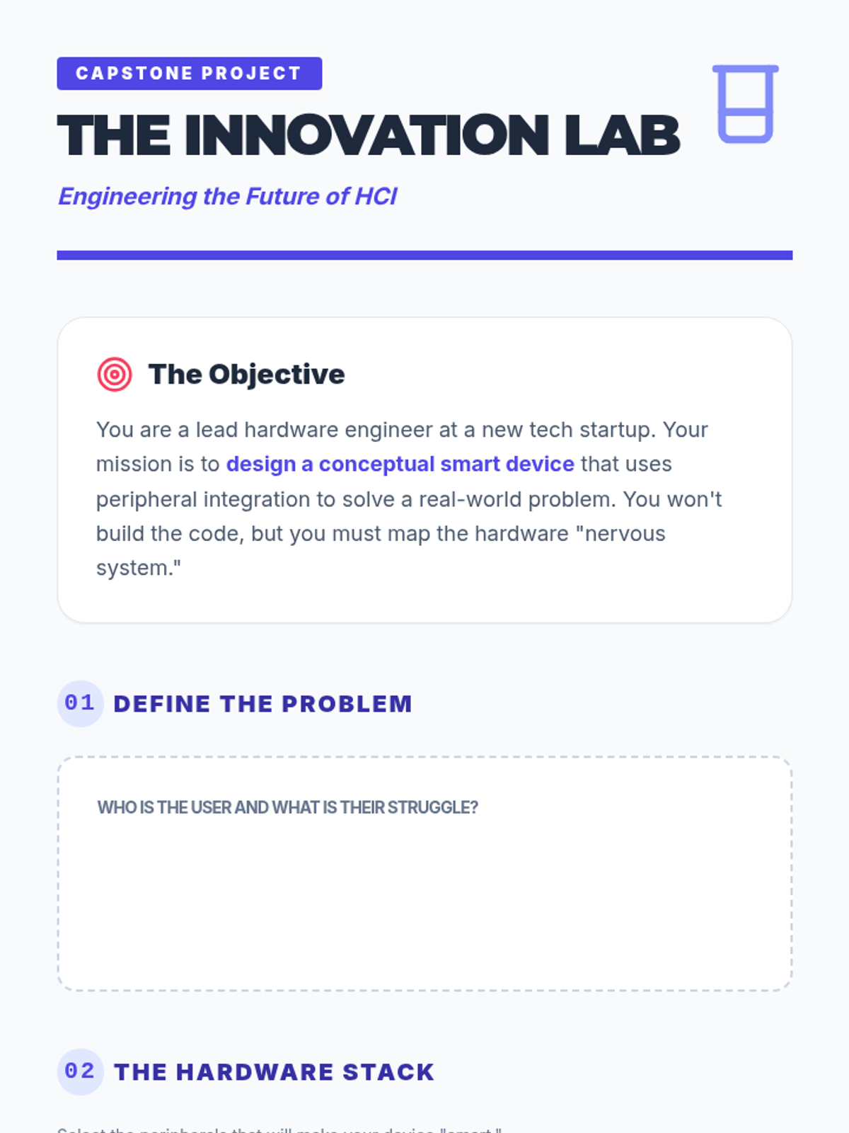 The culmination of the sequence where students design a conceptual 'smart' device using peripheral integration to solve a specific real-world problem.