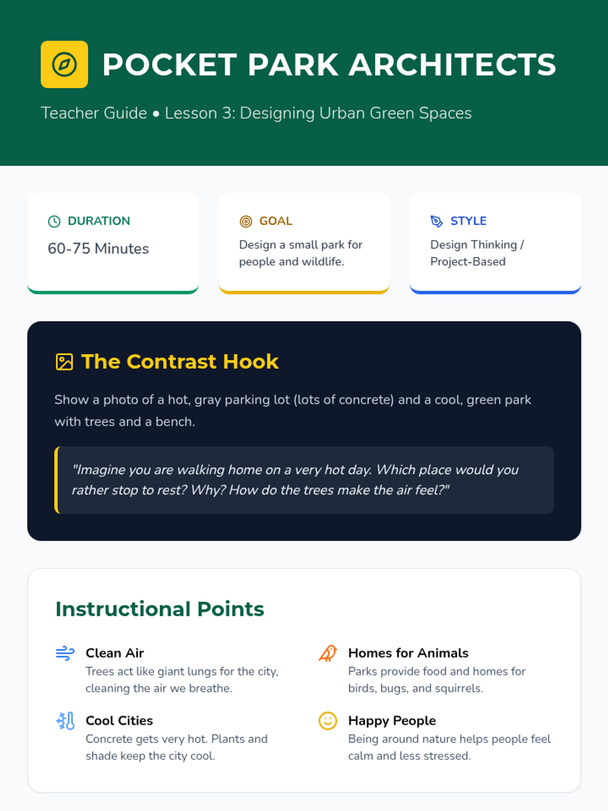 An exploration of why green spaces are essential for cities, culminating in students designing their own 'Pocket Park' for people and wildlife.