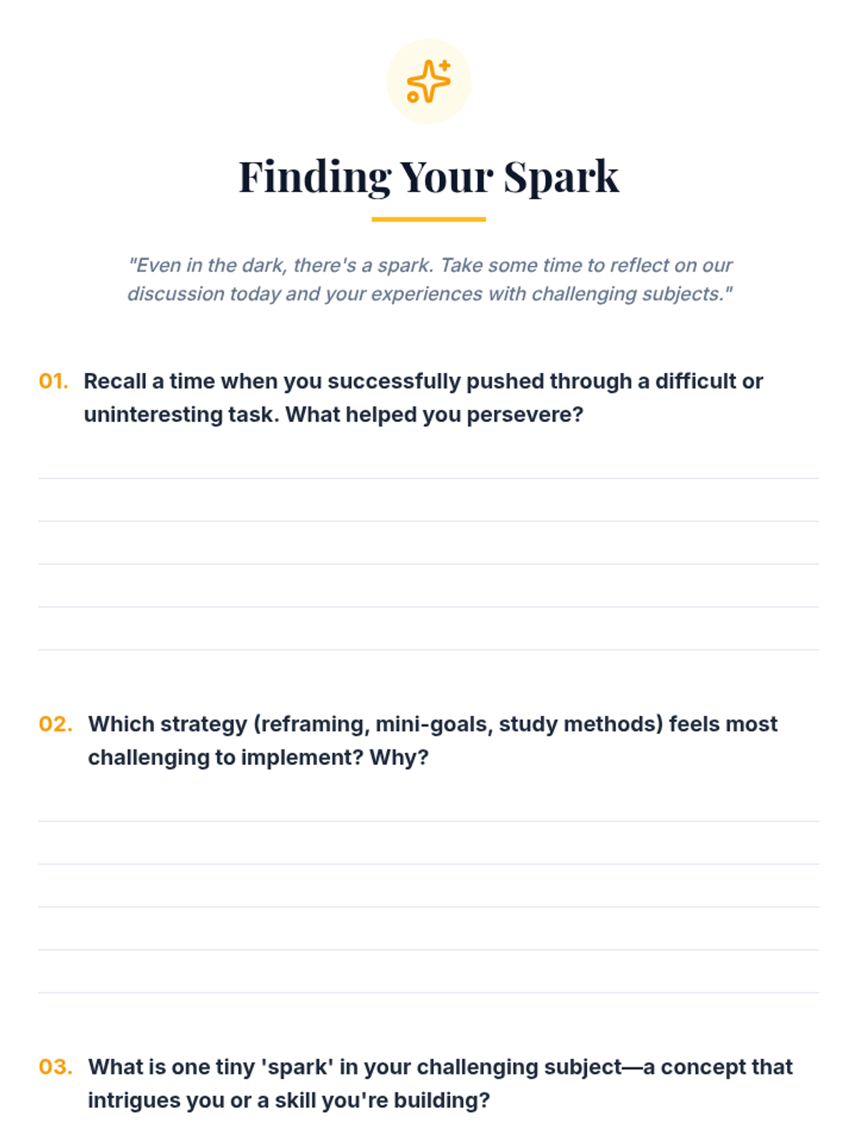 Focuses on the second 'P' (Purpose), guiding students to connect their daily actions to their deeper 'Why' to sustain effort when things get tough.