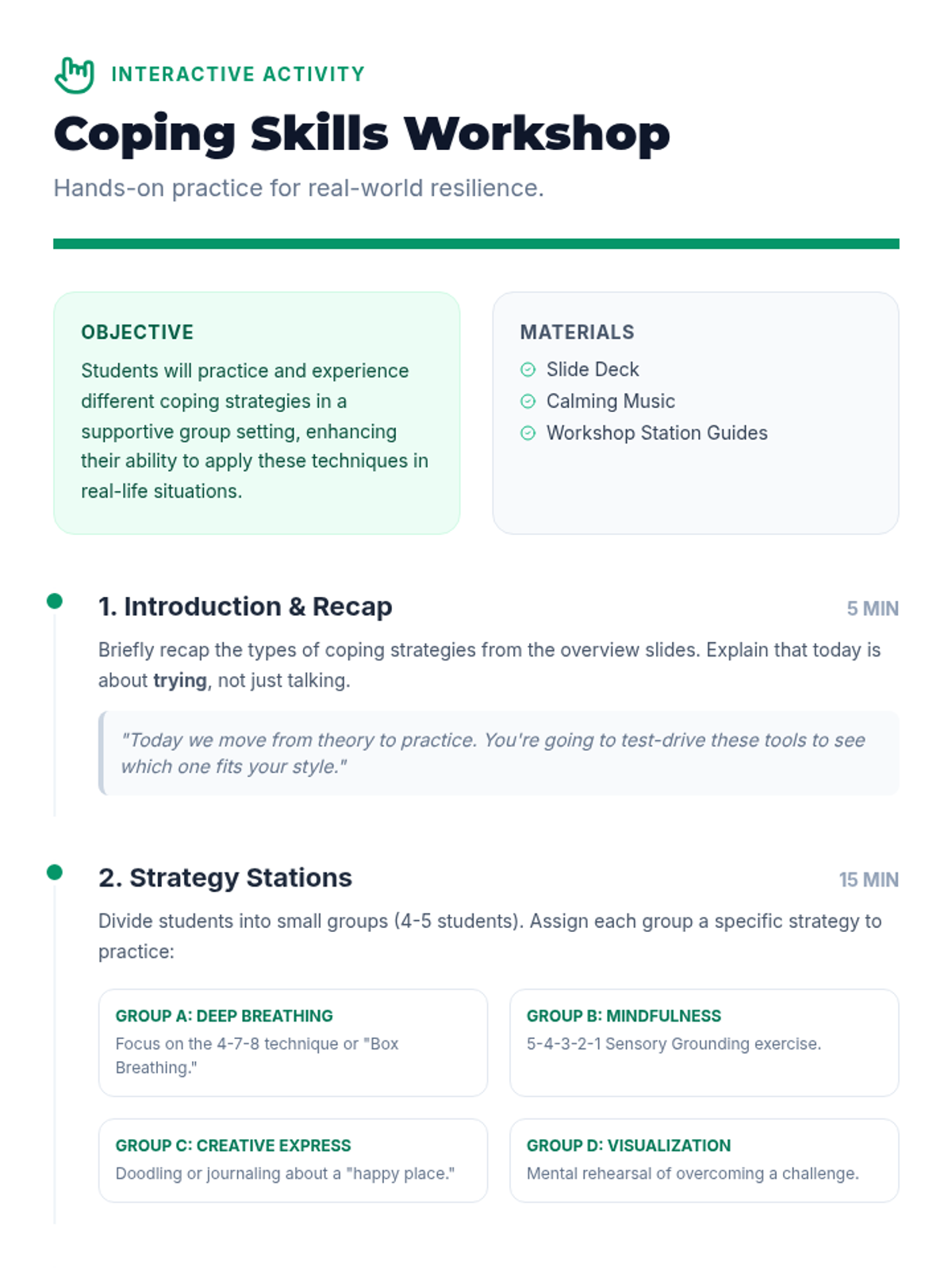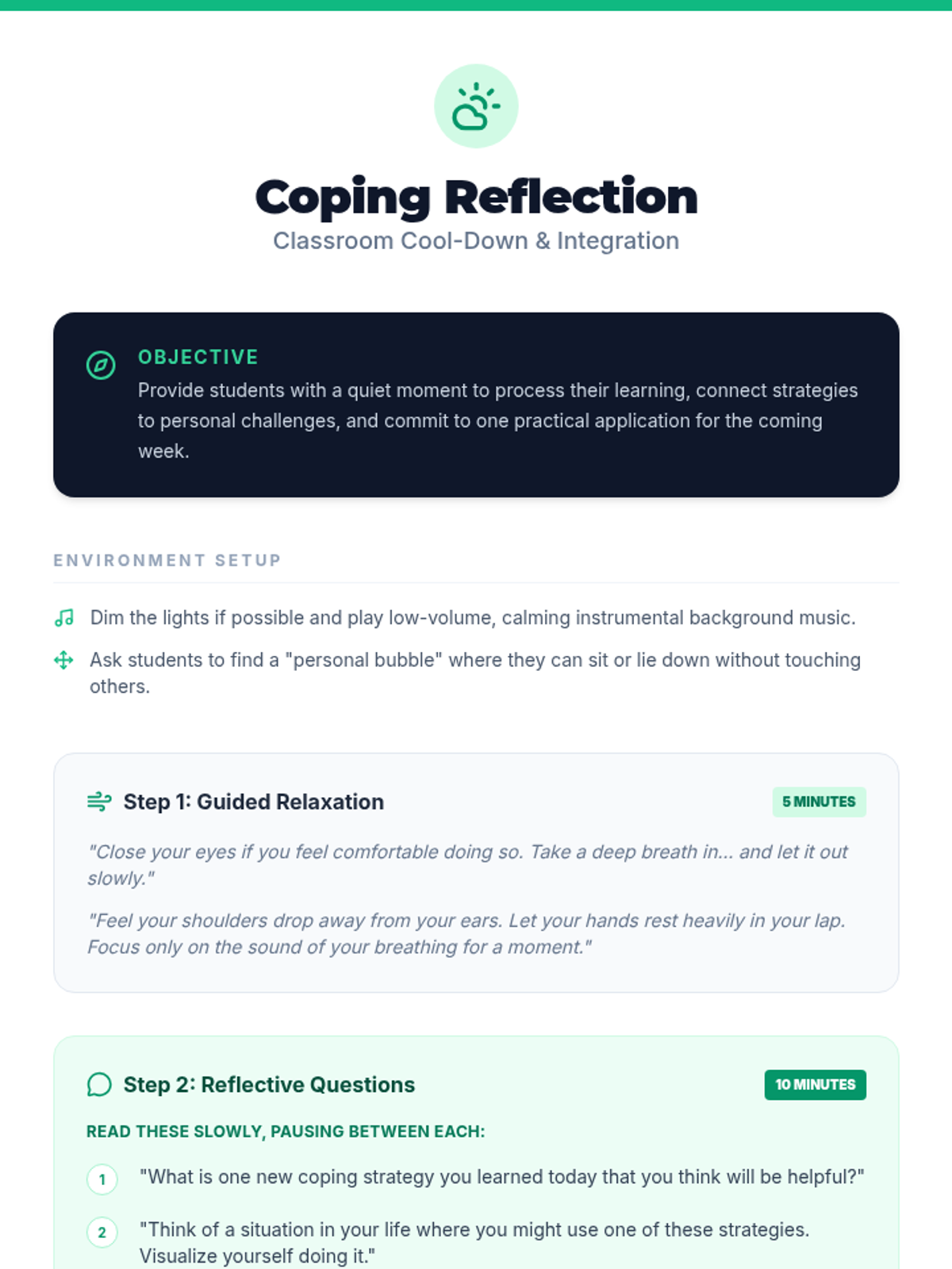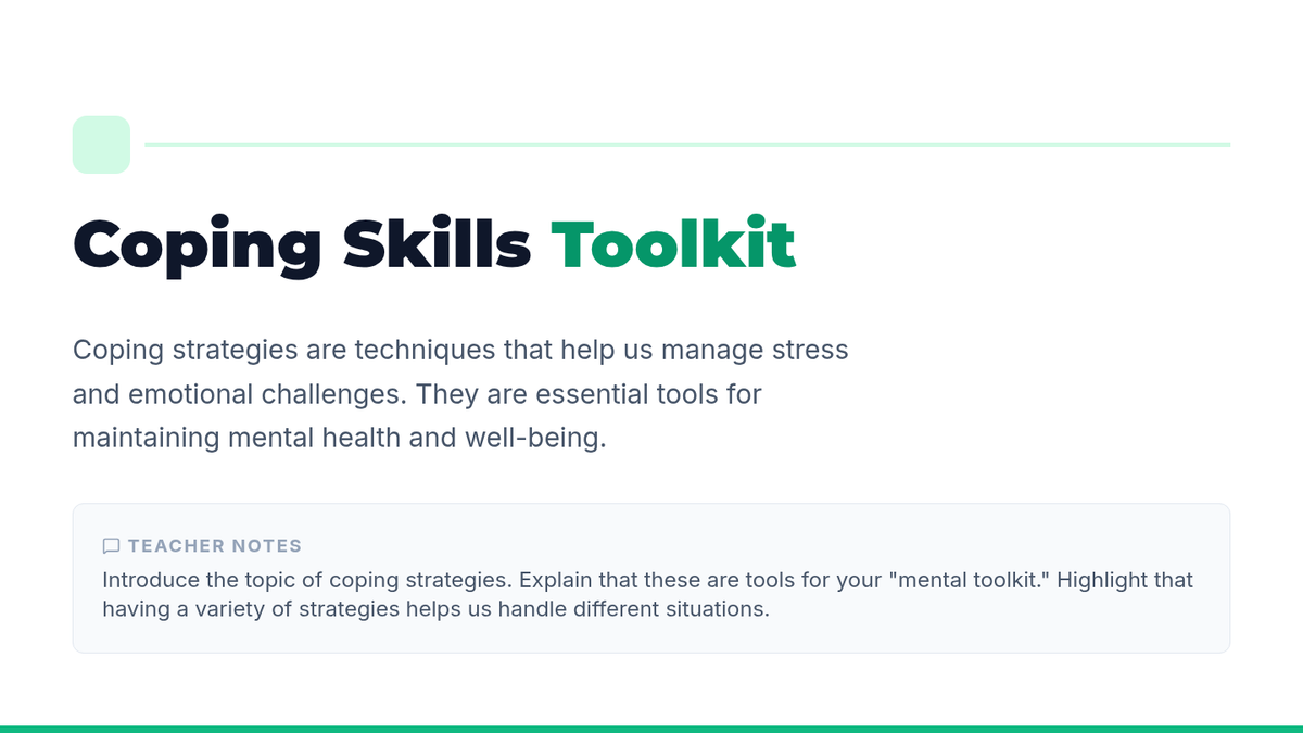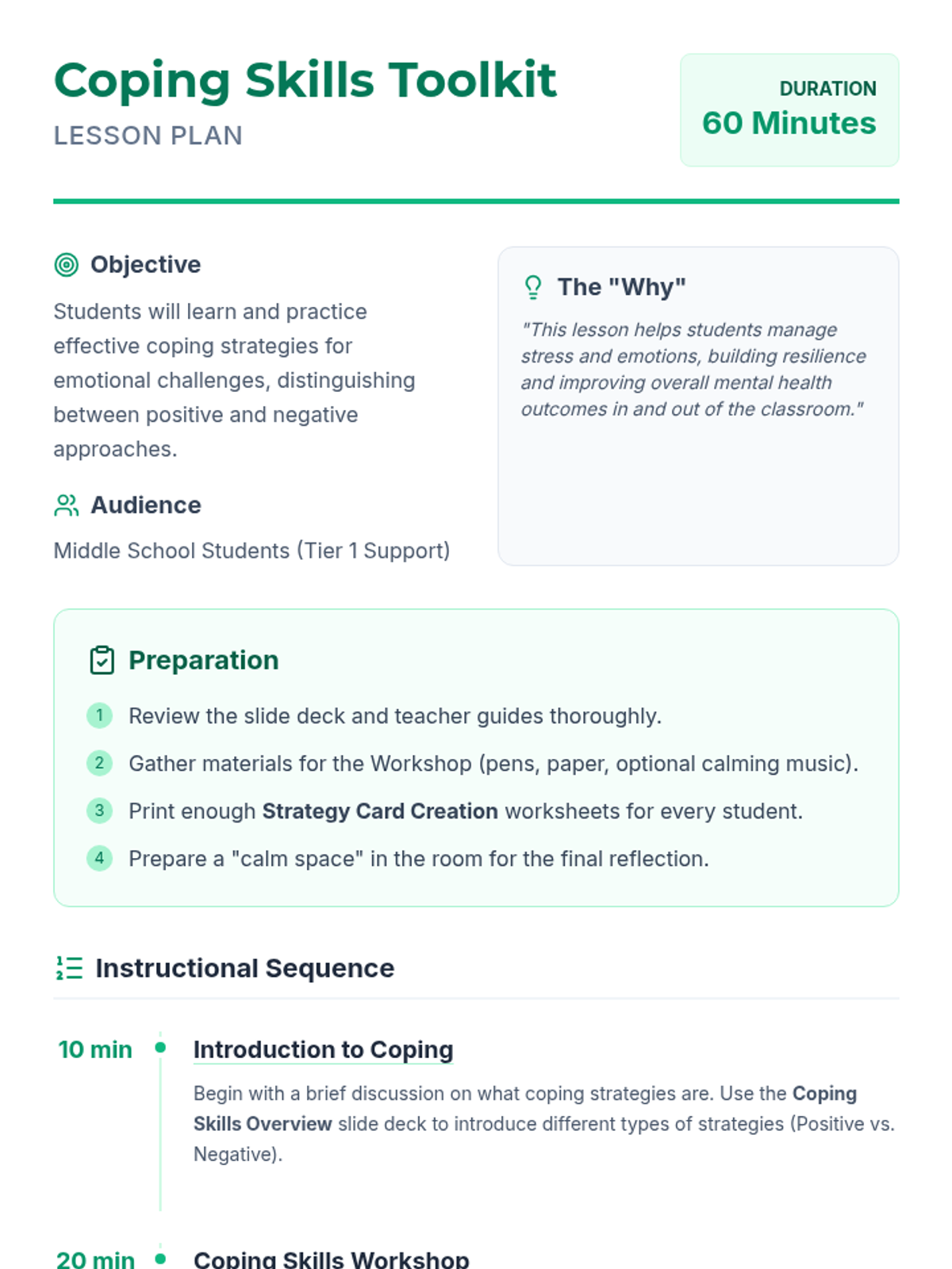A comprehensive lesson designed to equip middle school students with practical, positive coping strategies to manage stress and emotional challenges effectively.