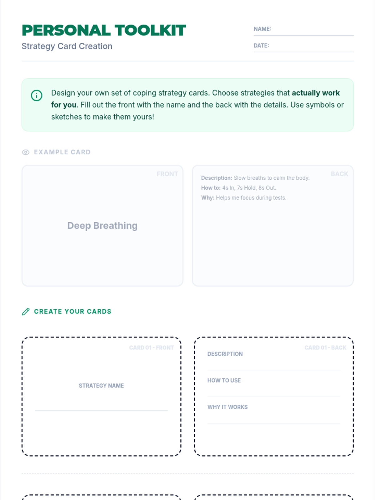 A comprehensive lesson for grades 7-12 on understanding the neuroscience of stress and building a personalized toolkit of evidence-based coping strategies. Students explore the 4 F's of stress responses and practice concrete techniques like box breathing and cognitive reframing.