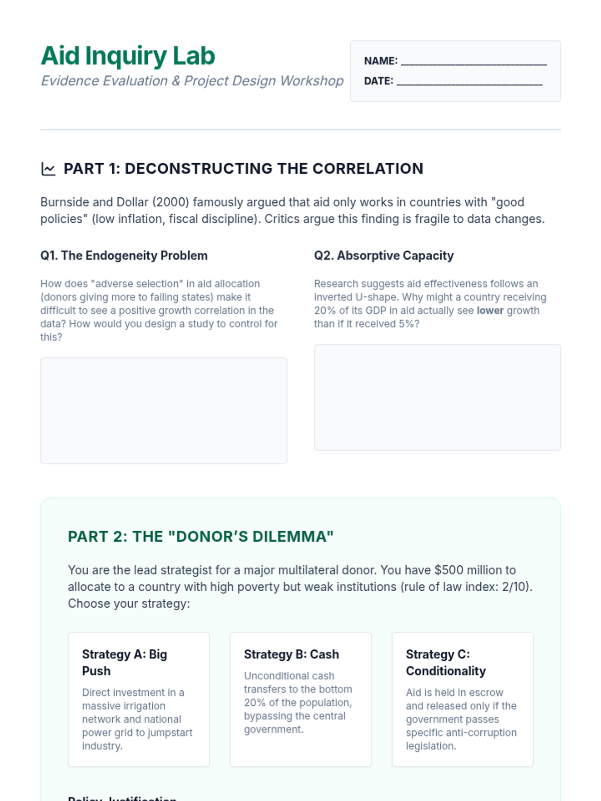 Evaluates the econometric evidence on foreign aid effectiveness, contrasting 'Big Push' models with institutional and accountability critiques.