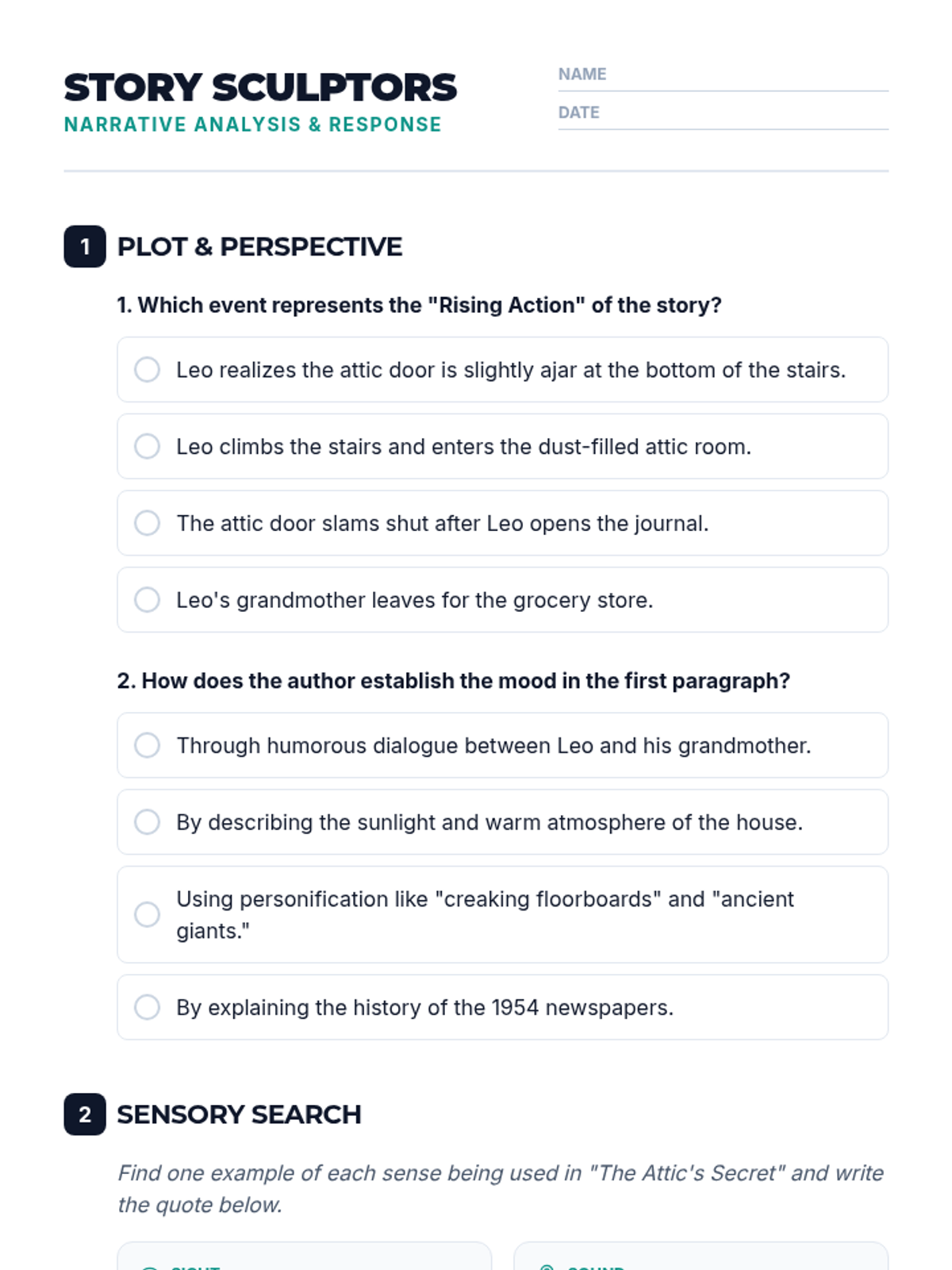 Focuses on identifying key details, parts of speech, and narrative structure through a 1920s mystery news story. Students act as cub reporters to decode a manuscript and practice foundational grammar within a storytelling context.