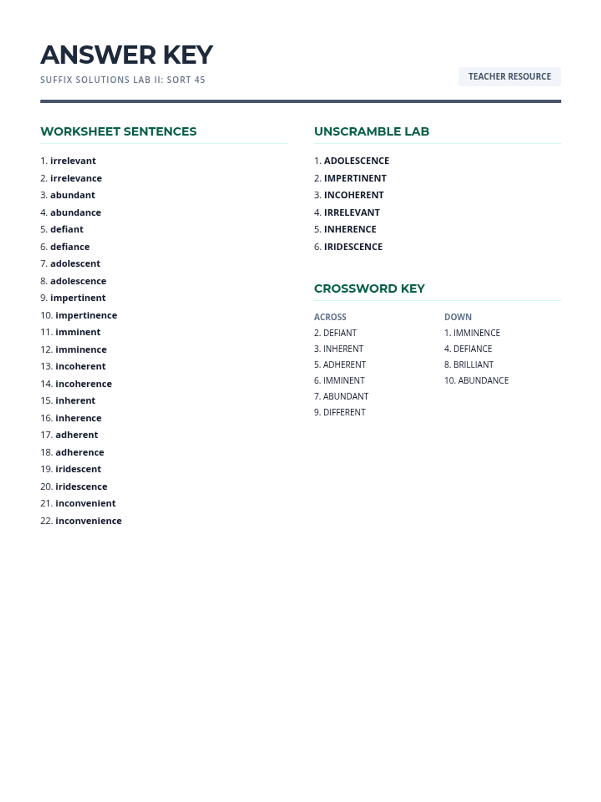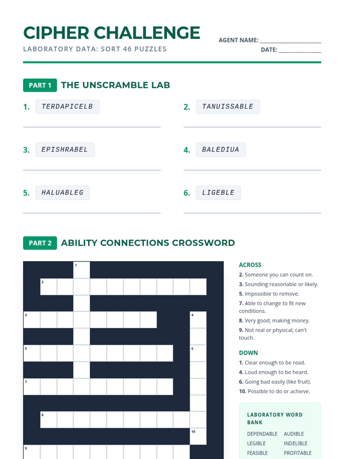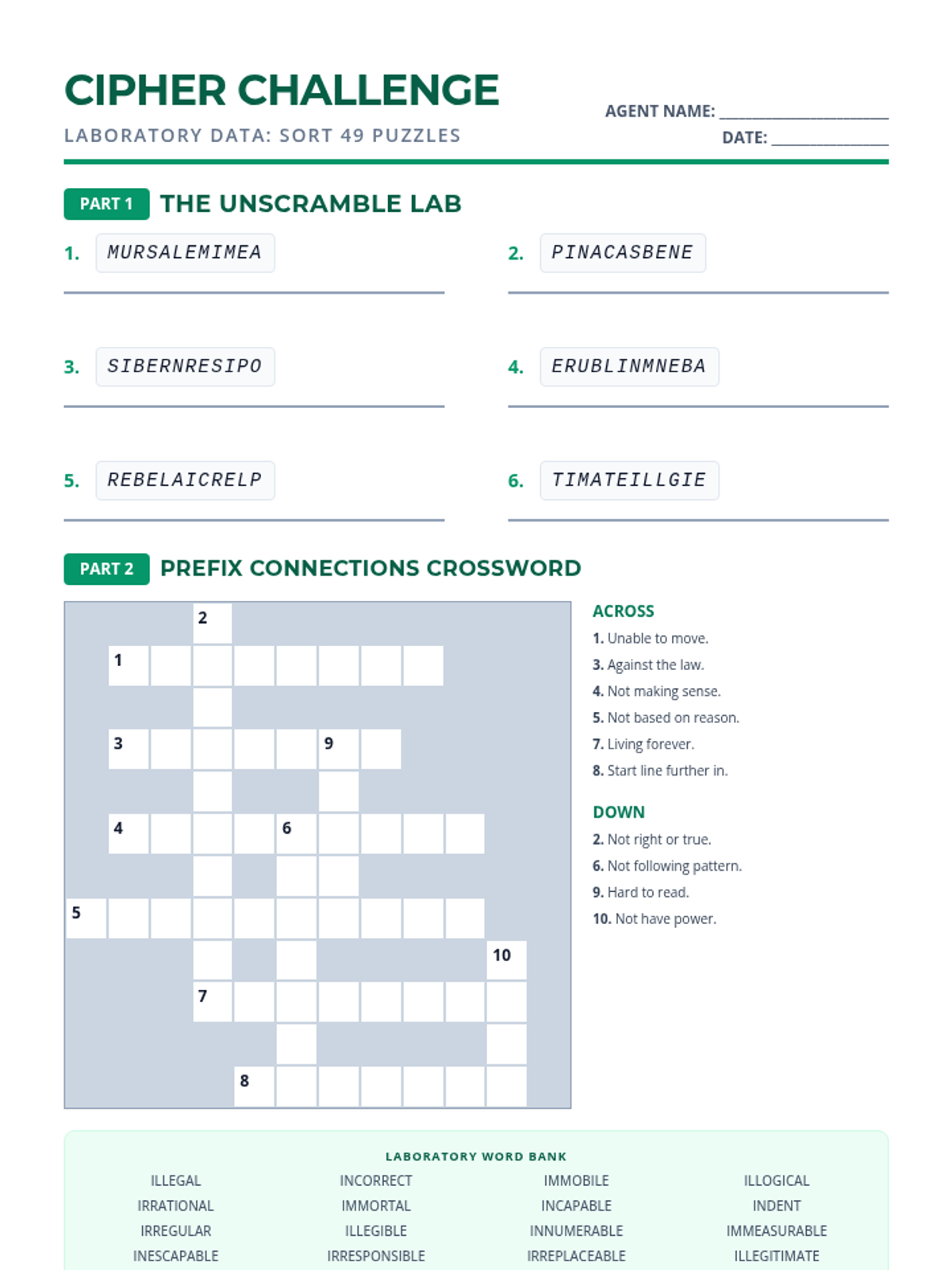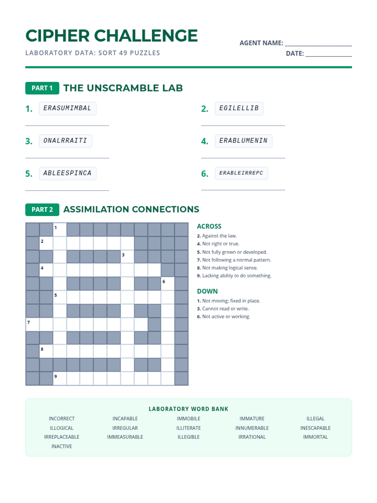 A comprehensive lesson focusing on derivational roots jud, leg, mod, and biblio, featuring a word bank, fill-in-the-blank exercises, word scrambles, and a crossword puzzle.