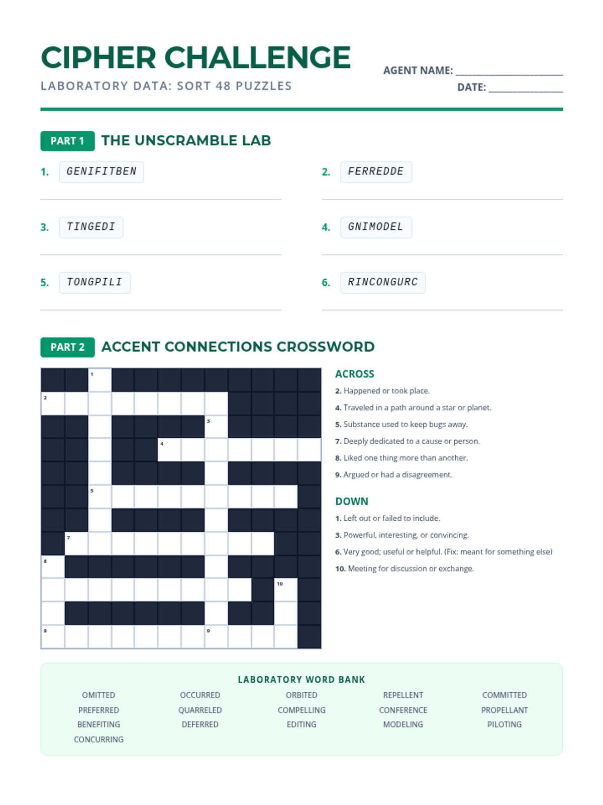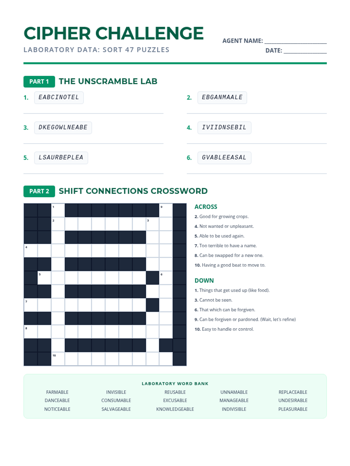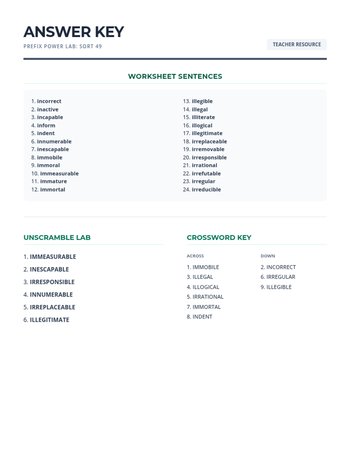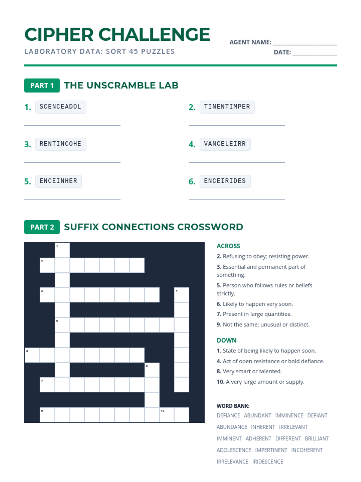 A comprehensive lesson focusing on derivational roots jud, leg, mod, and biblio, featuring a word bank, fill-in-the-blank exercises, word scrambles, and a crossword puzzle.