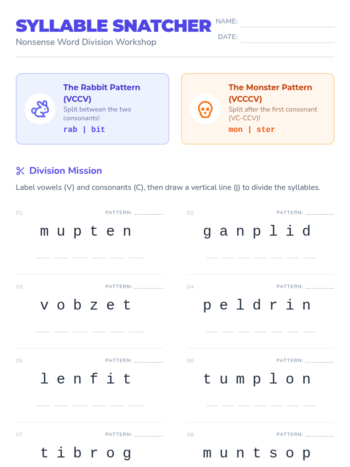 A hands-on lesson focused on identifying and building Silent-e (Vce) syllables, contrasting them with closed syllables. Students use 'magic wands' to transform words and sort enchanted scrolls.