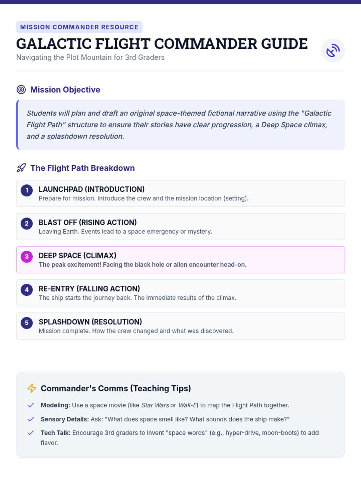 A lesson focused on informational text comprehension through the lens of space debris and orbital safety. Students will analyze main ideas, use context clues, and identify problem-solution structures in a technical text.