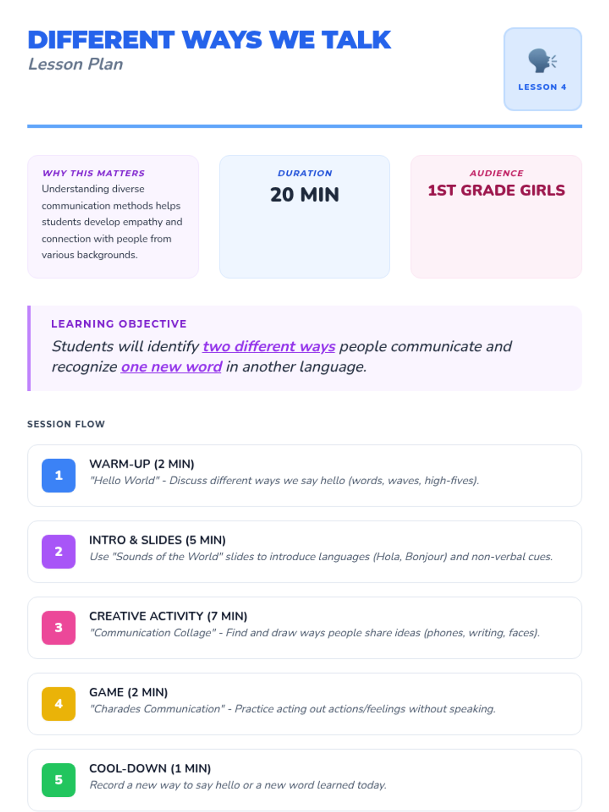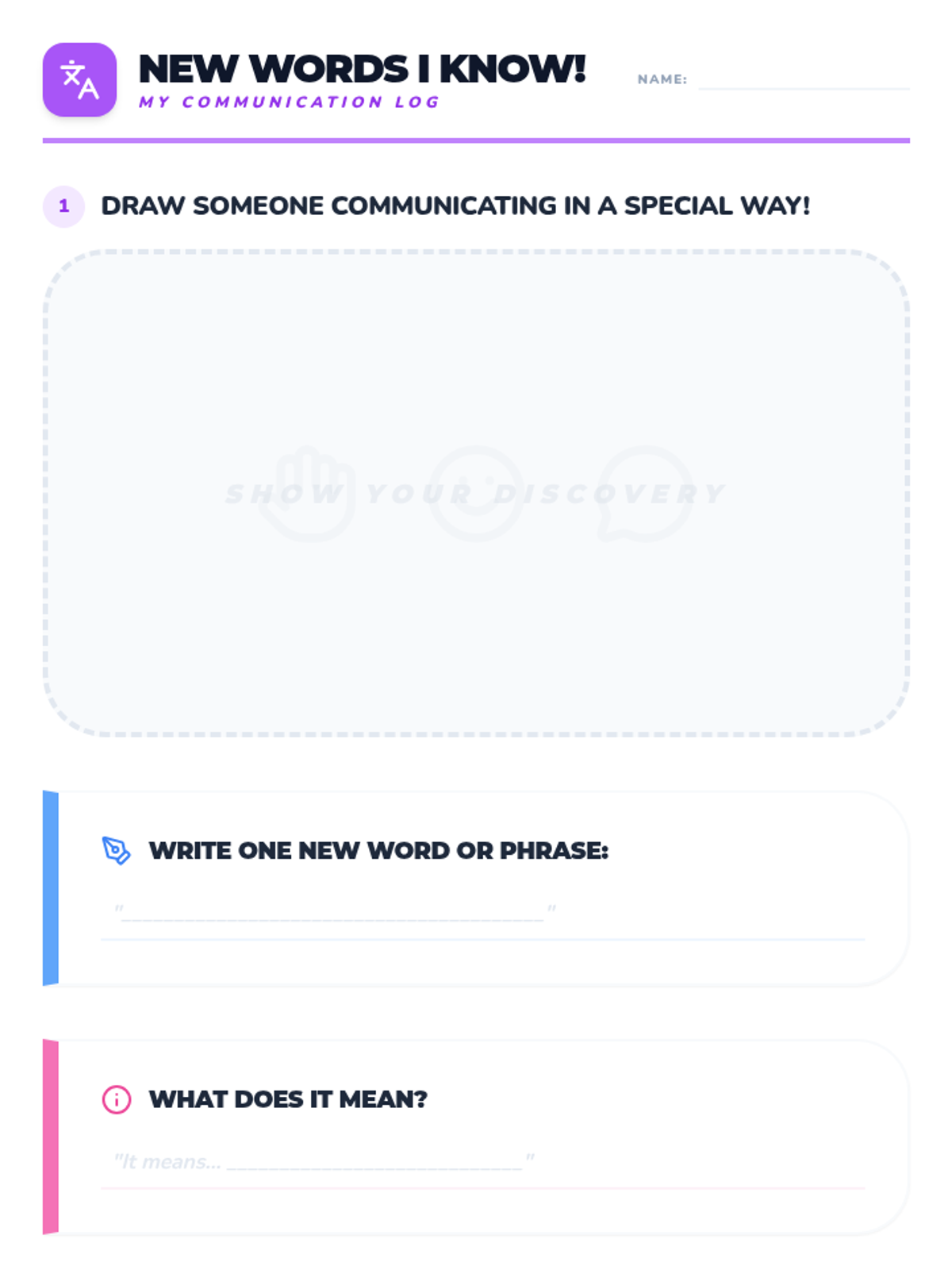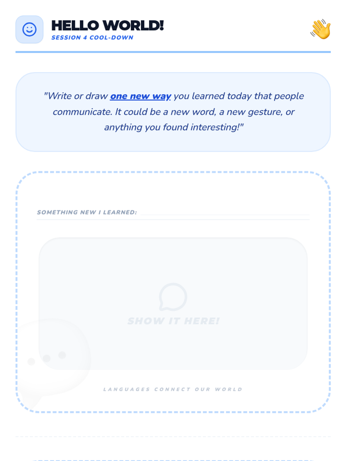 Students explore different ways people communicate around the world, including languages and non-verbal cues.