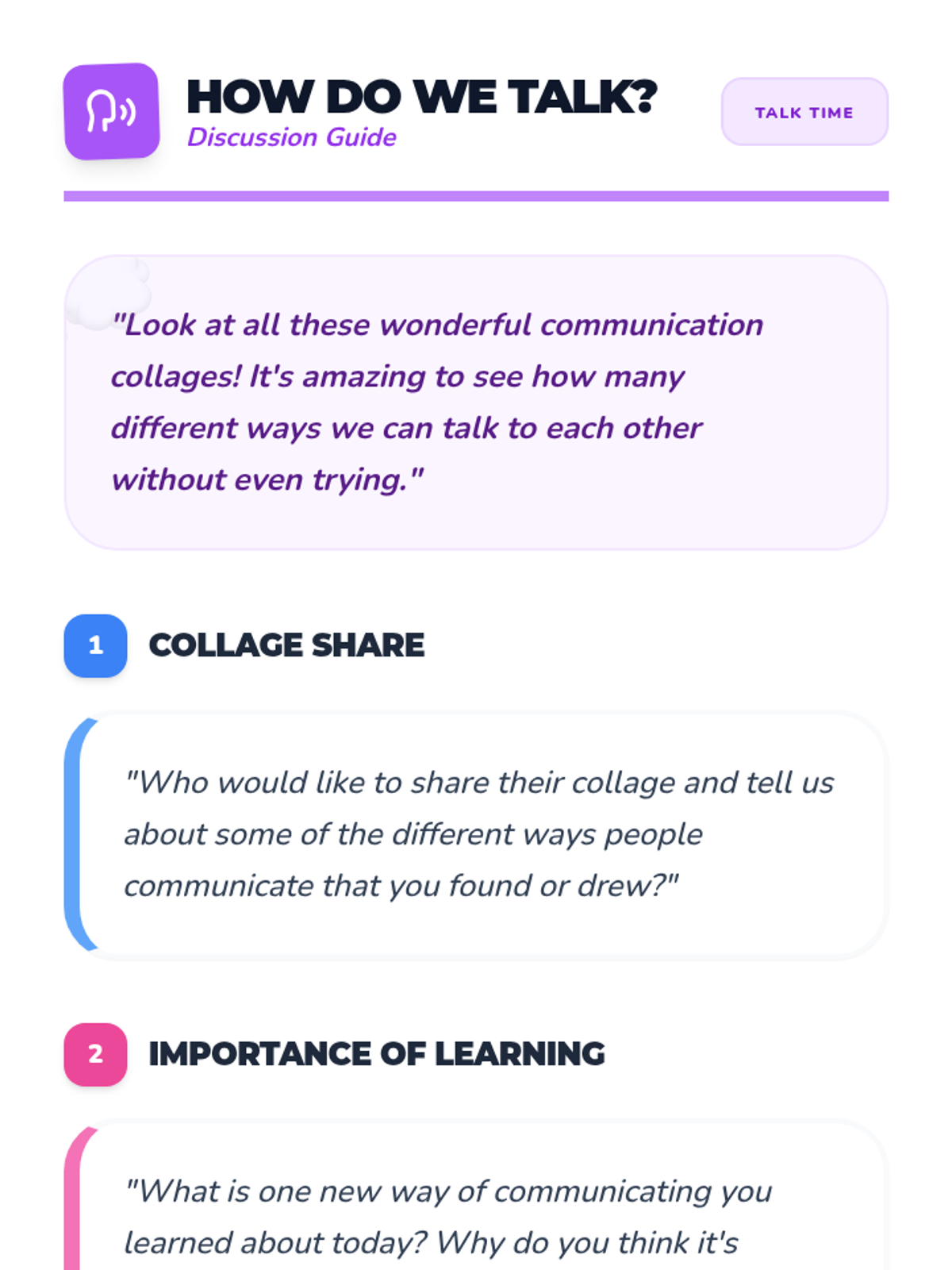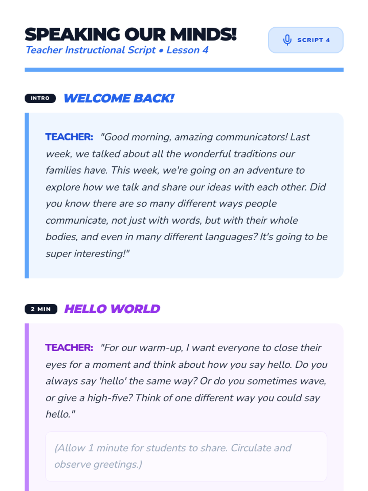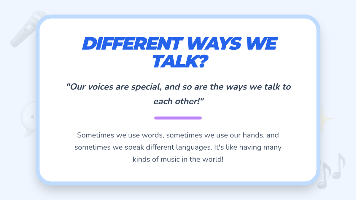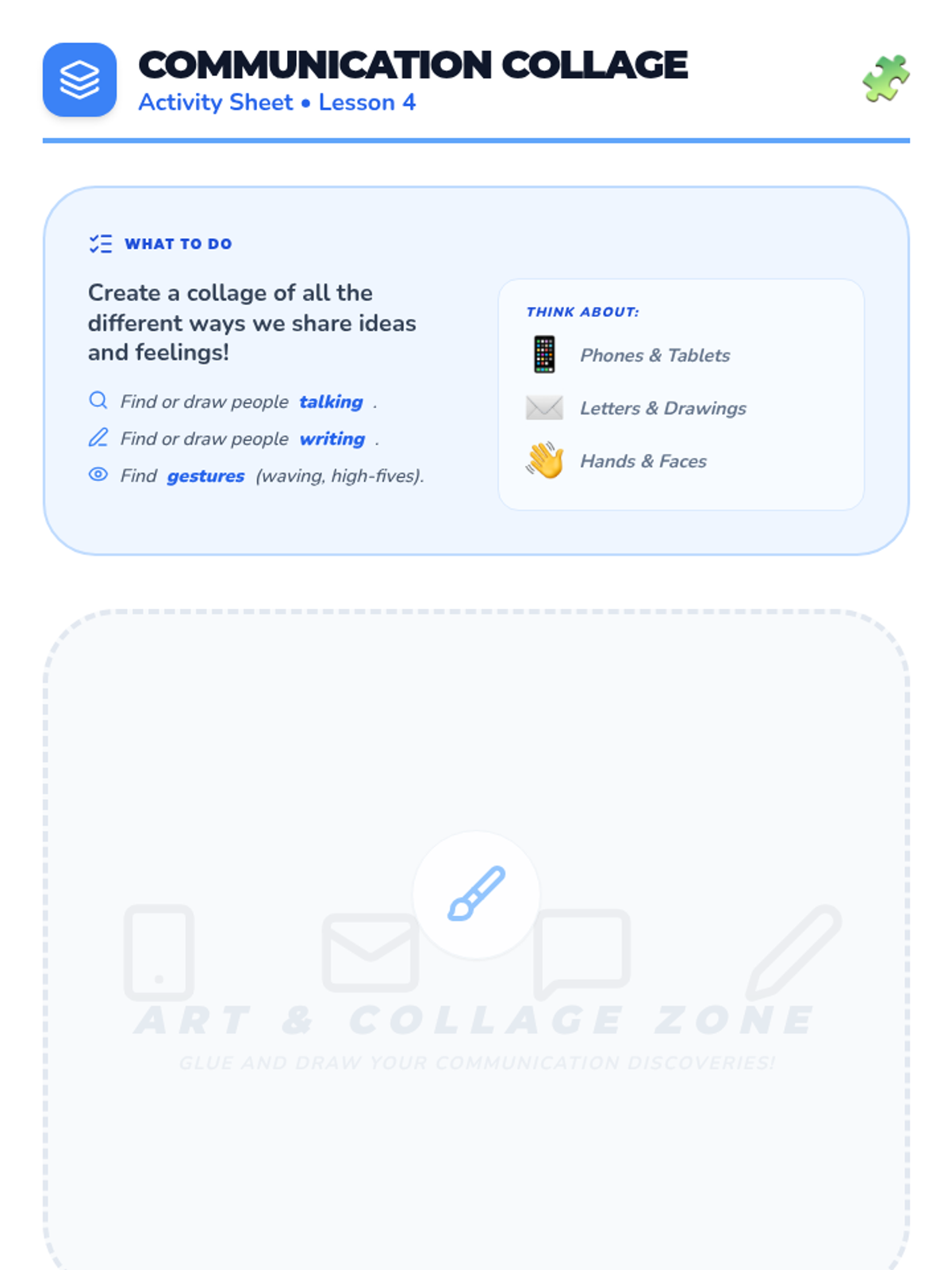 Students explore different ways people communicate around the world, including languages and non-verbal cues.