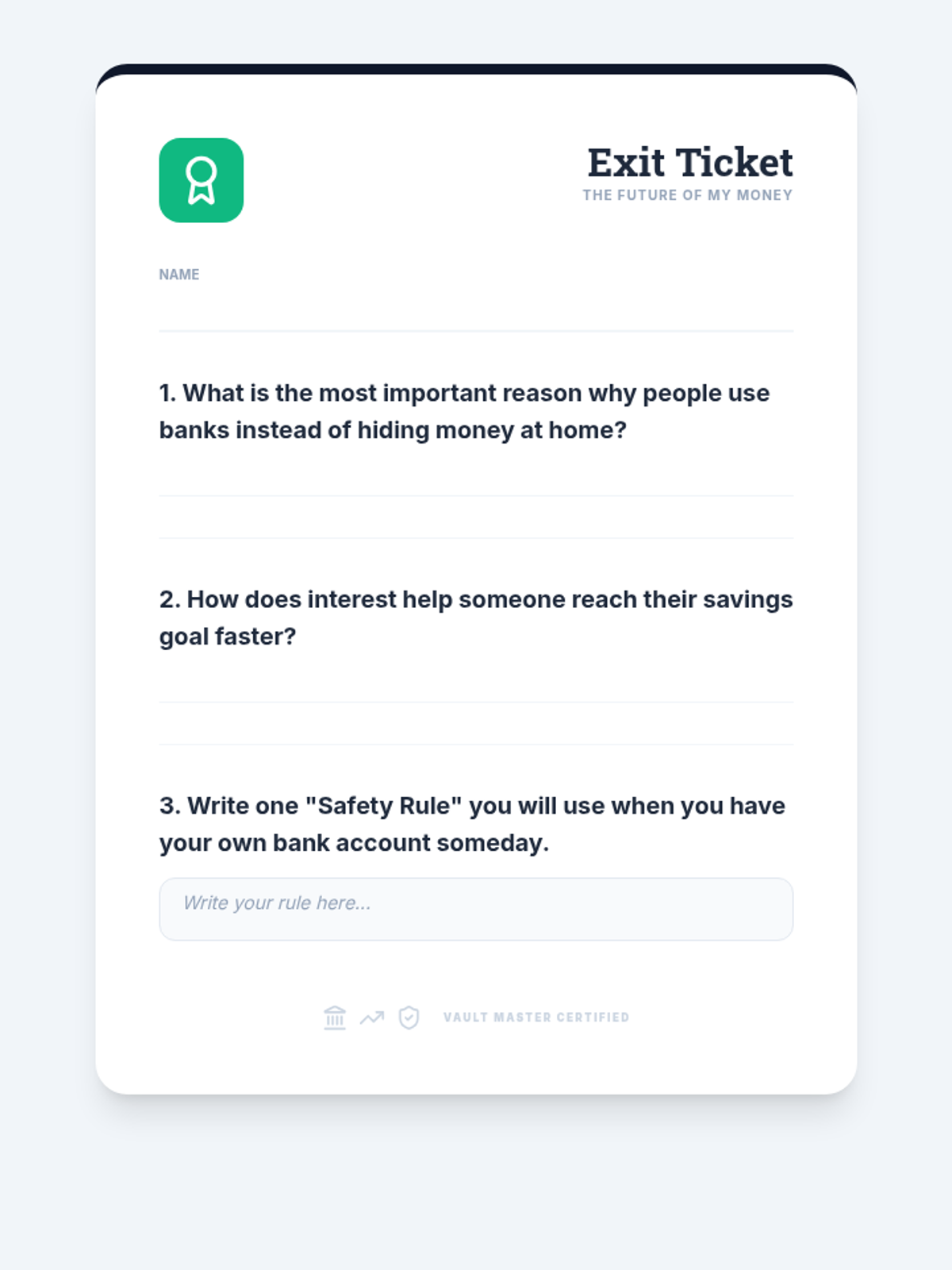 Moving beyond physical cash, this lesson explains how money moves electronically. Students explore the concept of digital numbers representing real value and discuss basic cybersecurity habits to protect financial data.