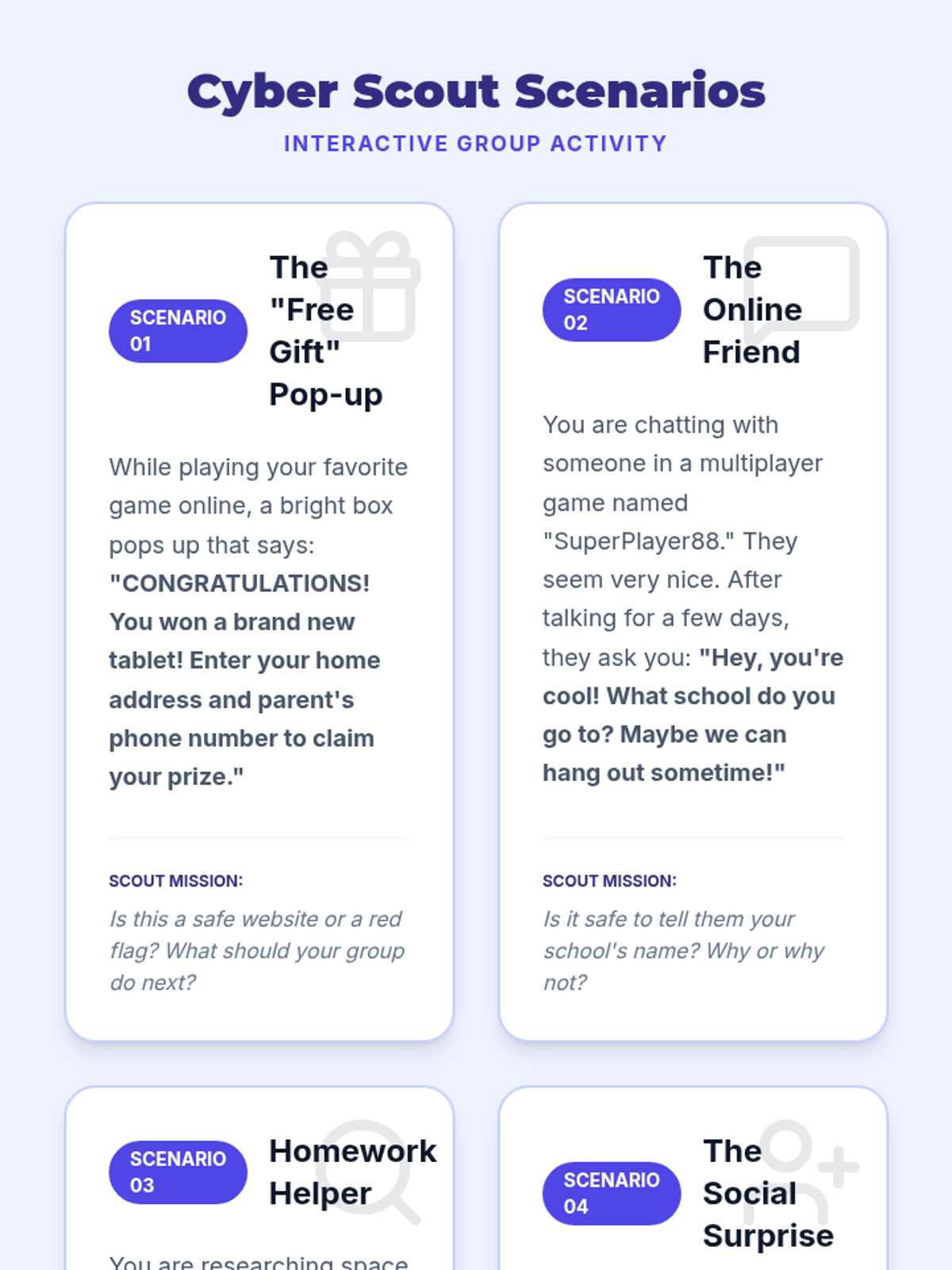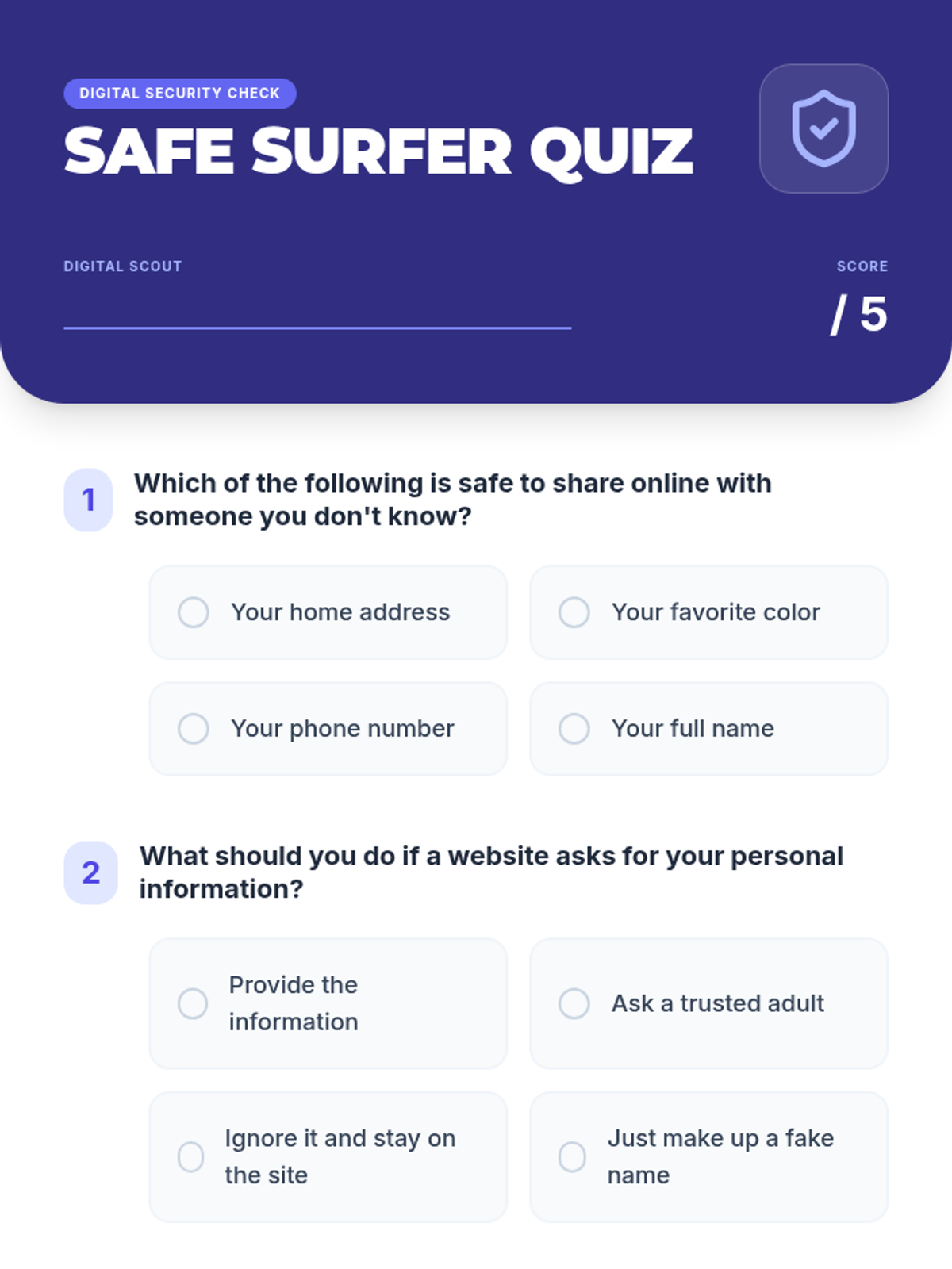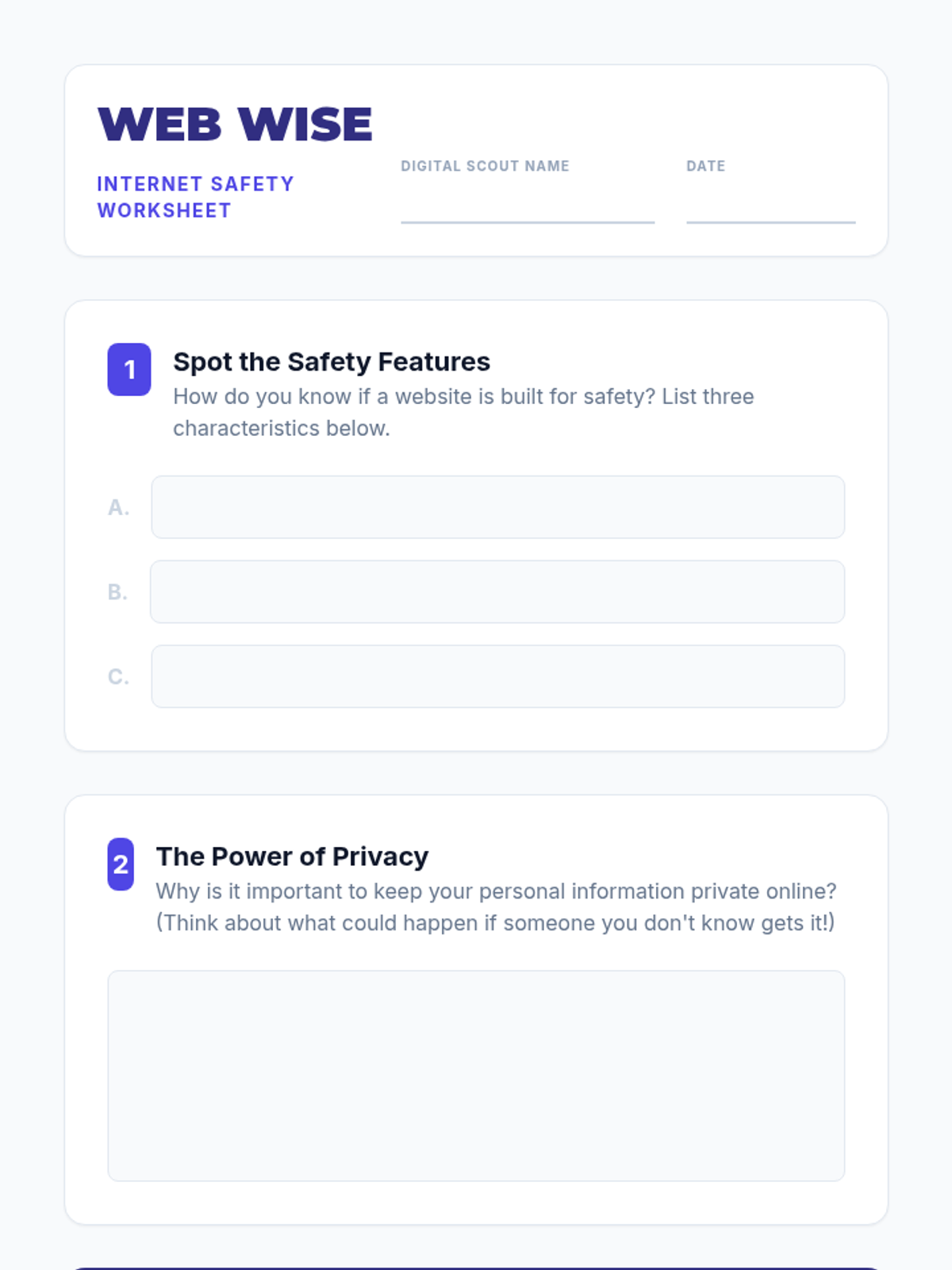 This lesson introduces students to the basics of internet safety, focusing on protecting personal information and identifying secure websites. Through guided discussion and interactive scenarios, students learn to navigate the digital world responsibly.