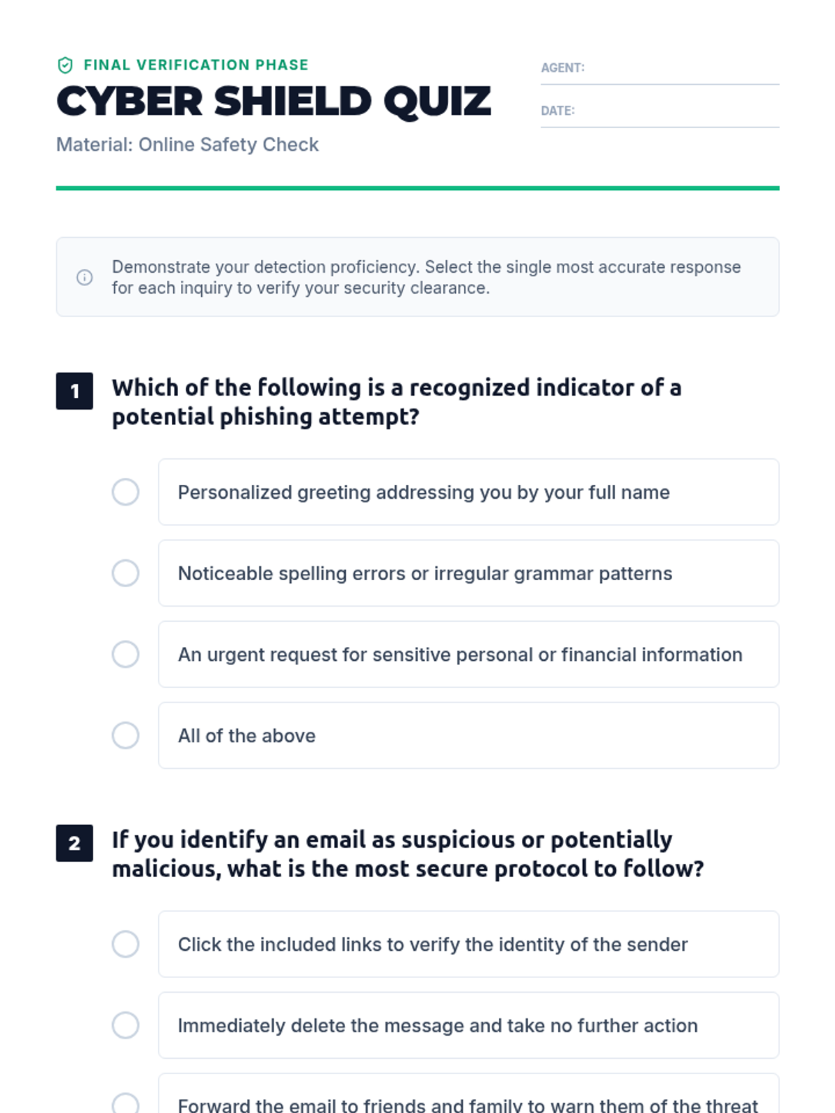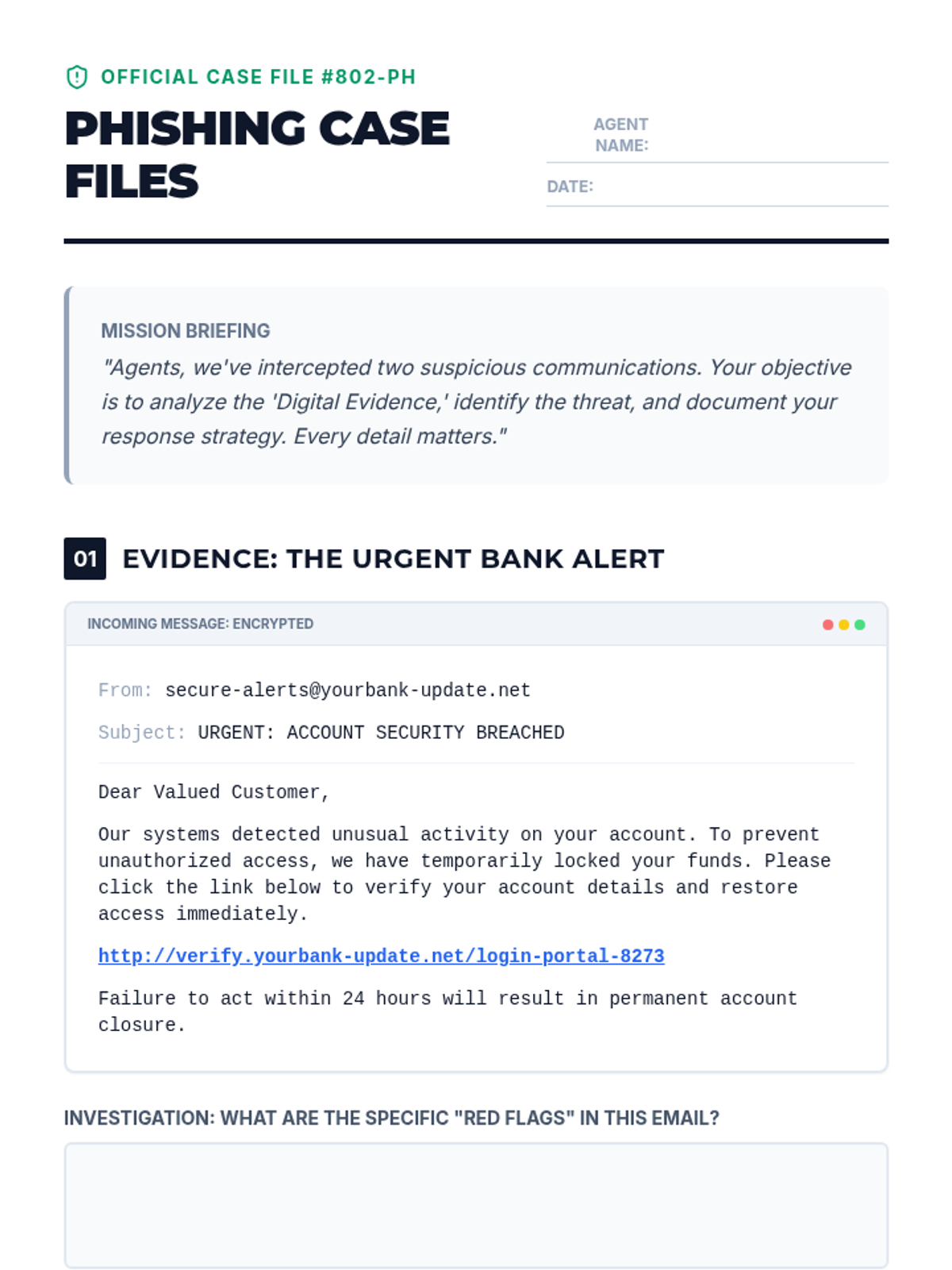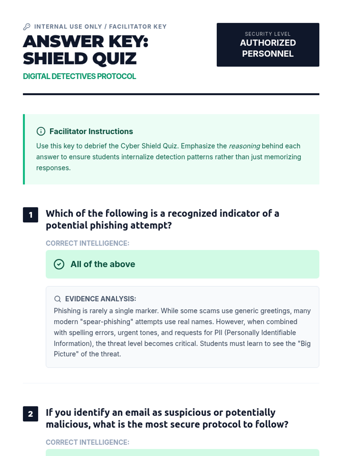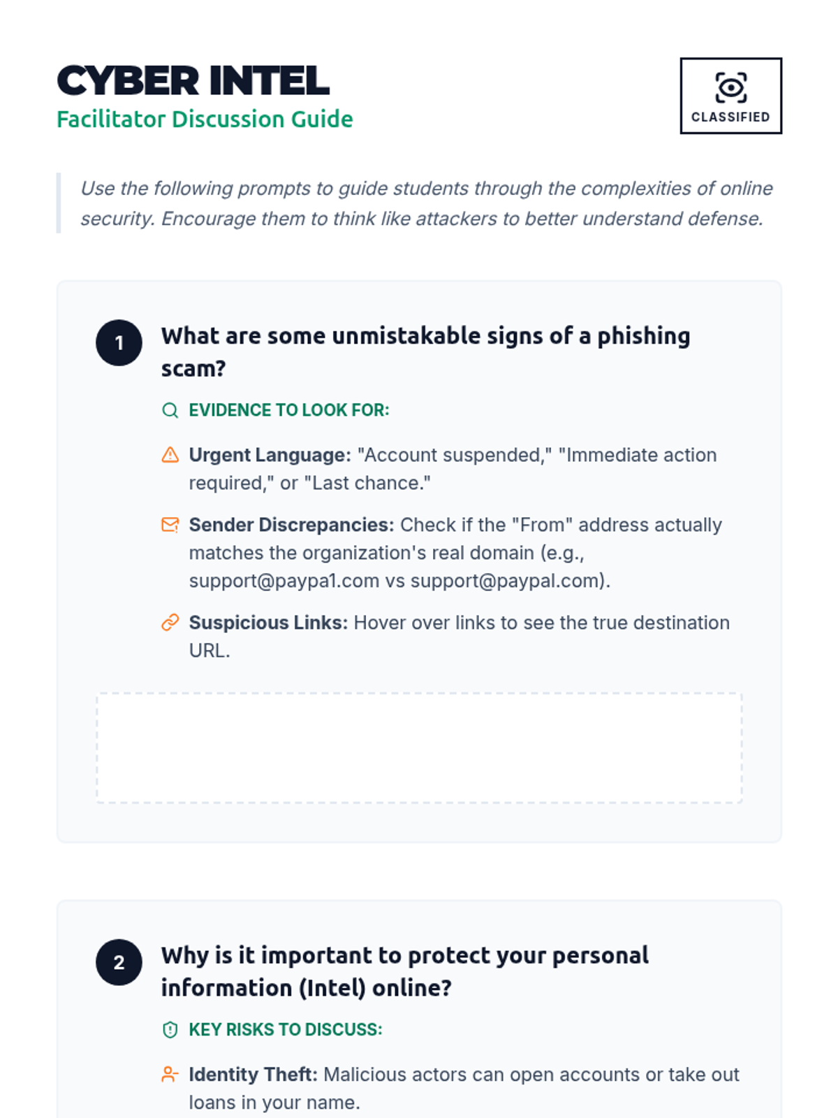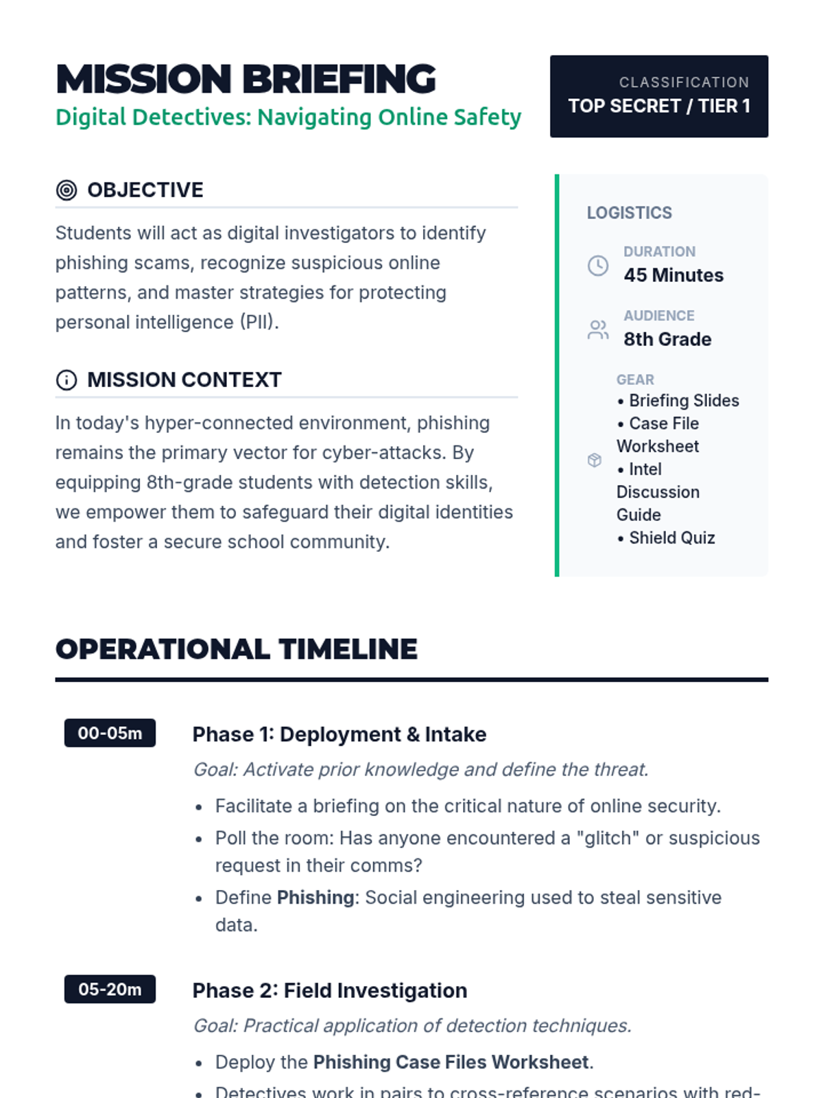 Students become digital detectives to identify phishing scams, protect personal information, and enhance cyber safety skills through interactive scenarios and discussions.