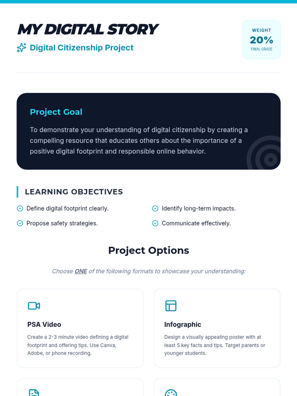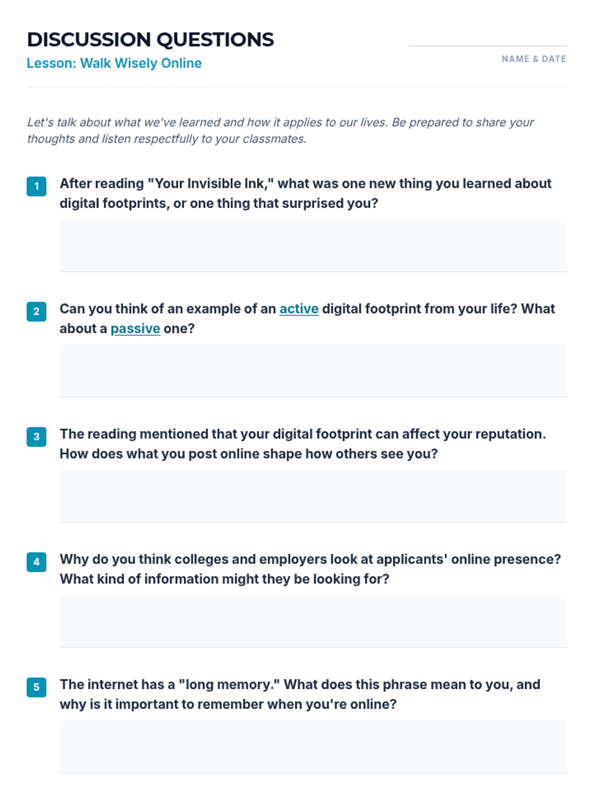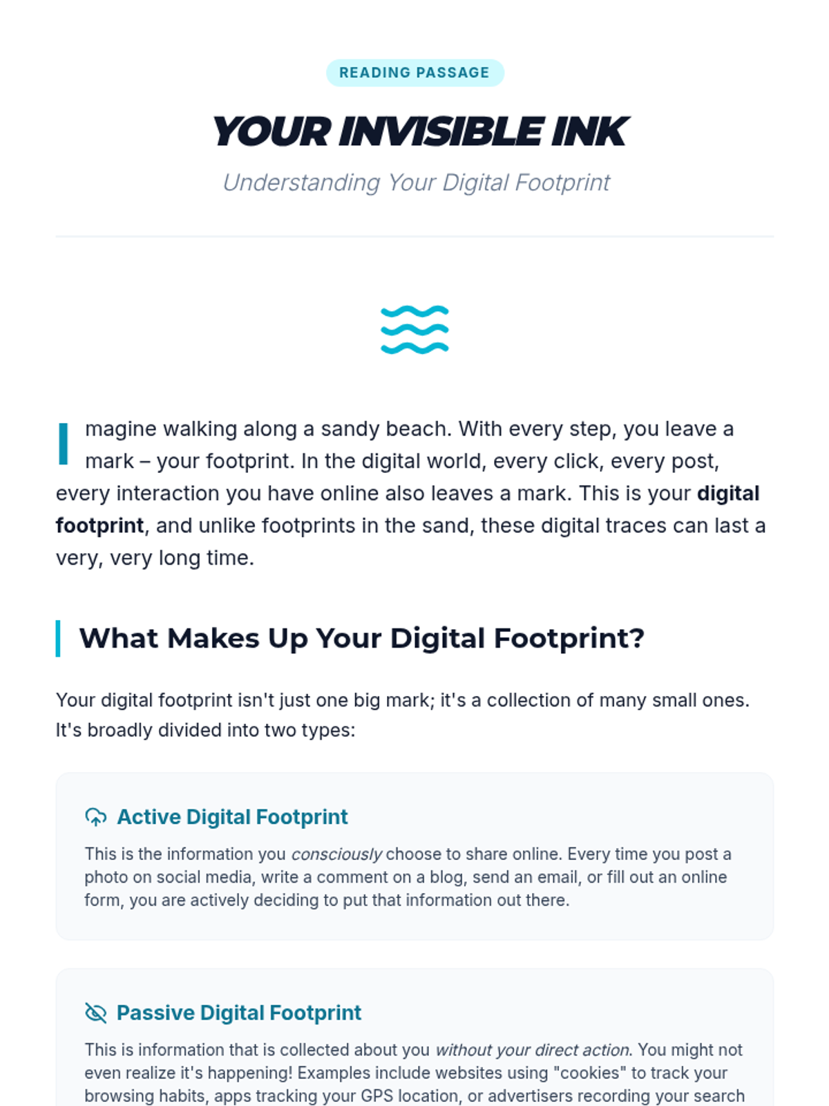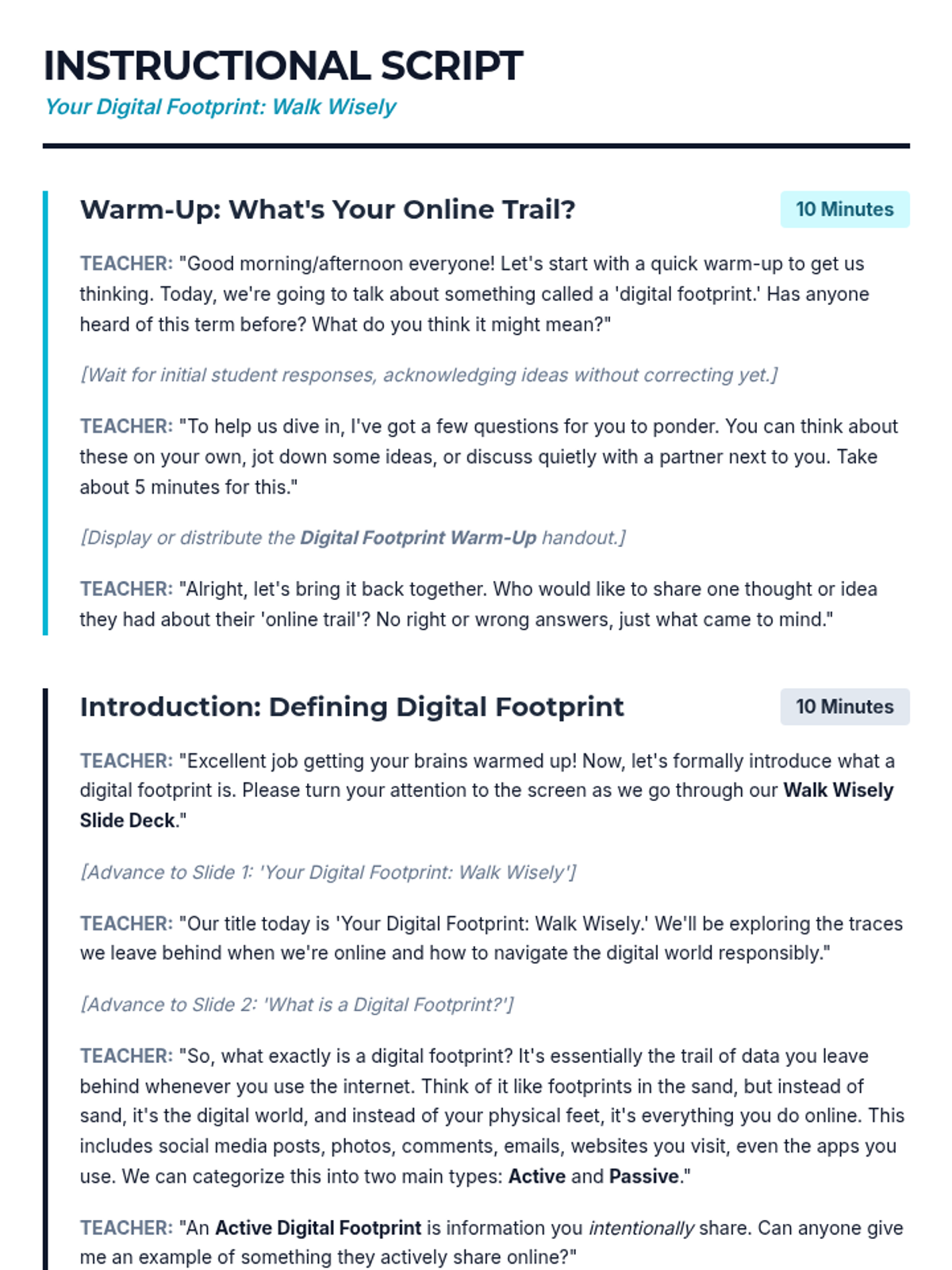 A comprehensive 60-minute lesson for high school students about digital footprints, active vs. passive data collection, and long-term consequences of online behavior.