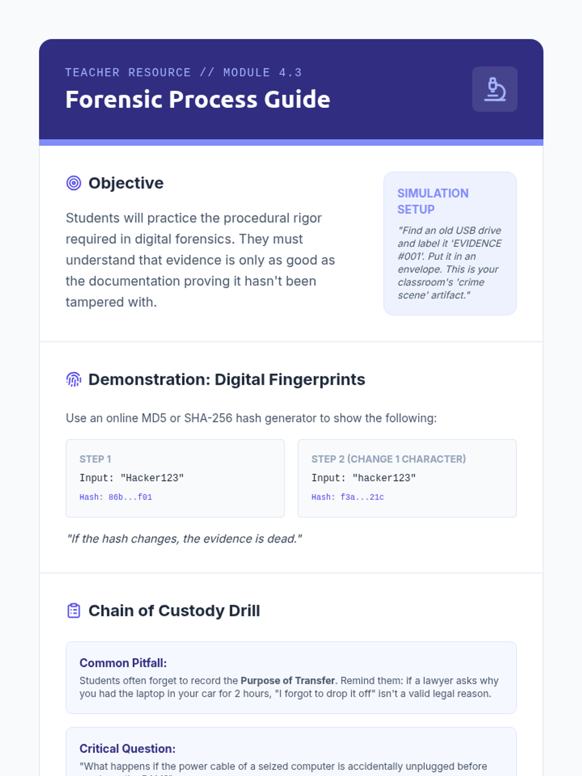 An introduction to digital forensics, focusing on the chain of custody, evidence preservation, and the ethics of digital investigation.