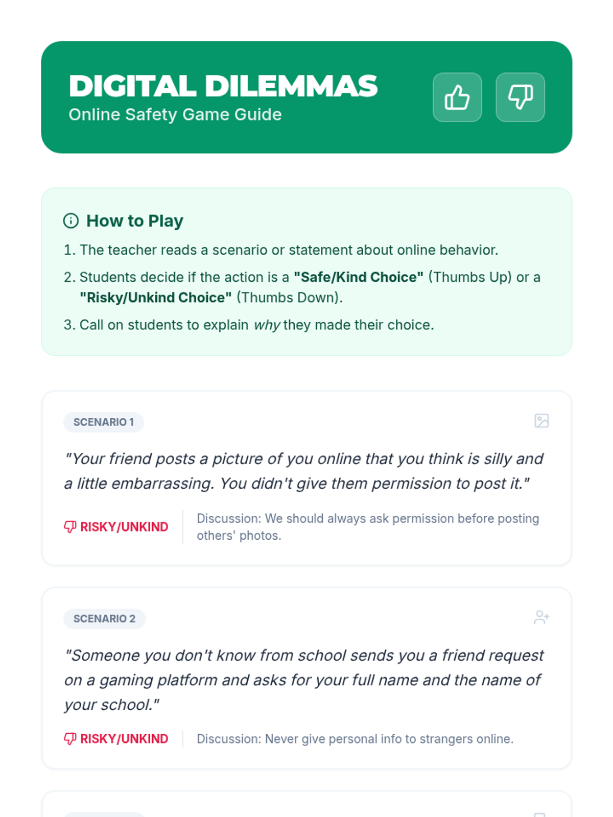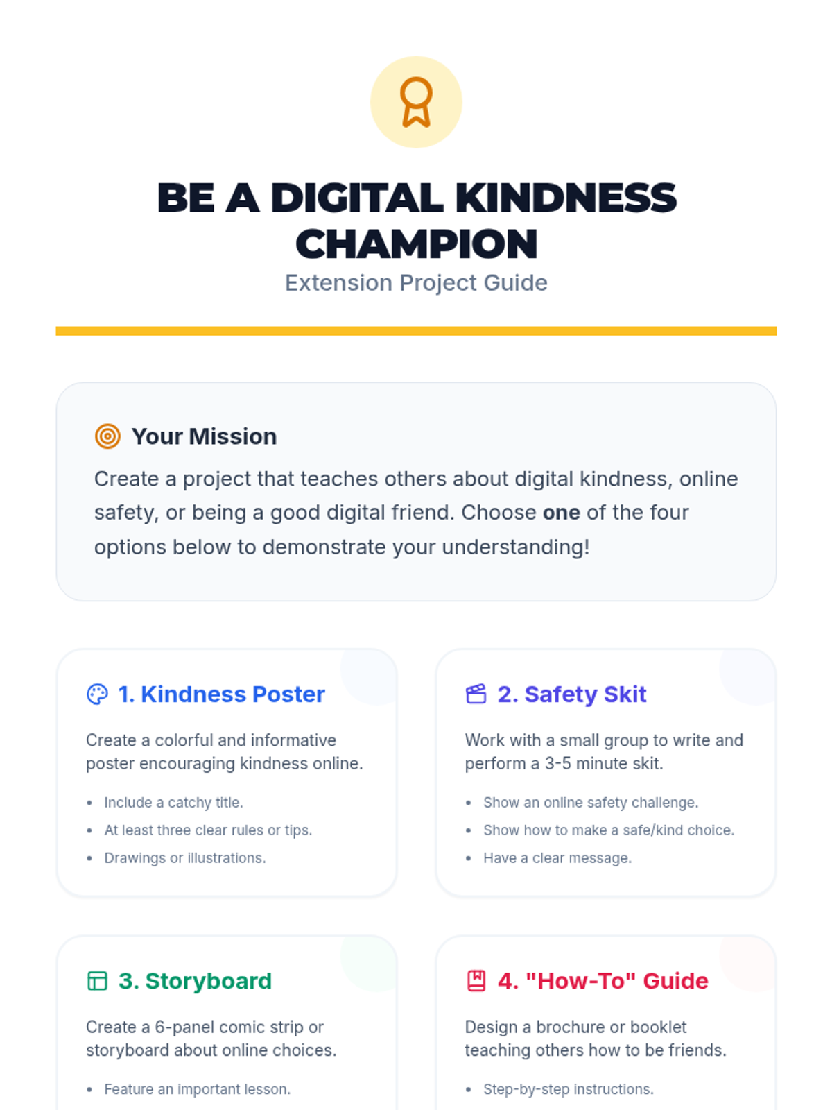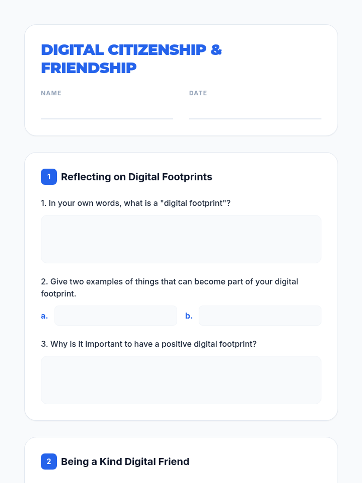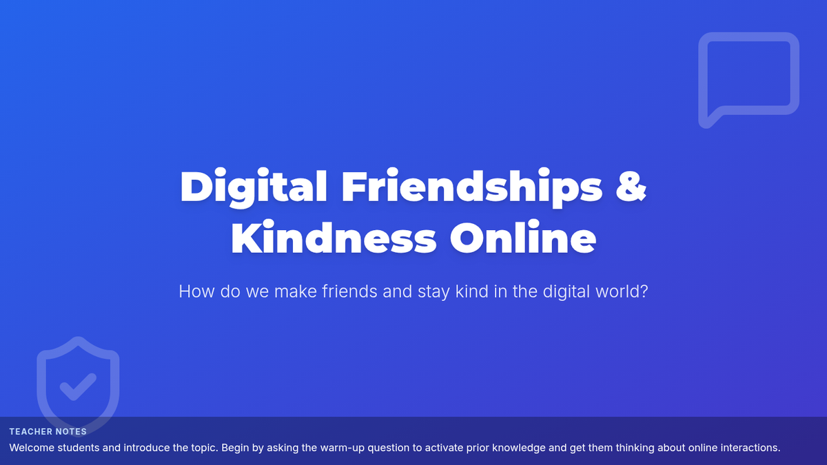 A 45-minute lesson for 3rd-6th graders on navigating digital friendships with kindness and responsibility, covering digital footprints and online safety.