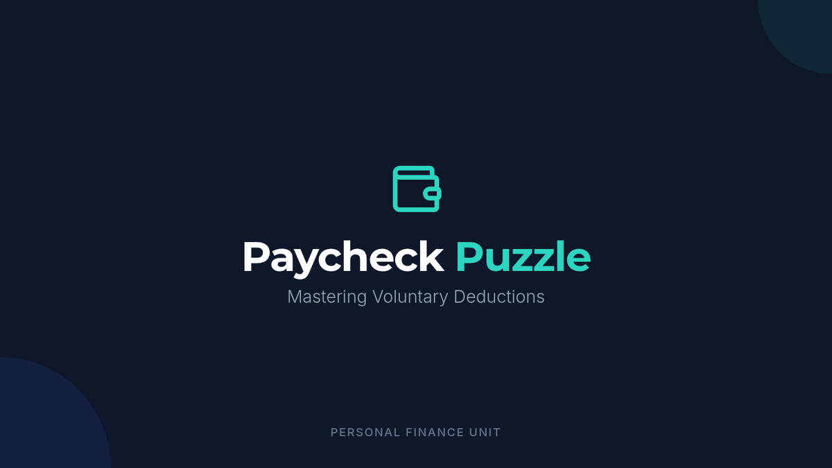 A comprehensive lesson on understanding, categorizing, and analyzing voluntary payroll deductions like 401(k)s and health insurance.