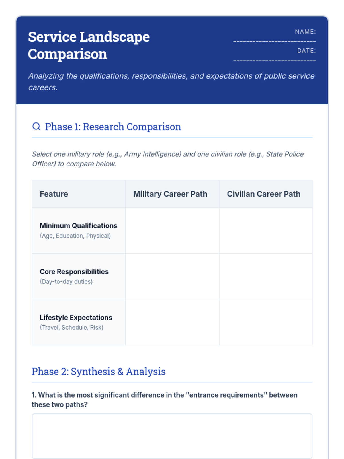 Explore the landscape of public service careers, analyzing qualifications and requirements for military and civilian roles while connecting with local agencies.