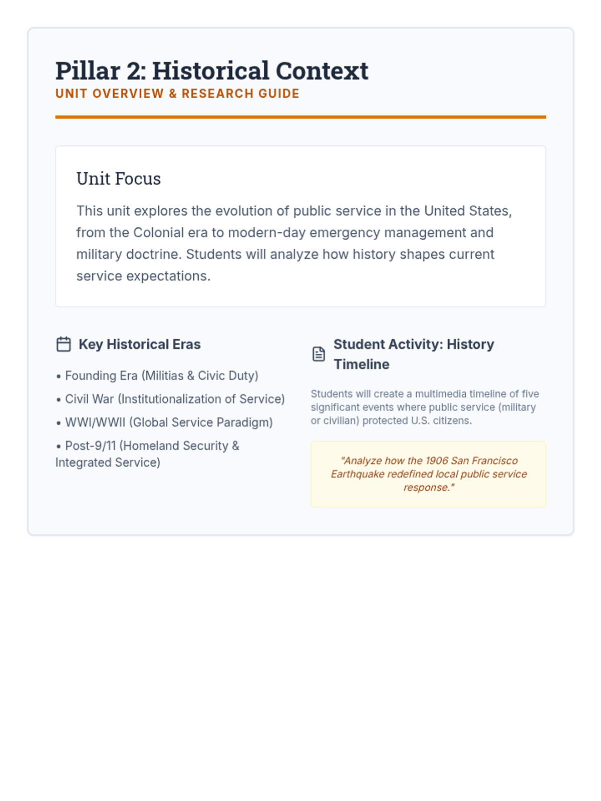 Analyze the historical evolution of public service in the U.S., researching significant events and their impact on national safety and service.