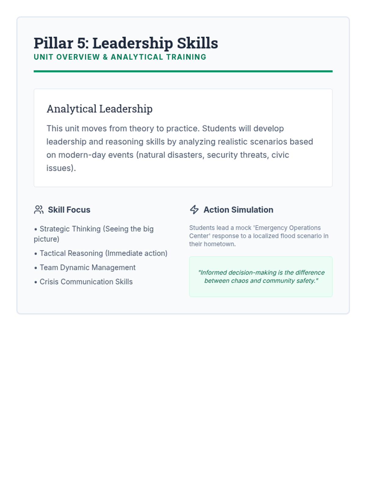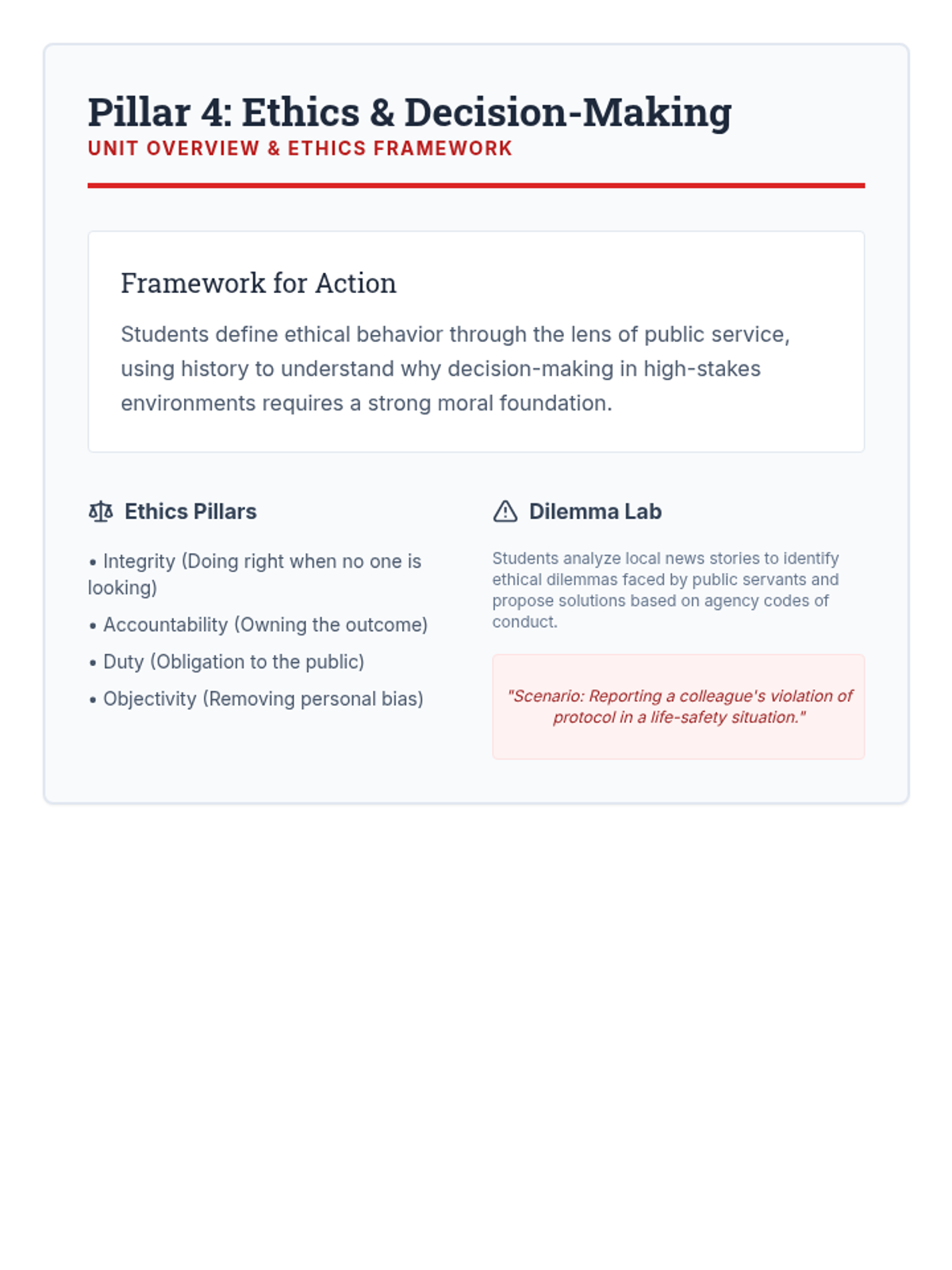 Develop leadership, critical thinking, and analytical reasoning skills through realistic public service simulations and current event analysis.