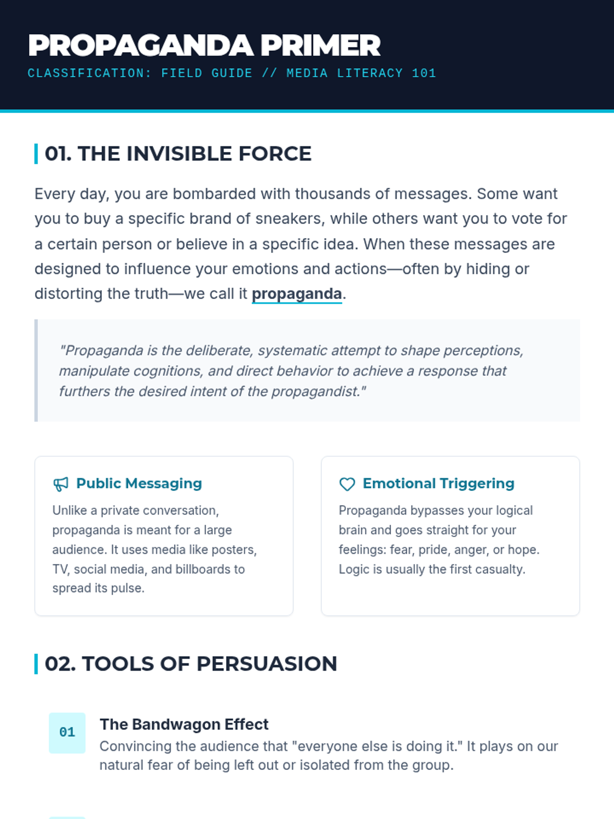 An introductory exploration into the world of propaganda, teaching students to identify bias and persuasive techniques in historical and modern media.