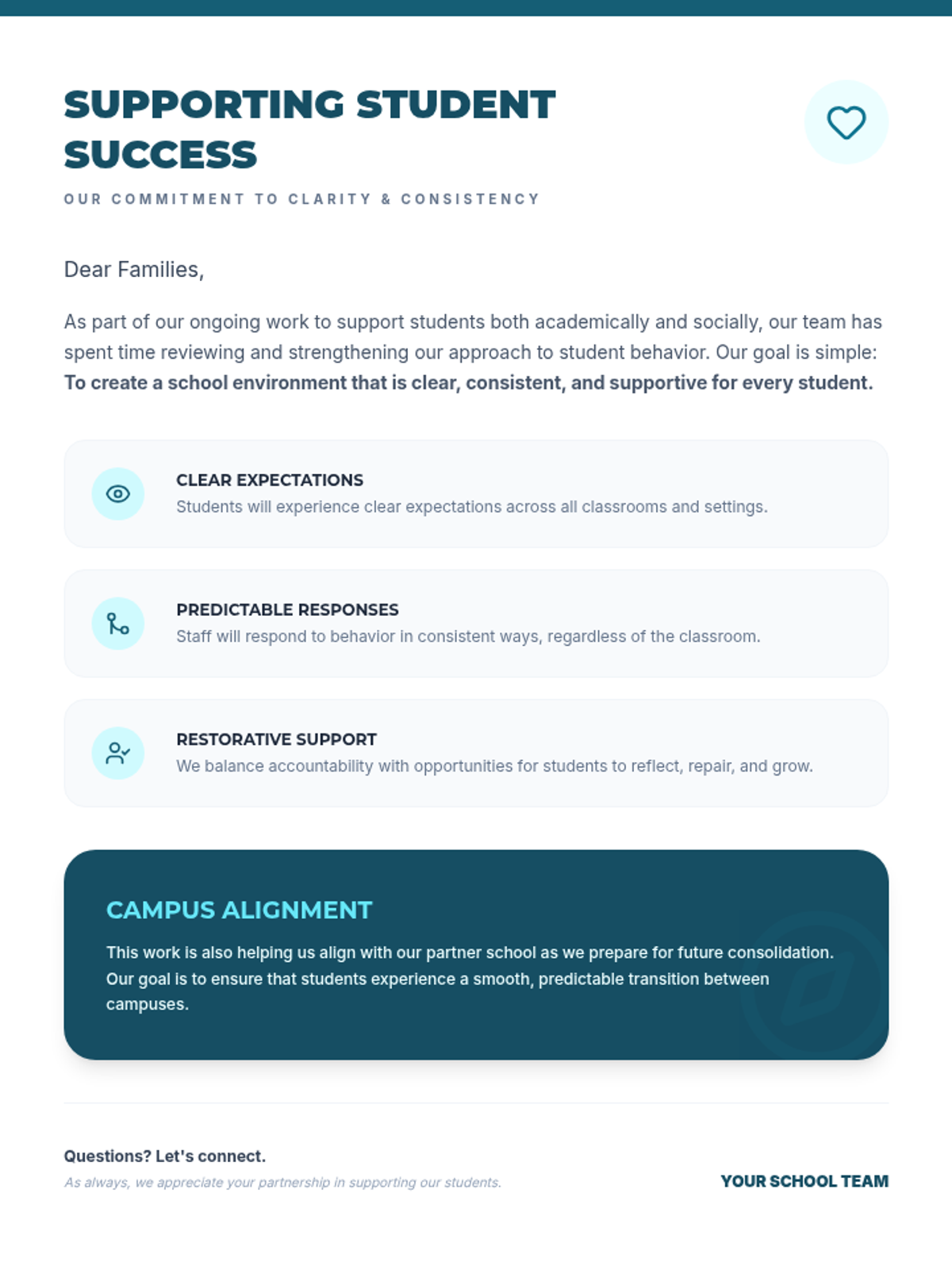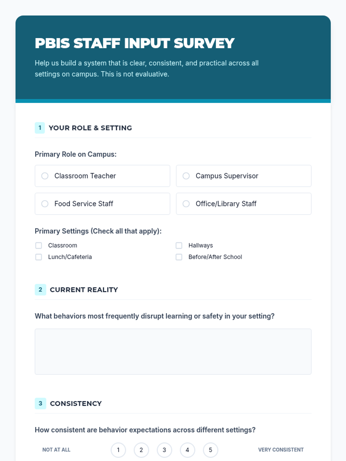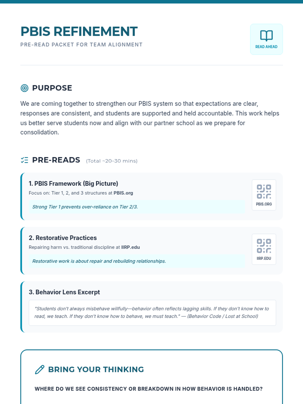 Practical tools and communication materials for rolling out the refined PBIS system to teachers, students, and families.