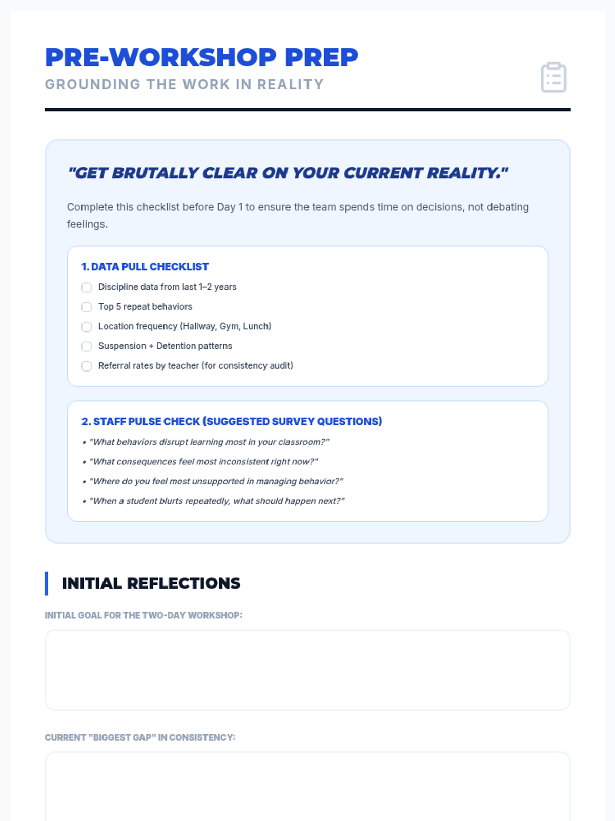 A high-impact two-day intensive for leadership teams to audit current data, define non-negotiables, and build a unified tiered intervention system.