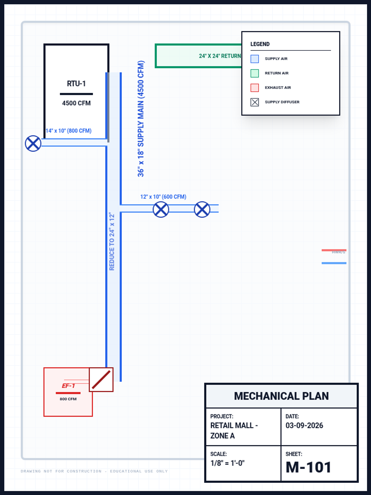 A deep dive into commercial HVAC plans, covering ACCA symbols, equipment schedules, and complex ductwork layouts for various building types.