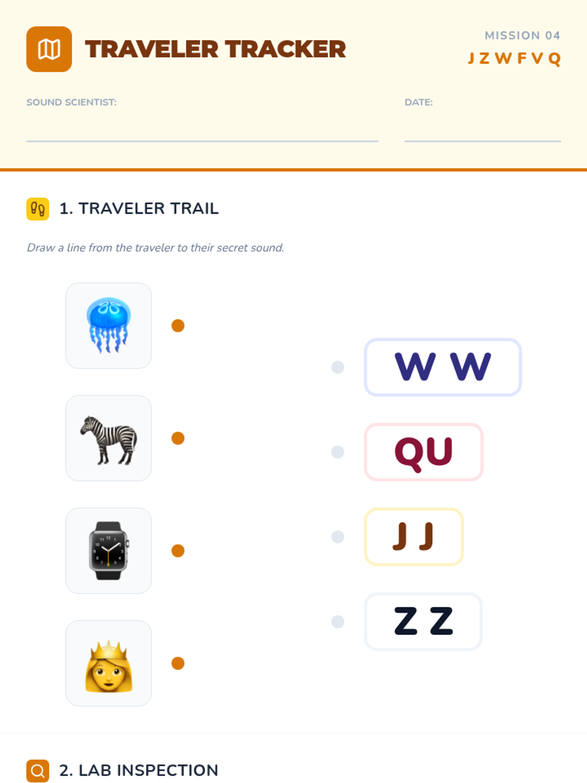 Targets less common and often confused sounds J, Z, W, F, V, and Q to build phonetic fluency.