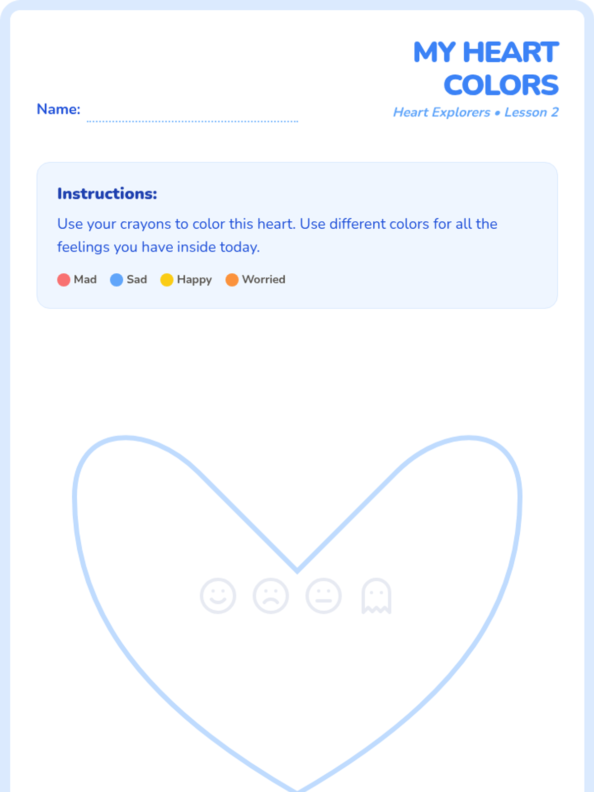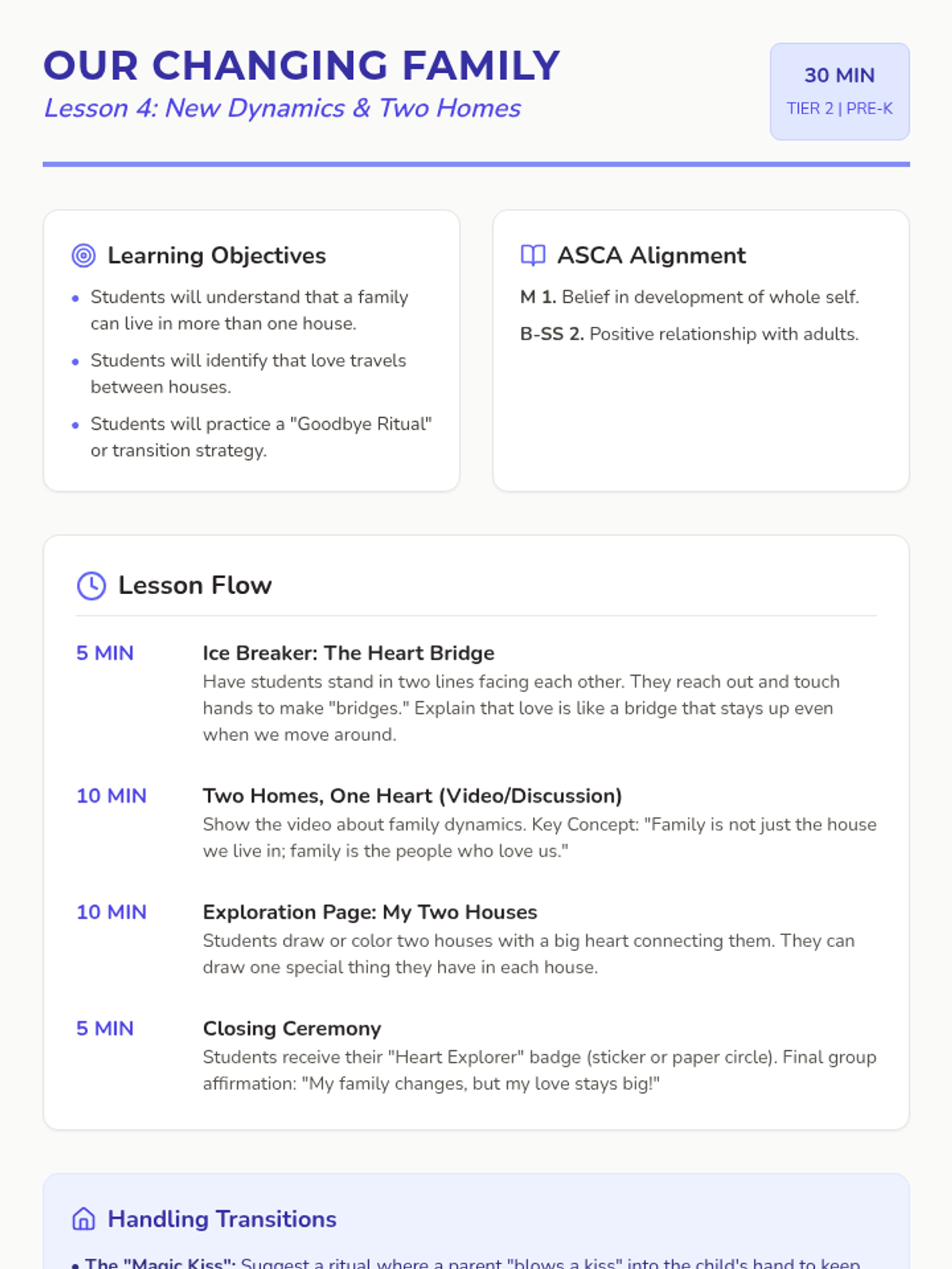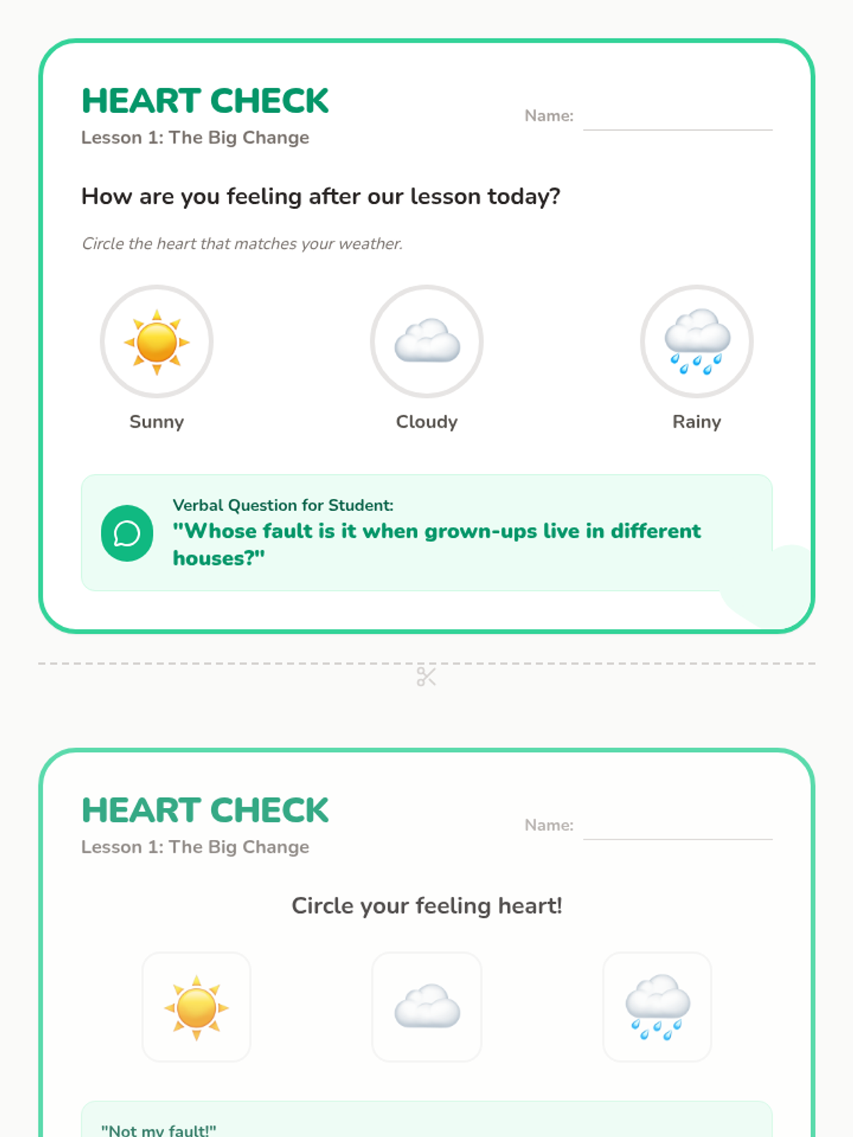 Helps children identify and name the wide range of emotions they may feel during family changes using age-appropriate vocabulary and visuals.